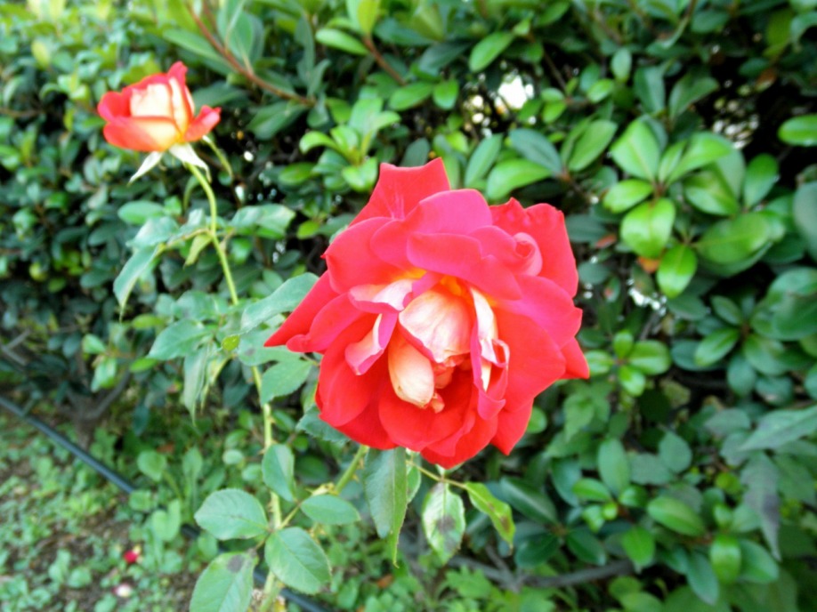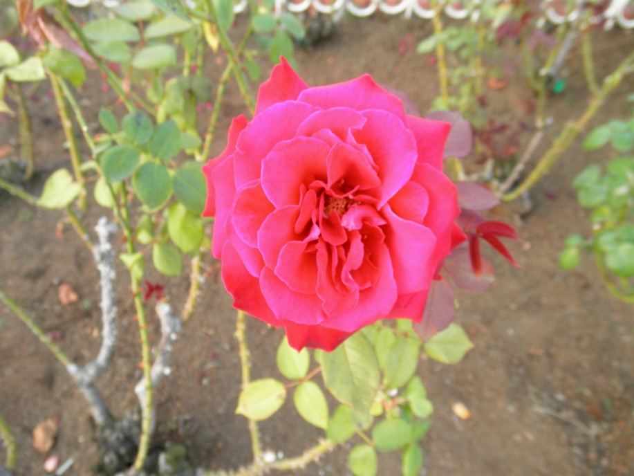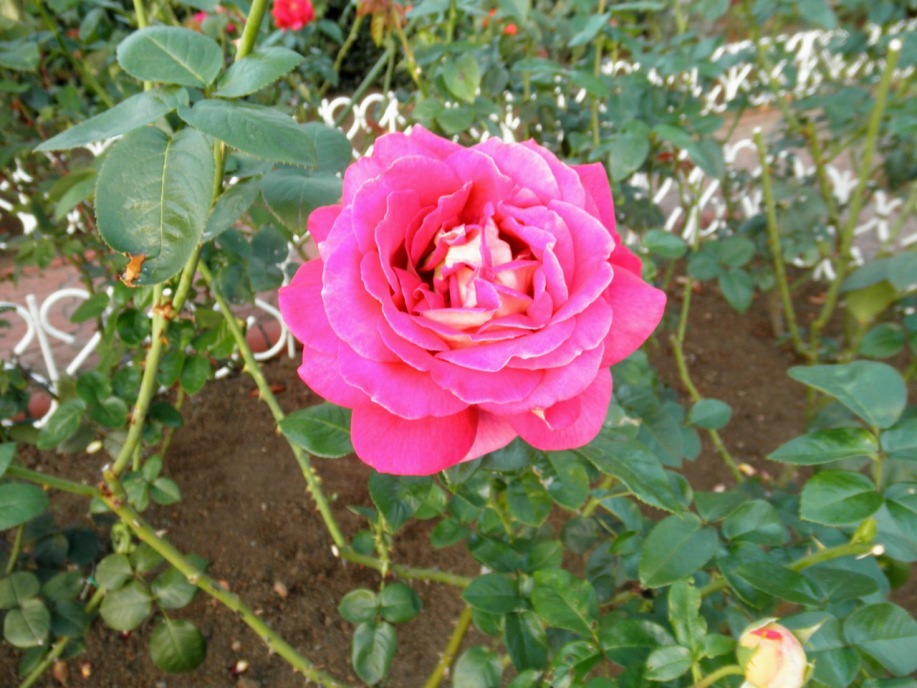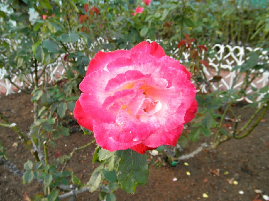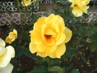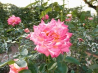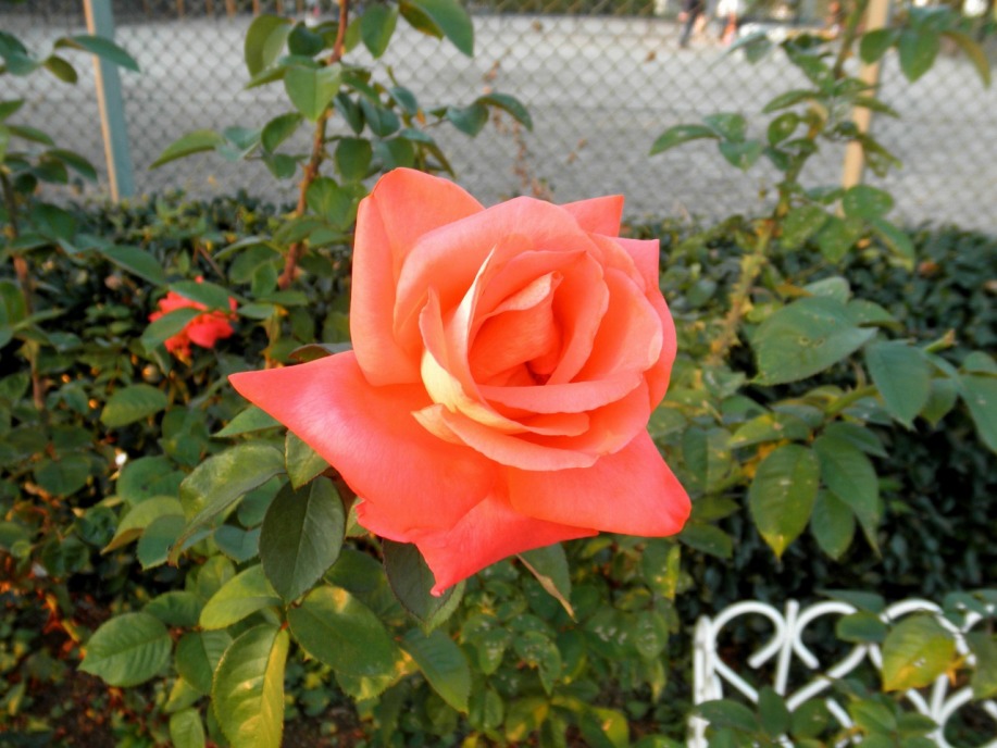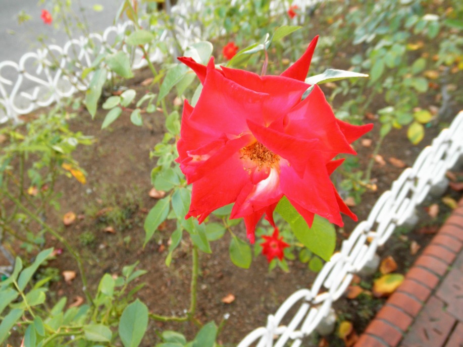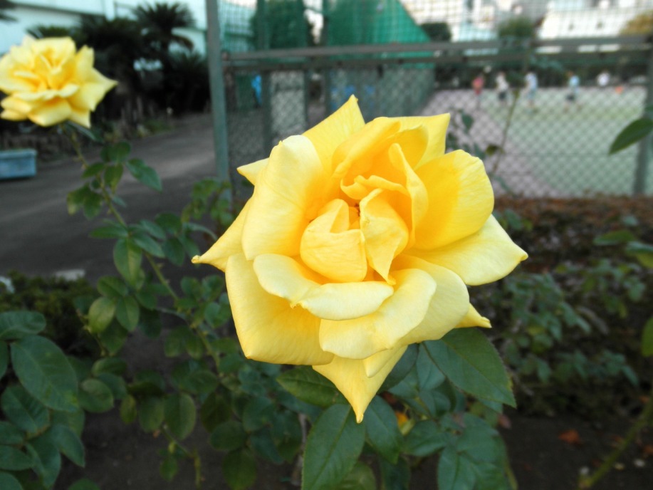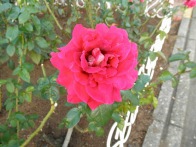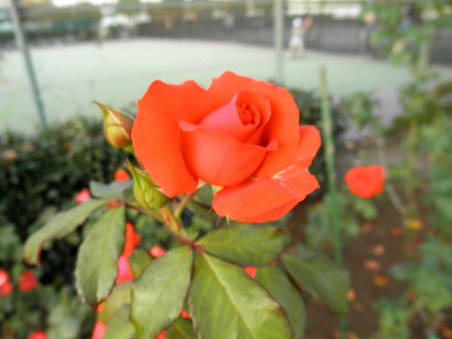 「感想」壁打ちテニスをした帰りに、バラの花を見ました。テニスコートの近くのバラは終わりに近づいているのか、 花は少なかったが、もう一つのところはたくさん咲いていました。20日頃が見ごろと書いていました。