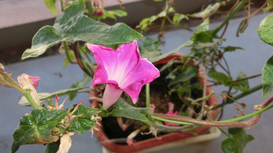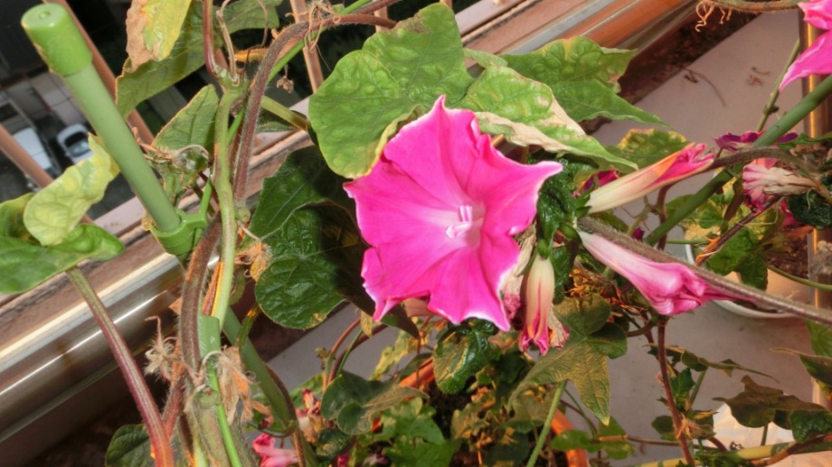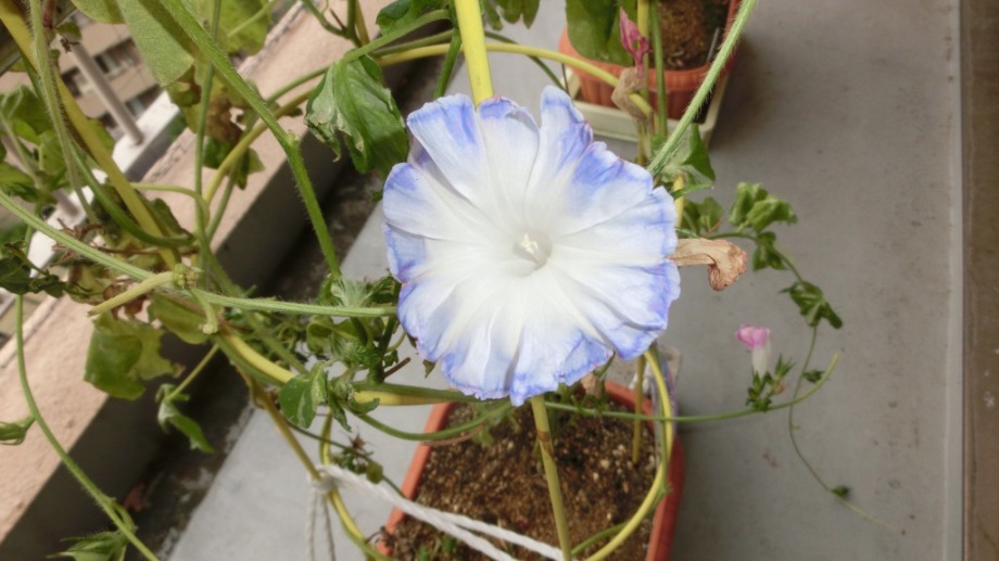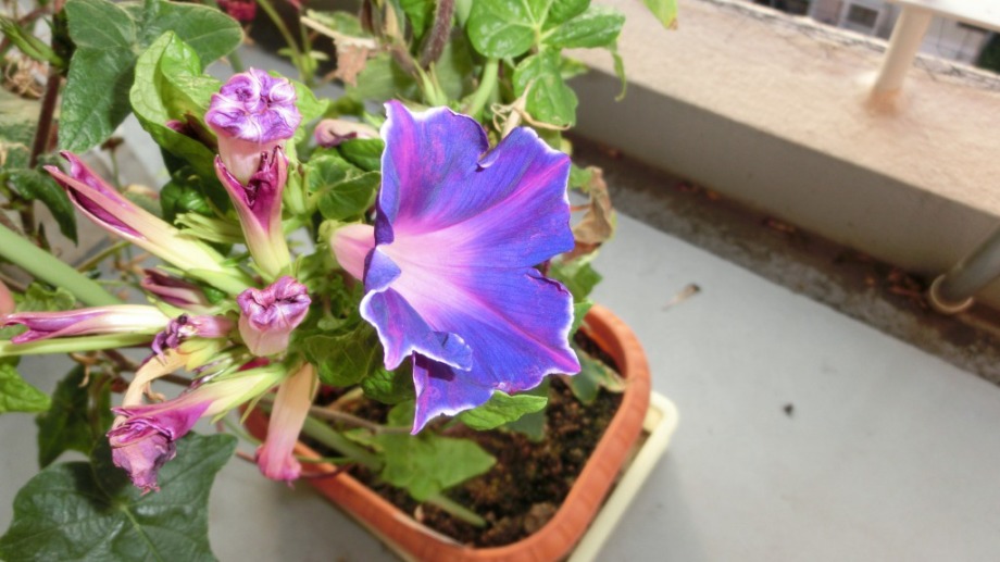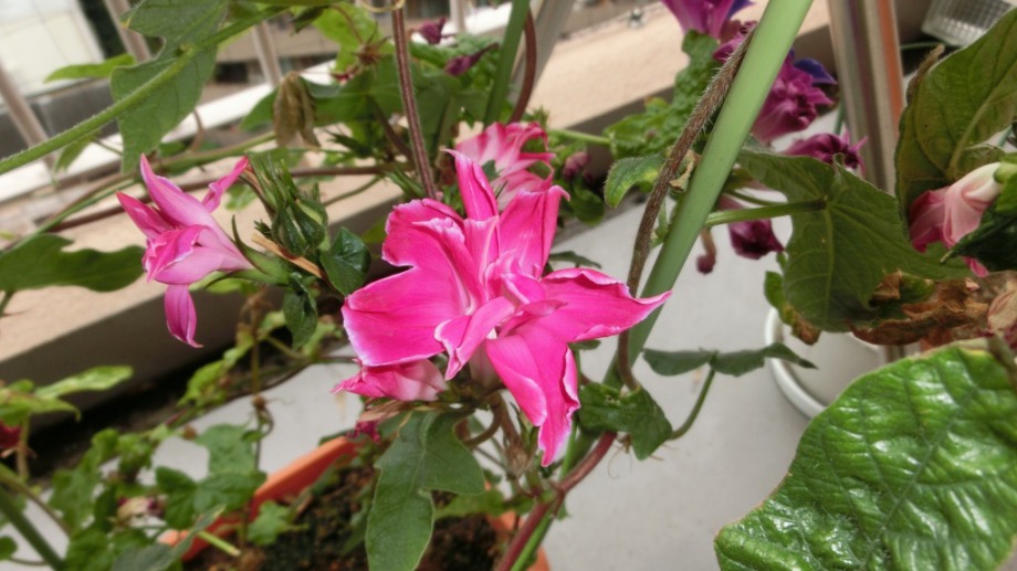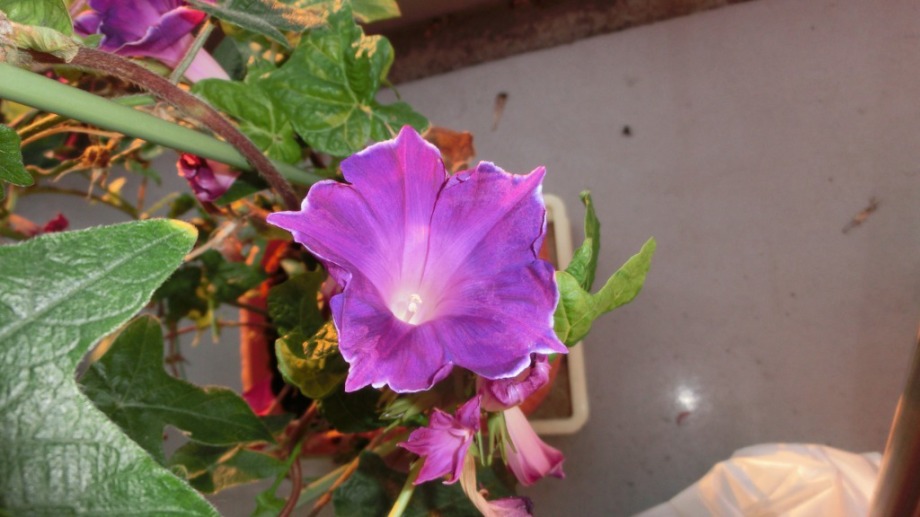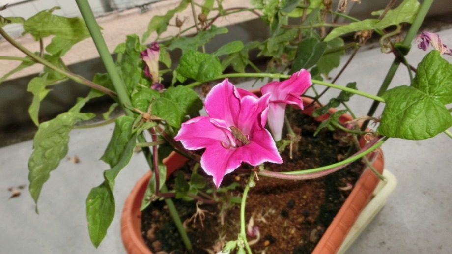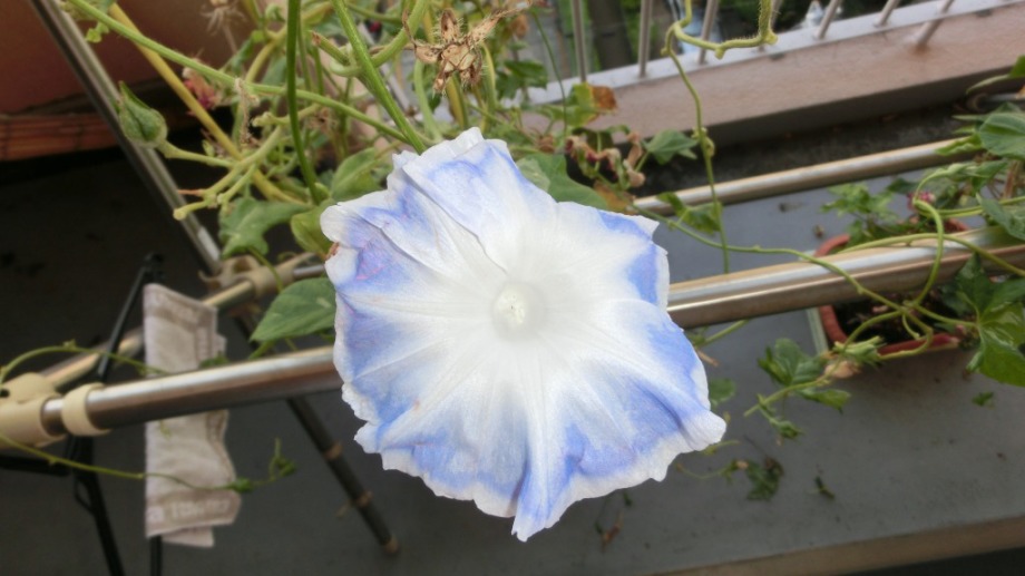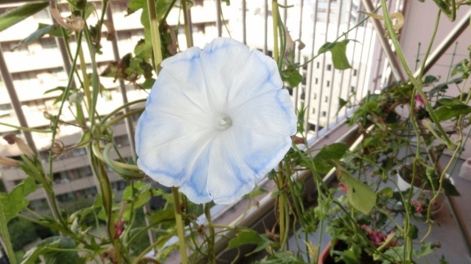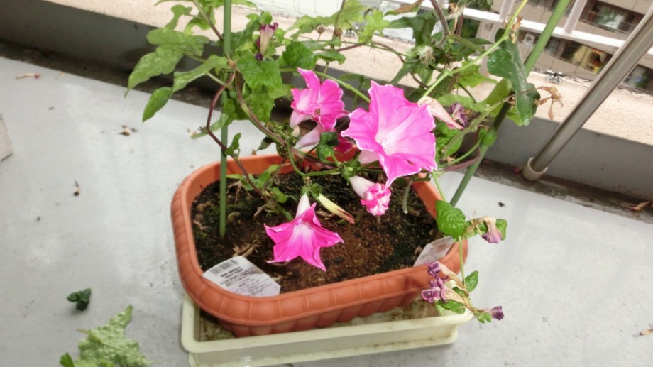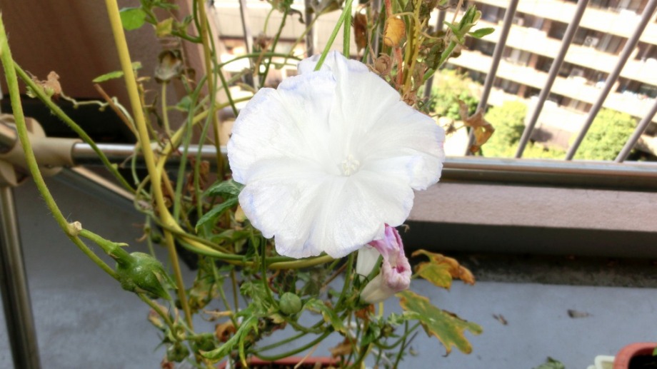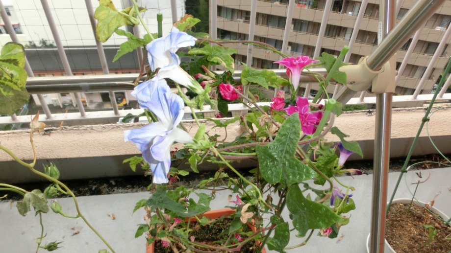 しかし、25日になっても花を咲かせている。初めて、朝顔をベランダに植えて、毎日咲いている花が見られて楽しかった。