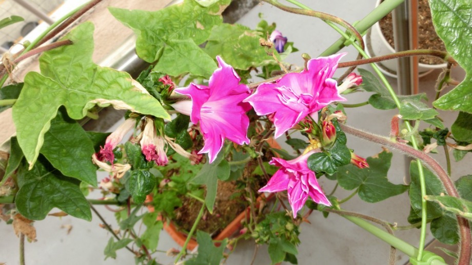 「感想」今年6月から咲き出した朝顔の花も10月下旬には花が少なくなり、大きな花の種類では咲いても形が崩れているものが多くなった。