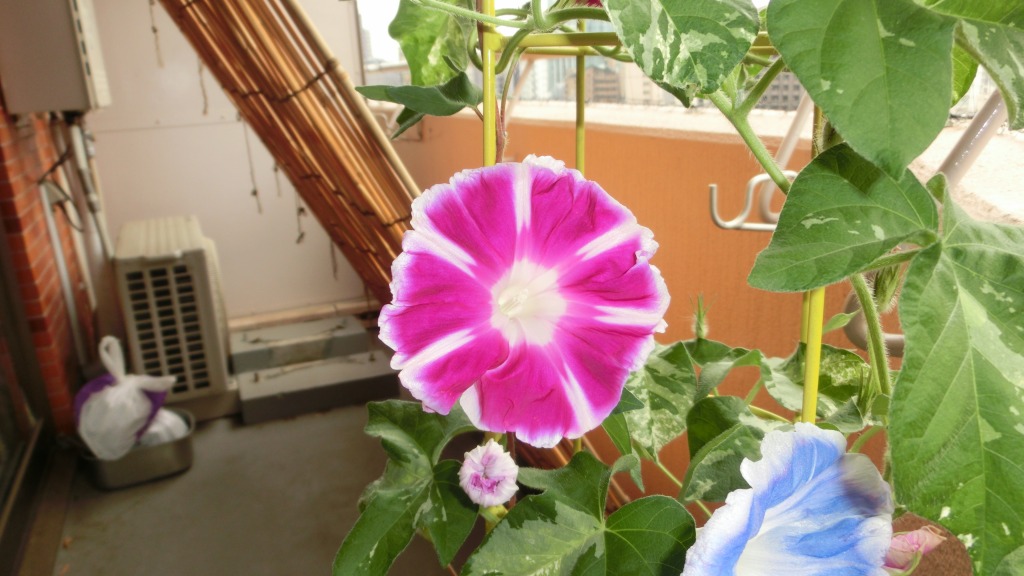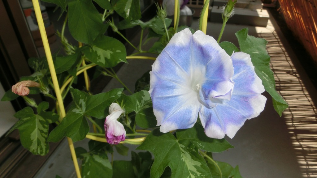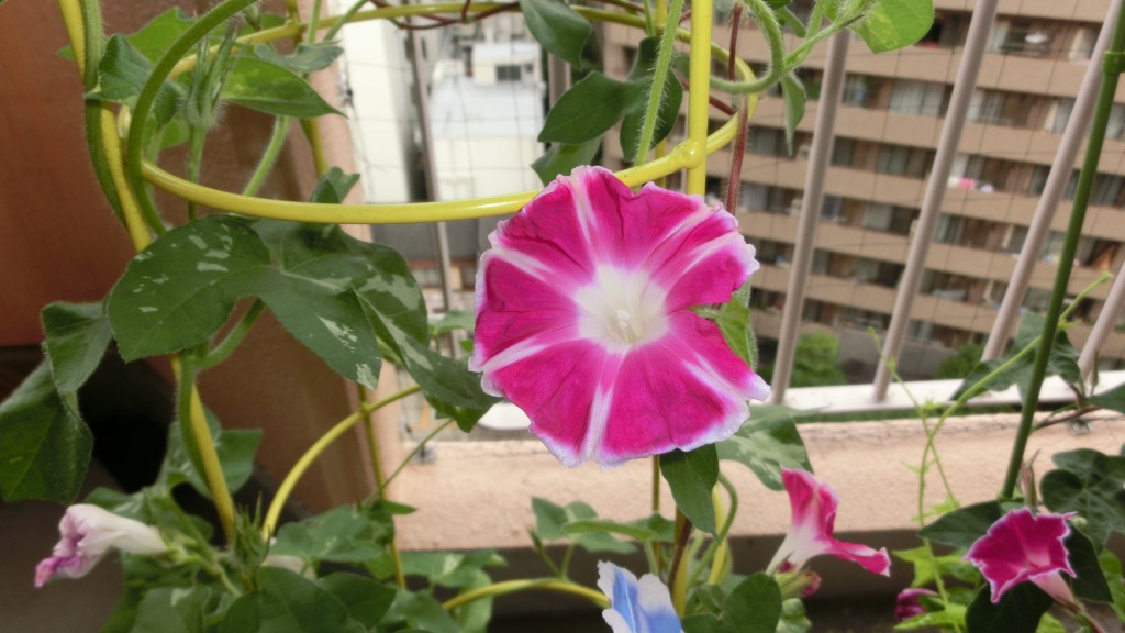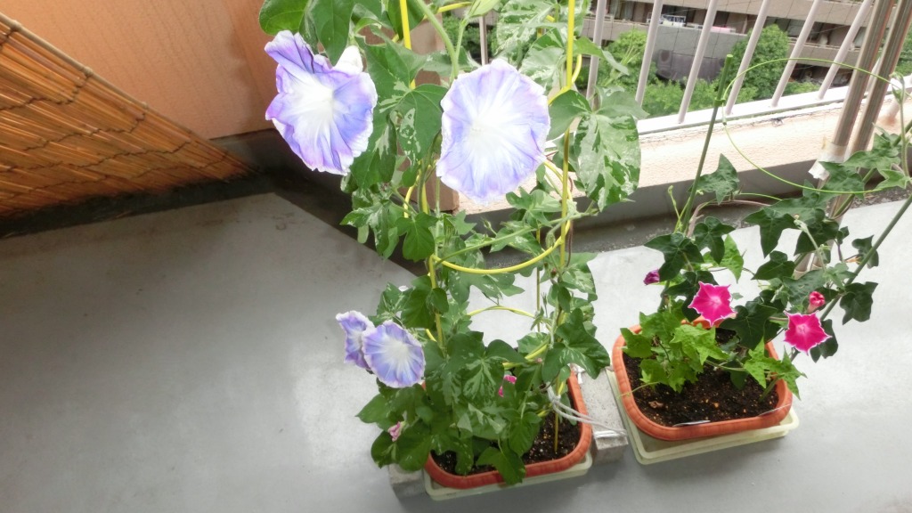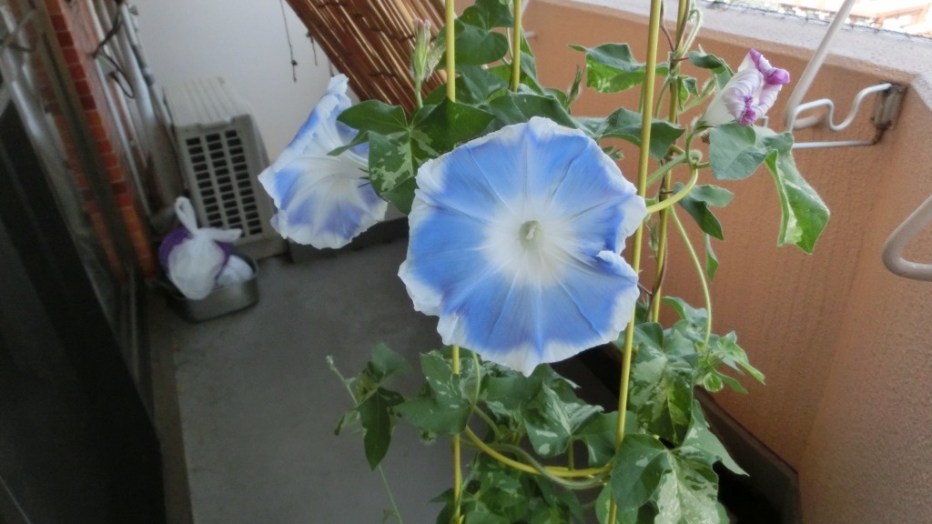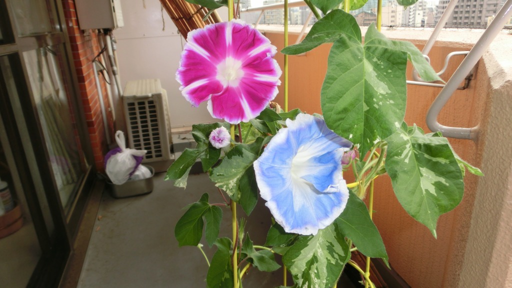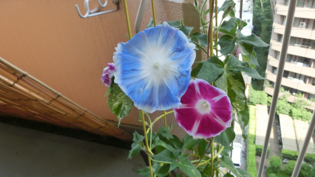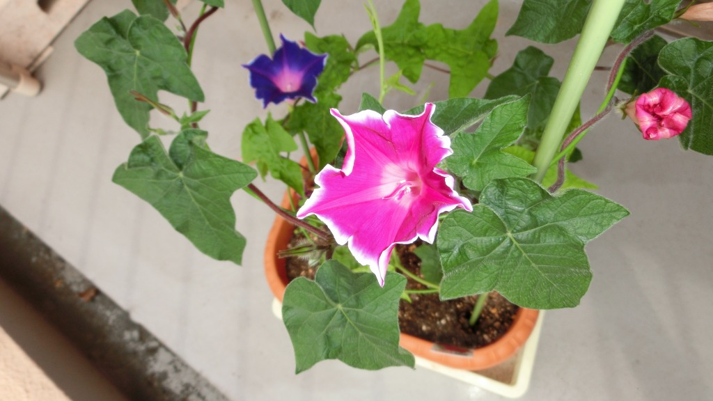 「一言」私がベランダで育てている4種類の朝顔です。毎日、咲いた花の写真を撮っています。