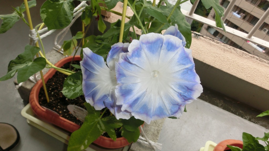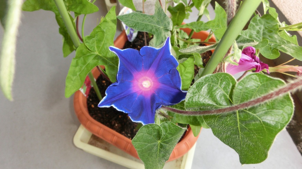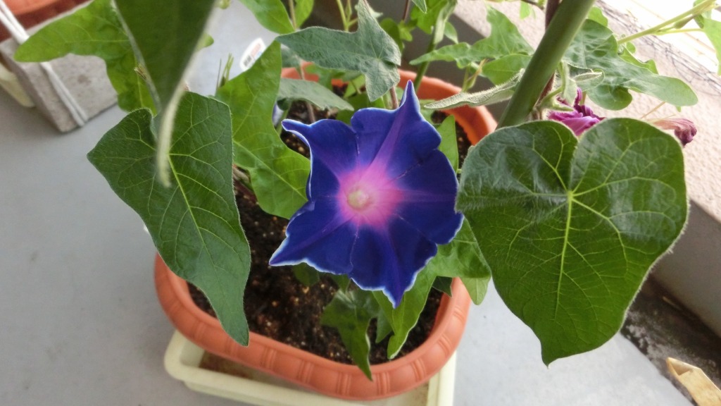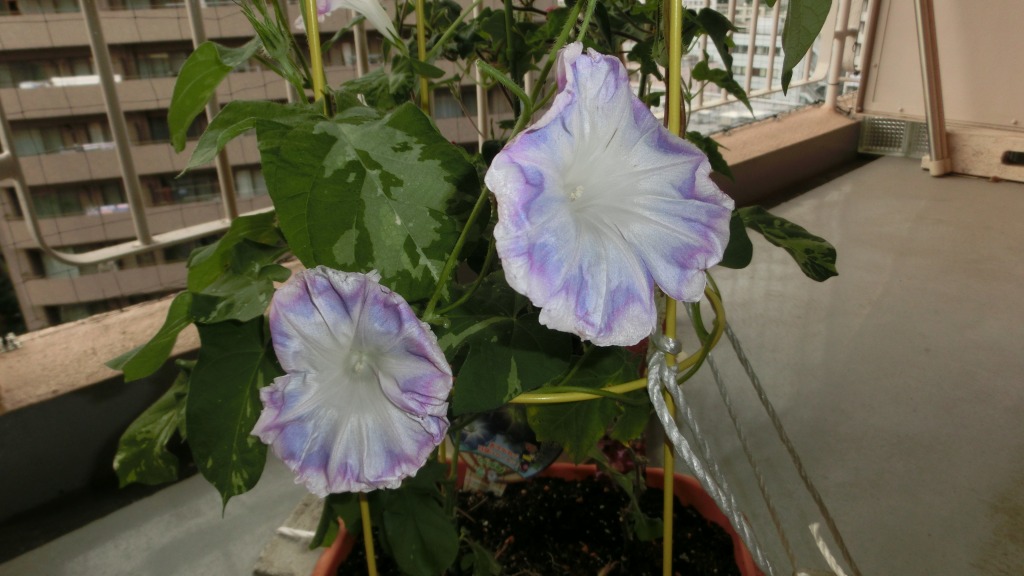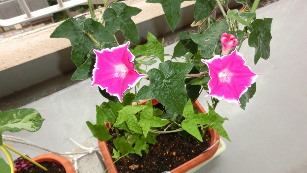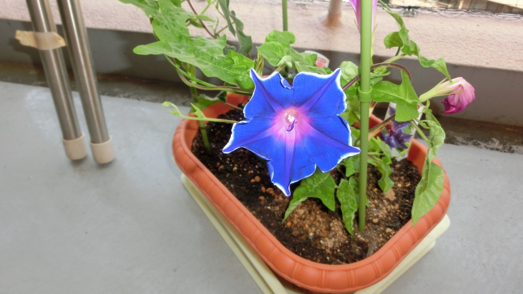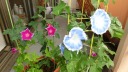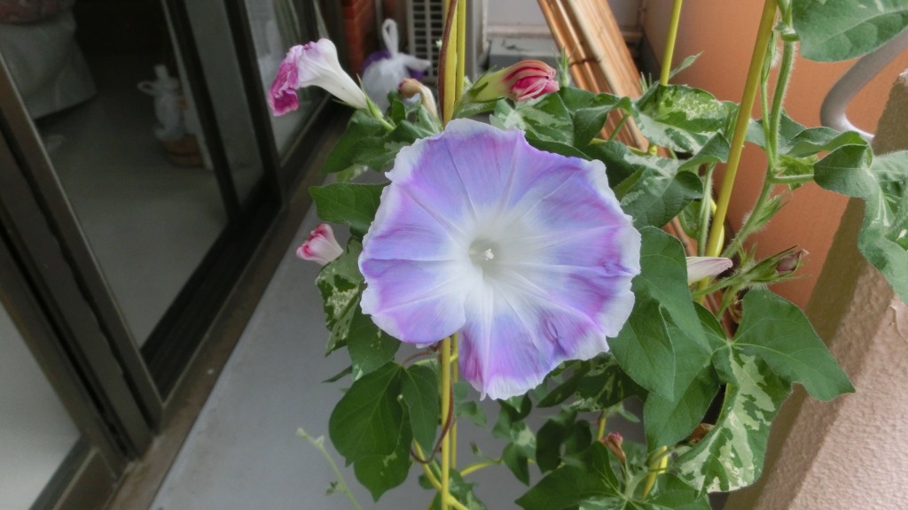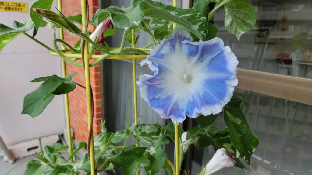 「一言」私がベランダで育てている4種類の朝顔です。毎日、咲いた花の写真を撮っています。
