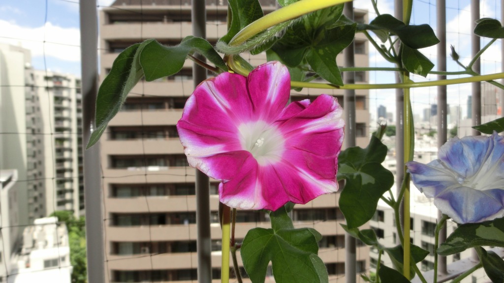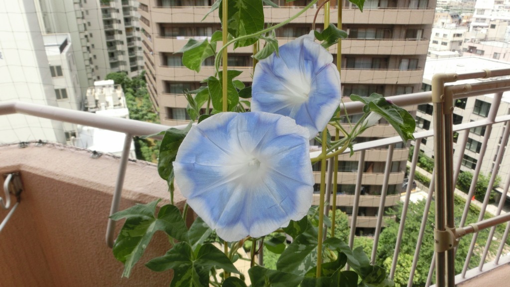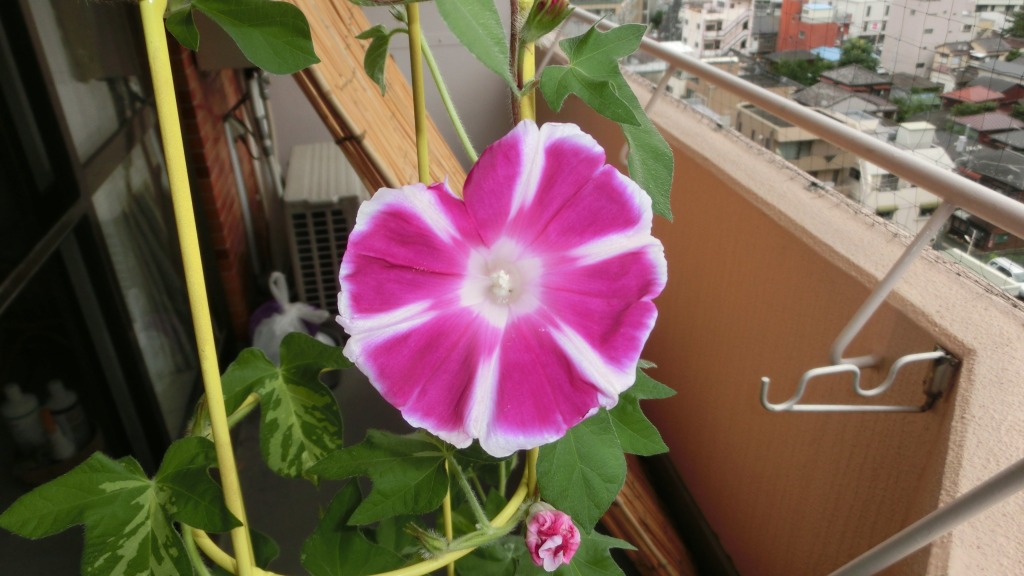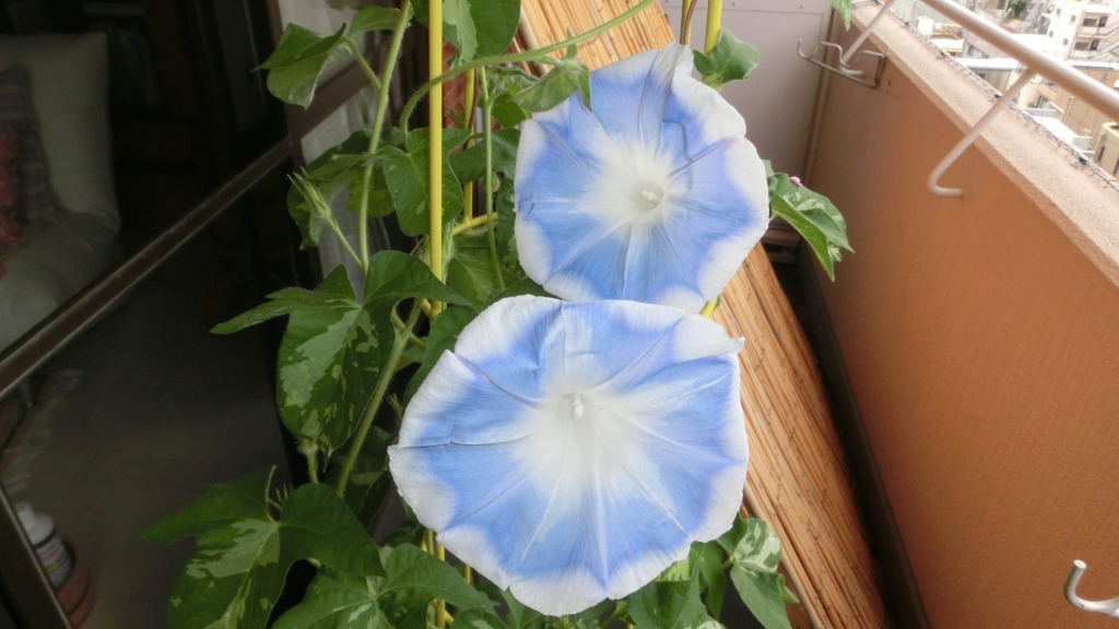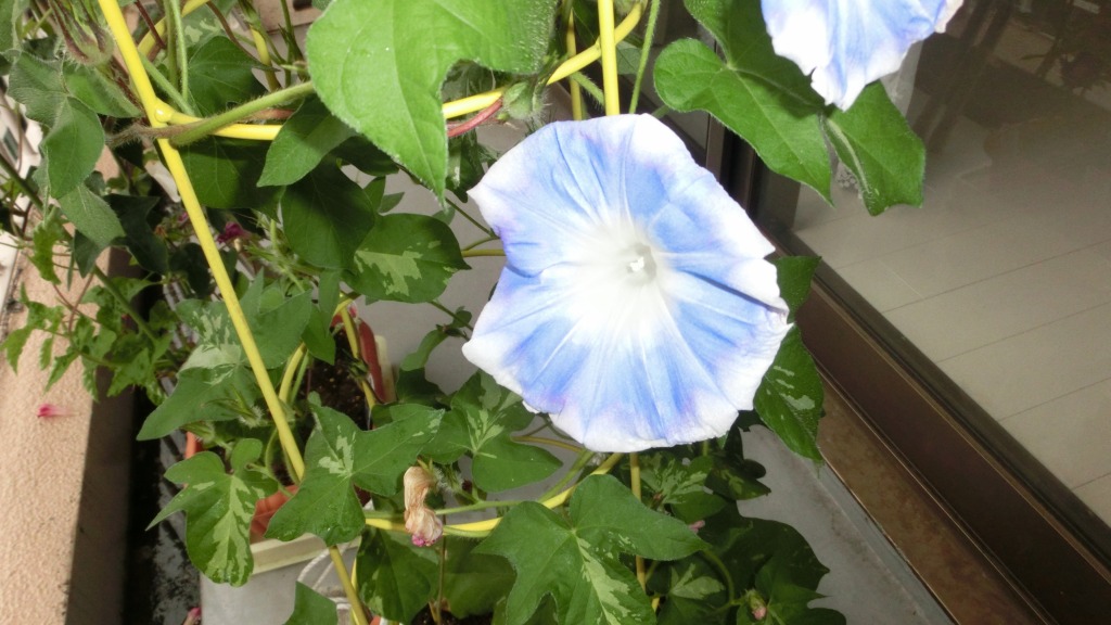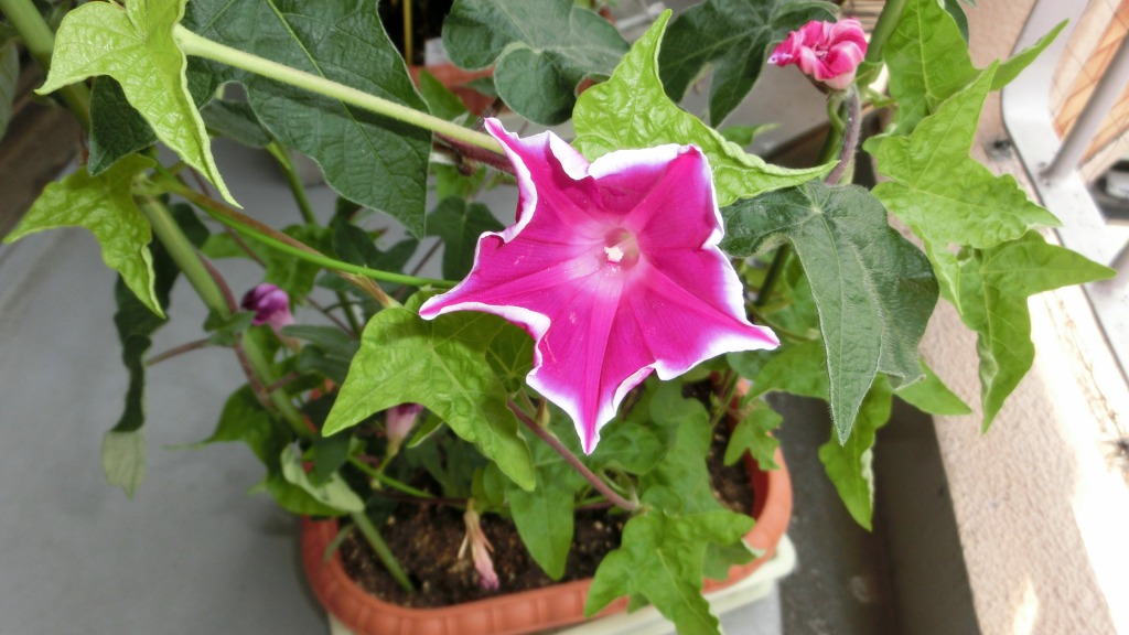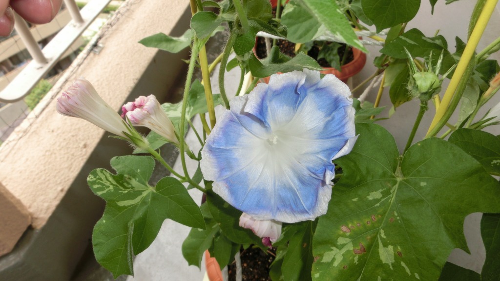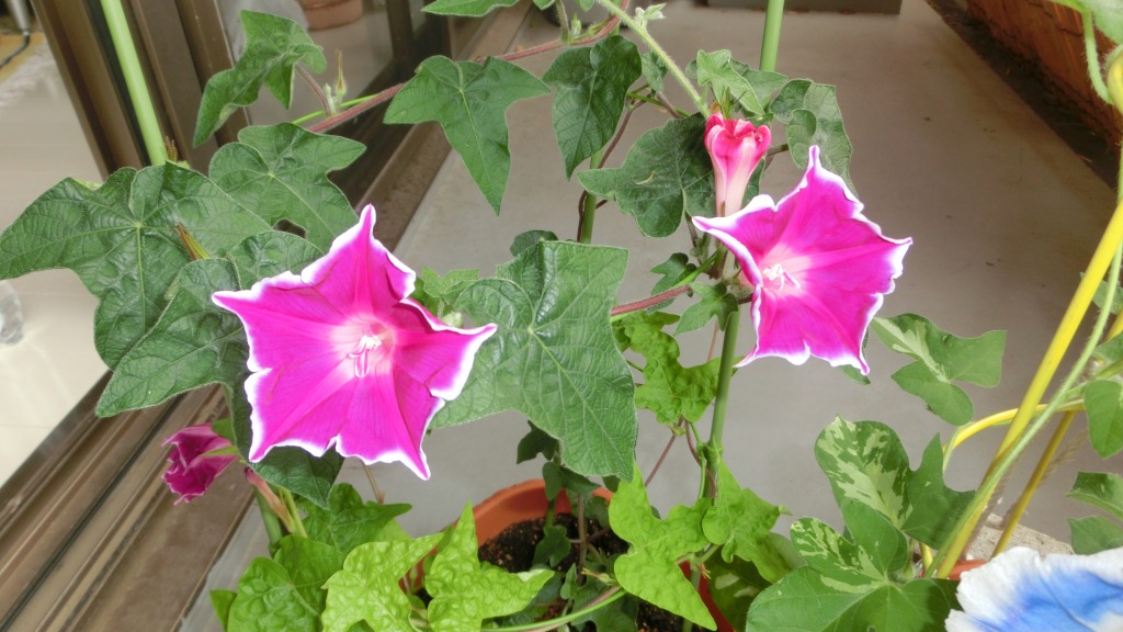 「一言」私がベランダで育てている4種類の朝顔です。毎日、咲いた花の写真を撮っています。