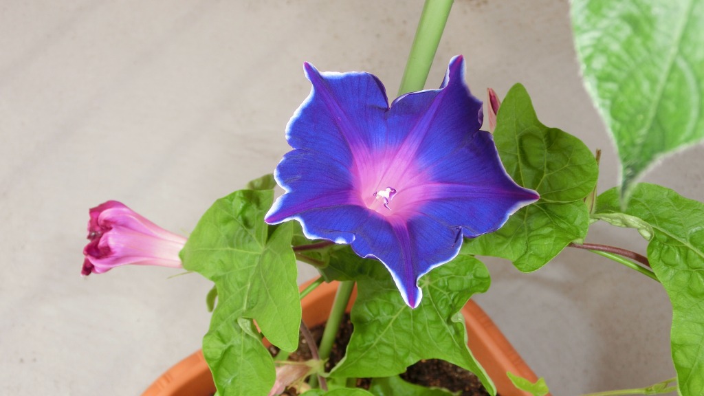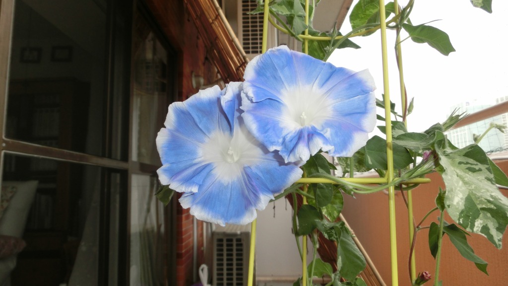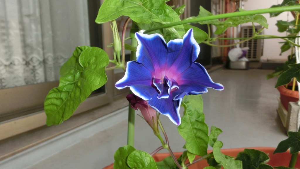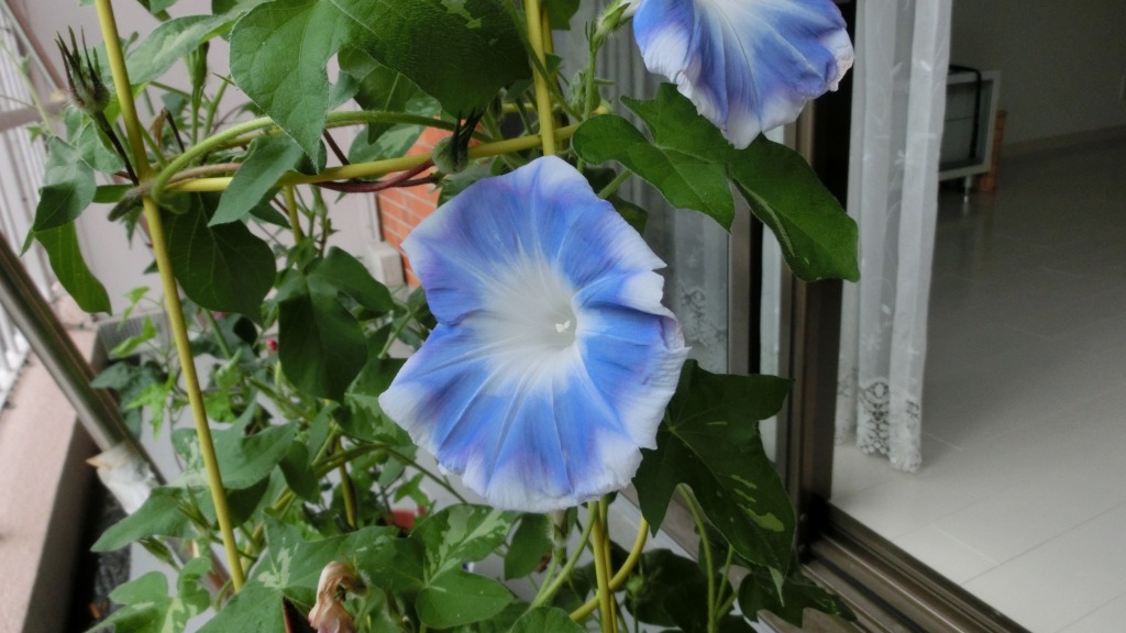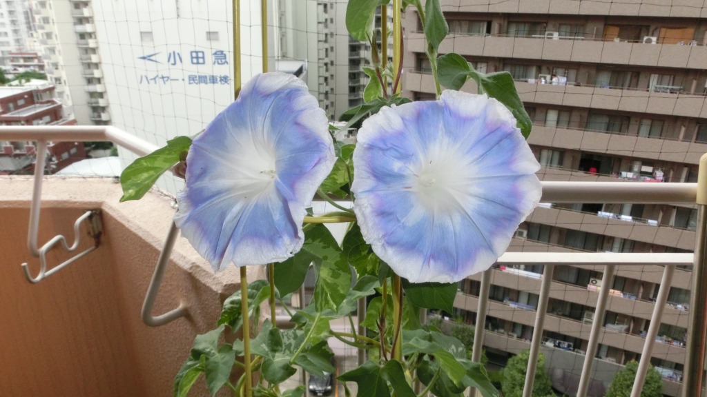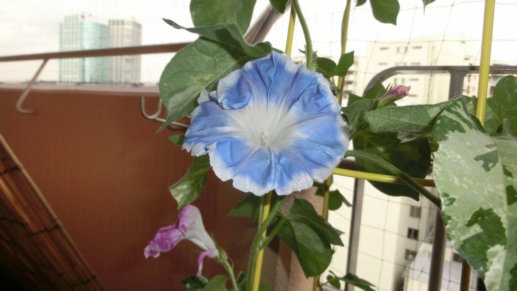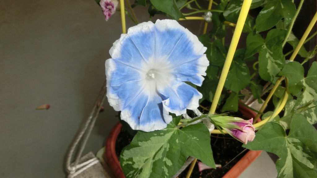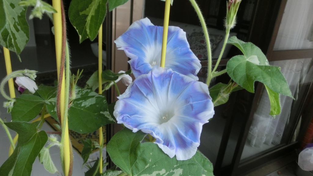 「一言」私がベランダで育てている4種類の朝顔です。毎日、咲いた花の写真を撮っています。
