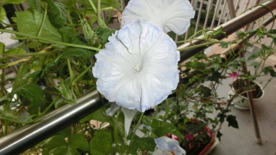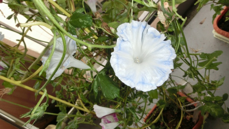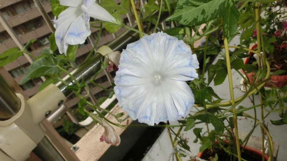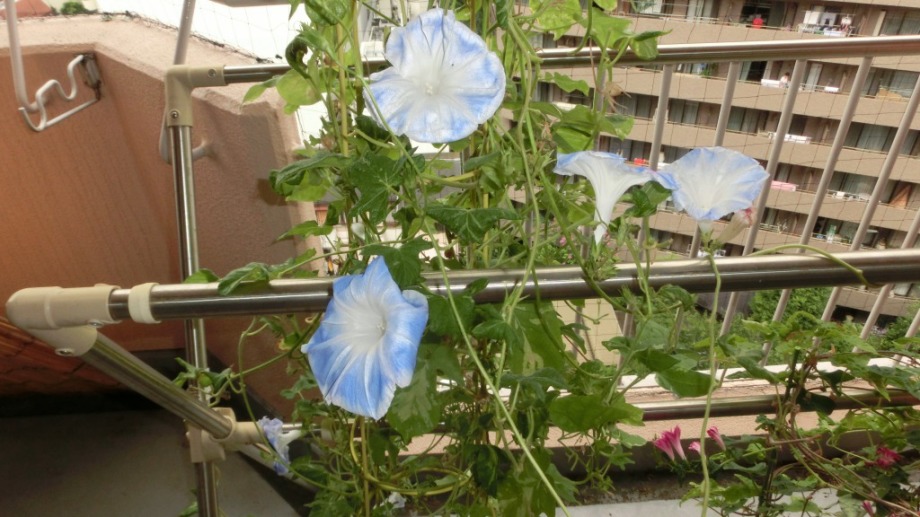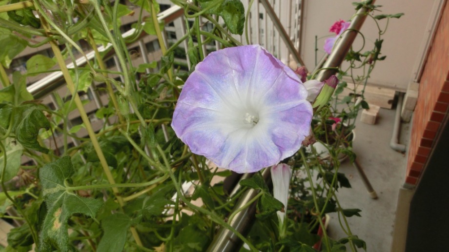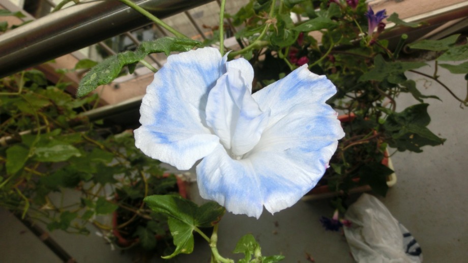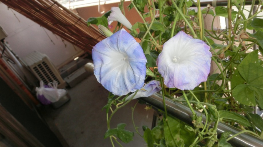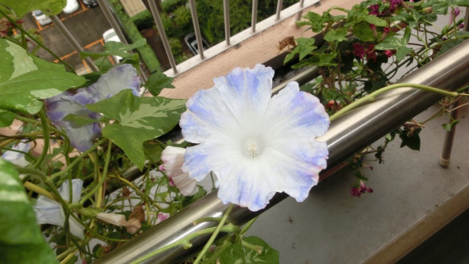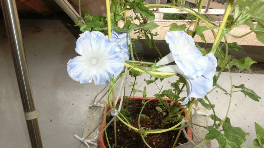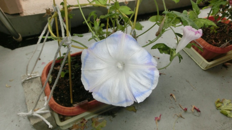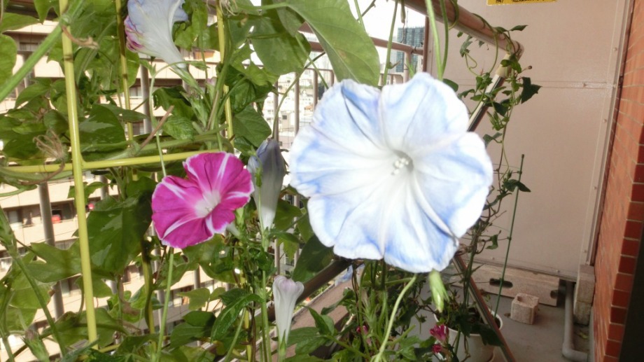 「感想」 9月には順調に朝顔の花が咲くようになり、色とりどりの花が綺麗だった。9月下旬になると大きな花の形が崩れるものが出てきた。