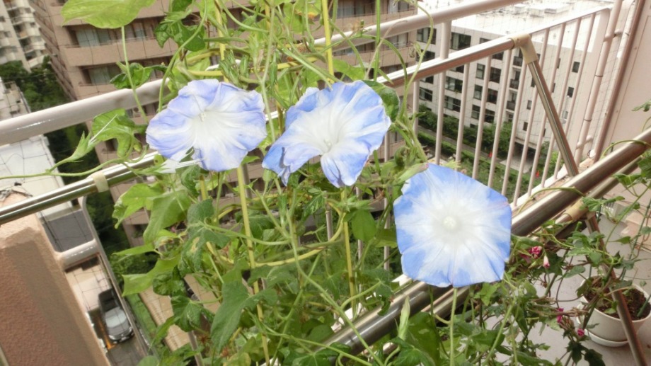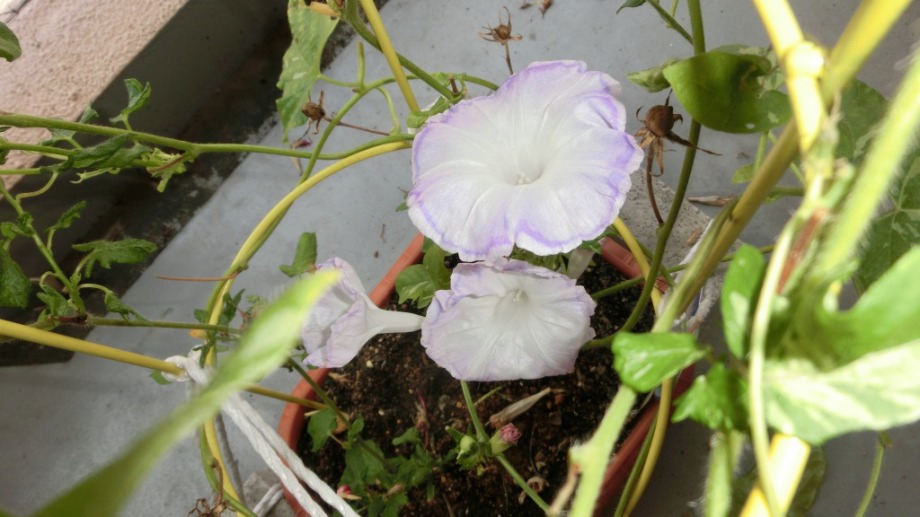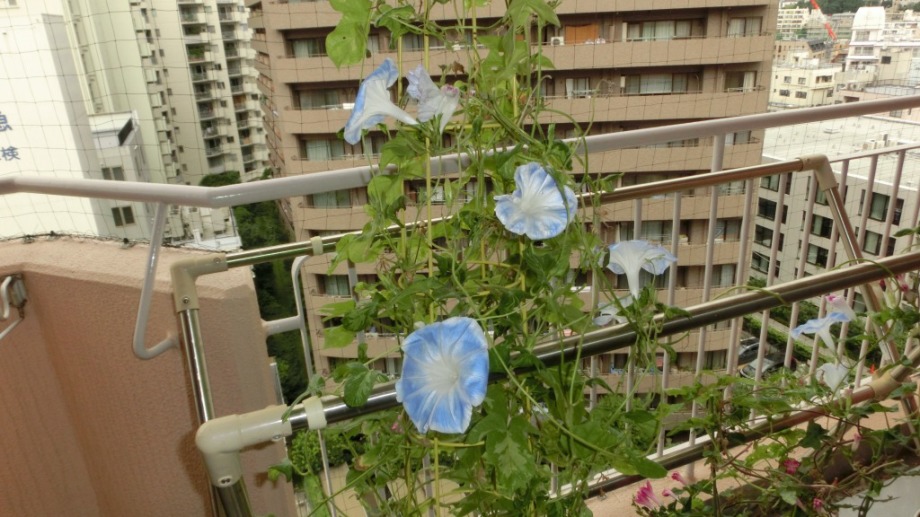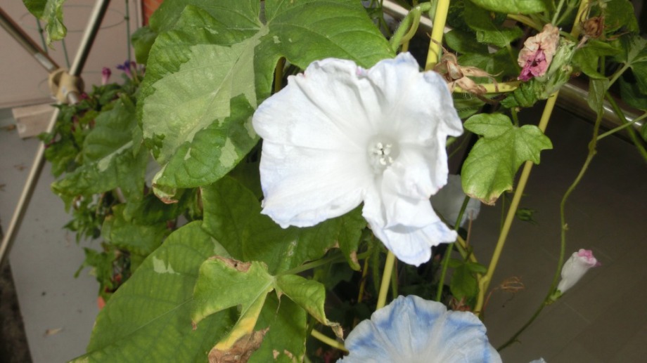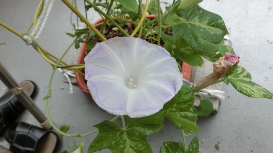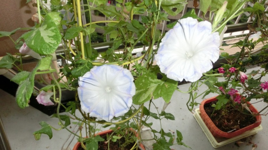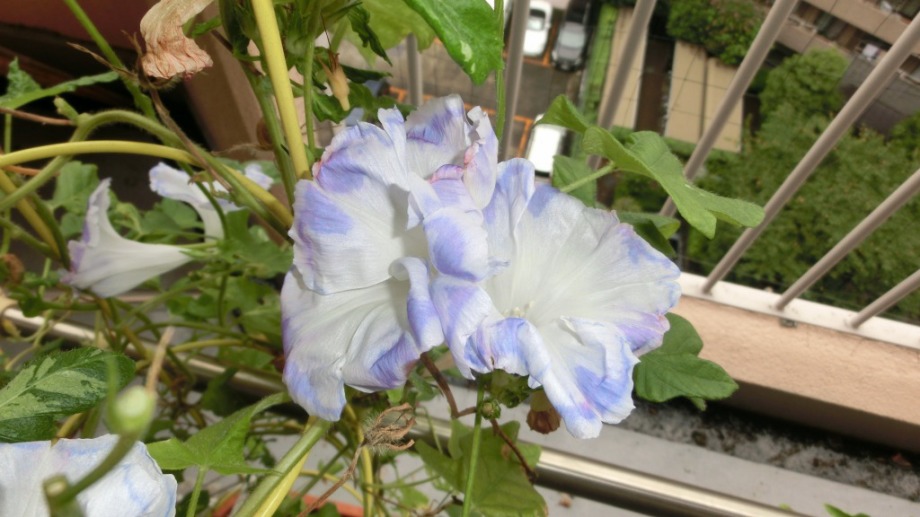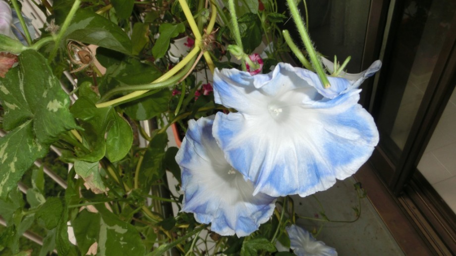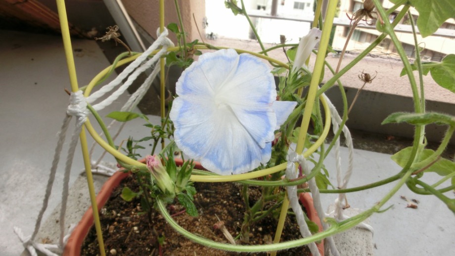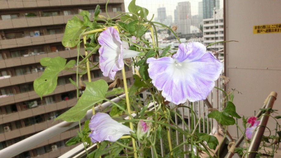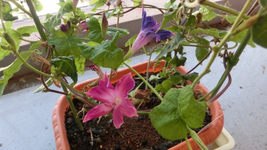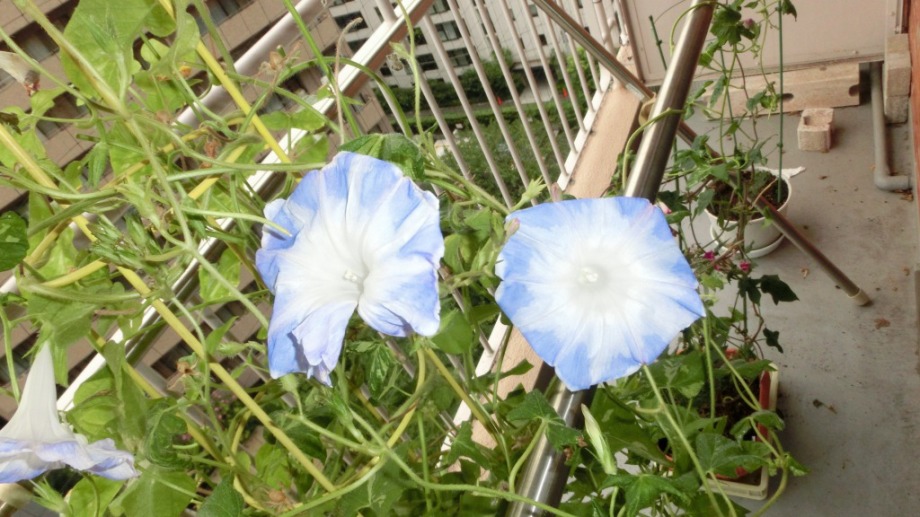 「感想」 9月には順調に朝顔の花が咲くようになり、色とりどりの花が綺麗だった。9月下旬になると大きな花の形が崩れるものが出てきた。