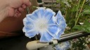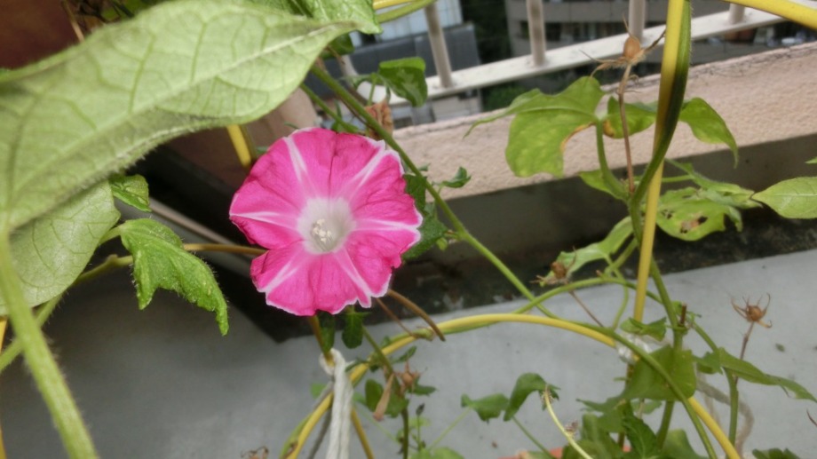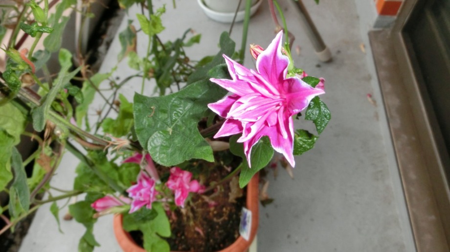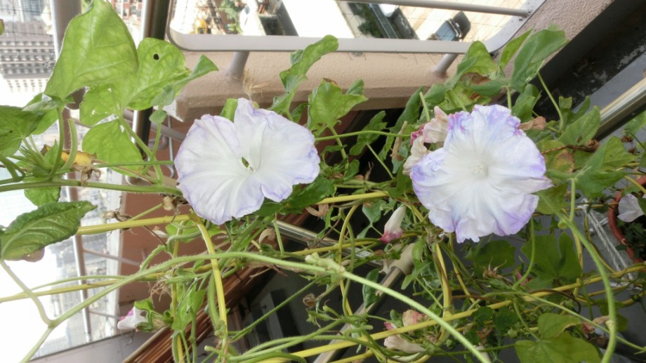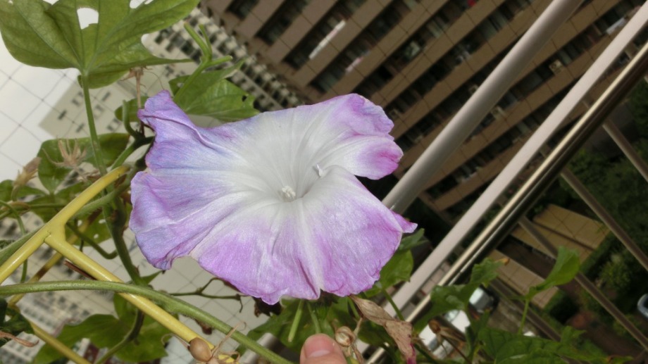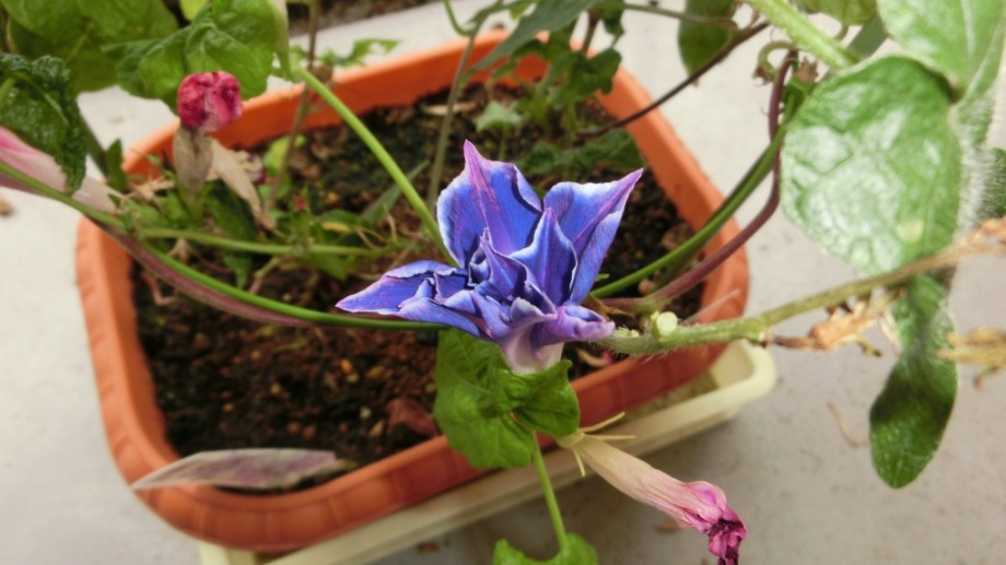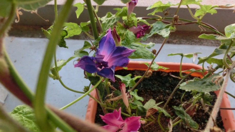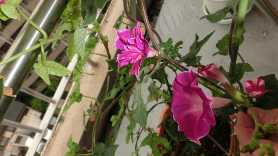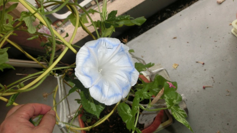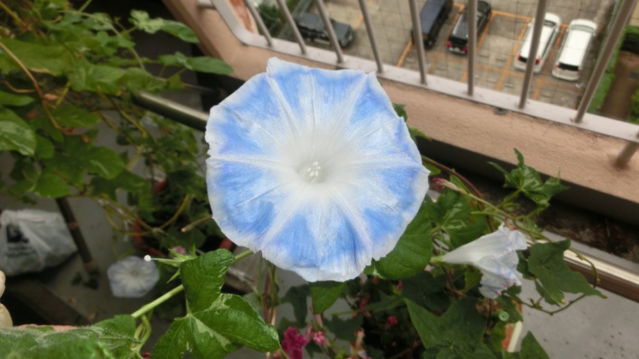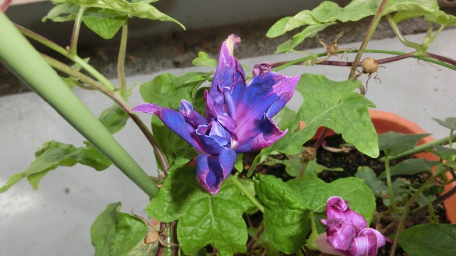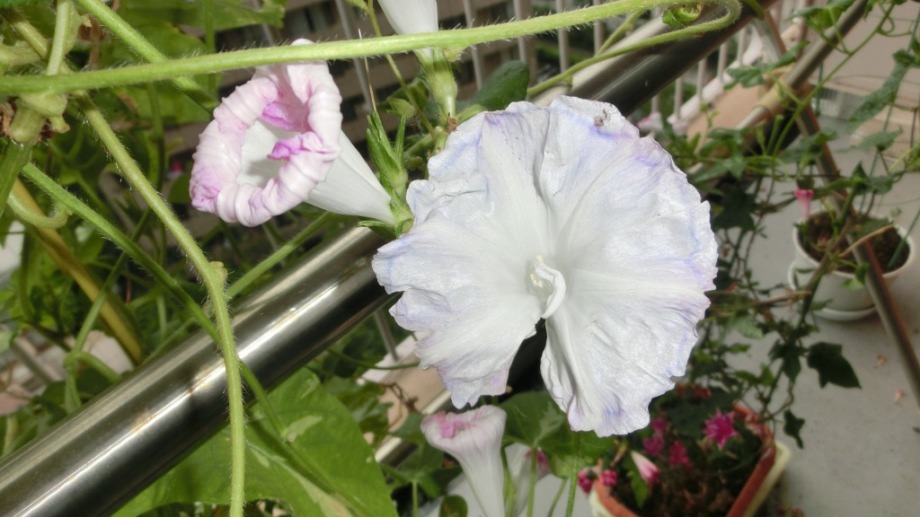 「感想」 9月には順調に朝顔の花が咲くようになり、色とりどりの花が綺麗だった。9月下旬になると大きな花の形が崩れるものが出てきた。