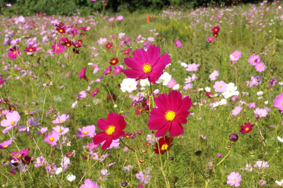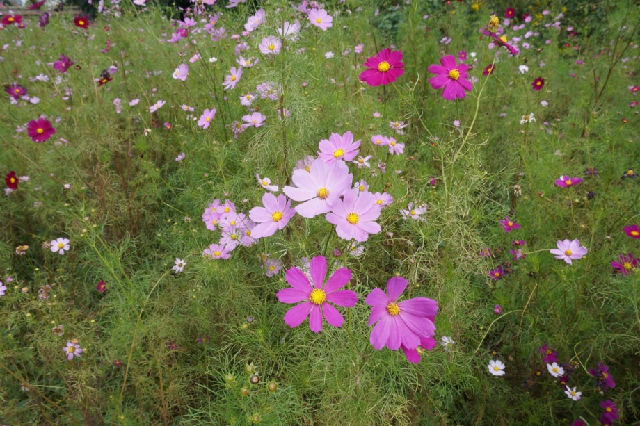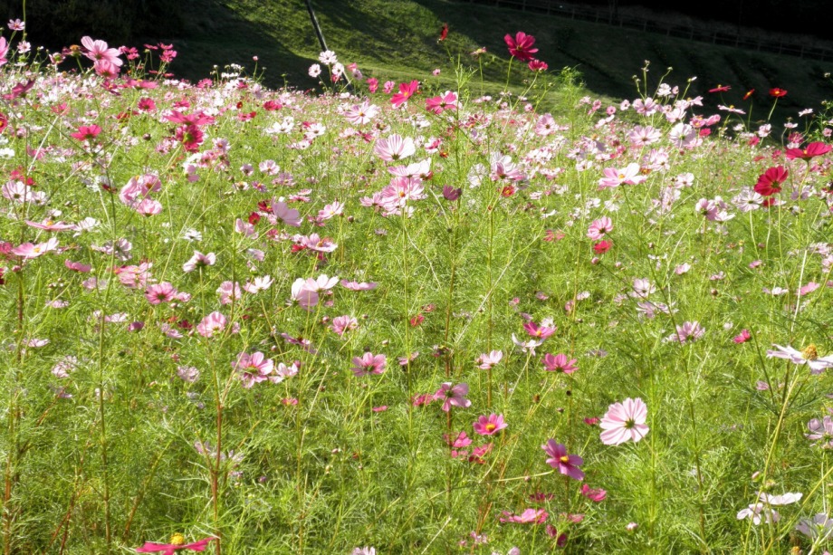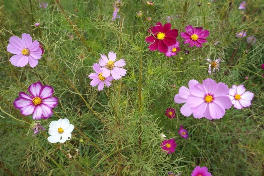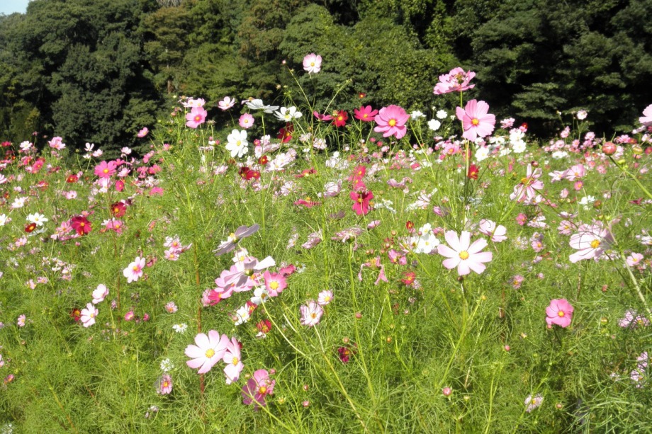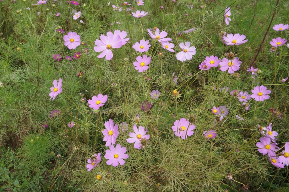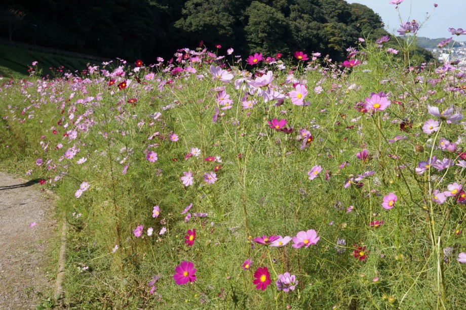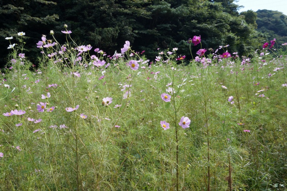 「感想」久里浜に行った帰りに、家内と合流して花の国のコスモスを見に行きました。コスモスの花は見頃でいっぱい咲いていました。 帰りに、入り口の側で紫陽花が咲いていて、驚きました。また少ないですがススキも見頃になっていました。