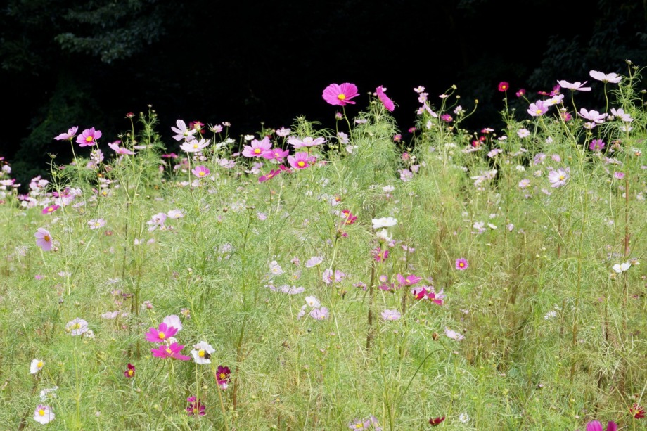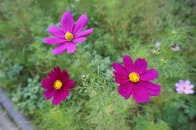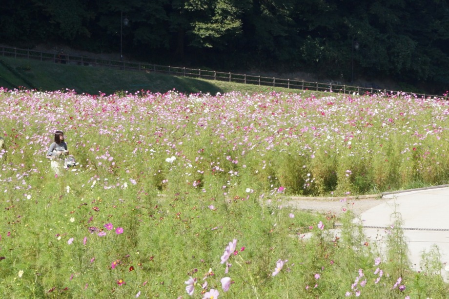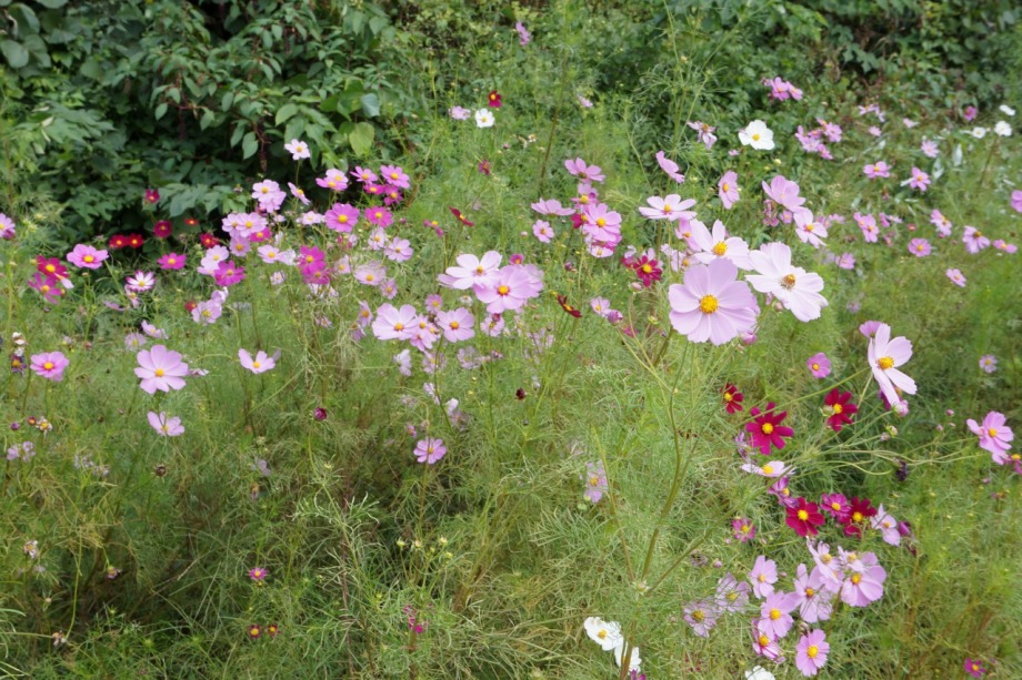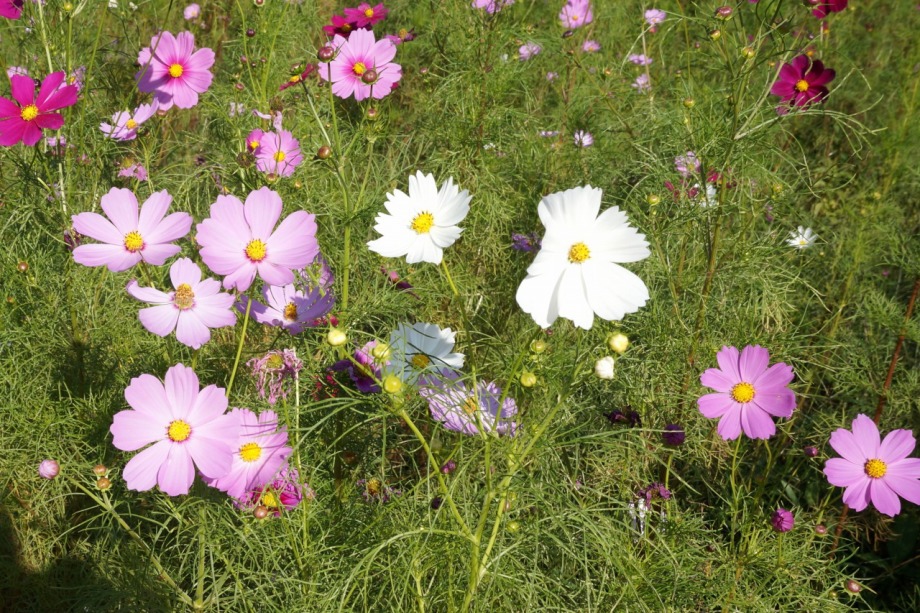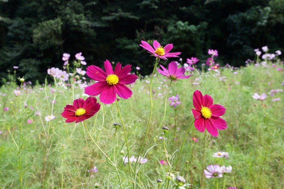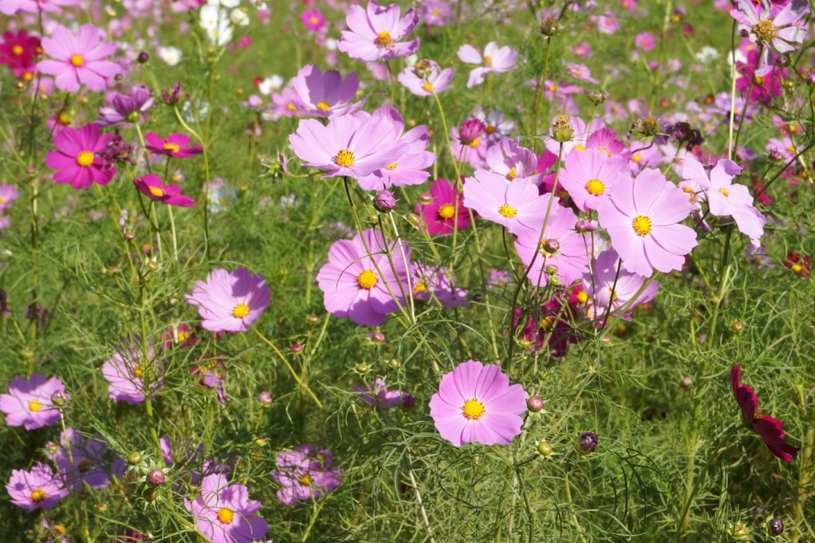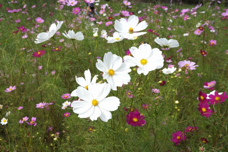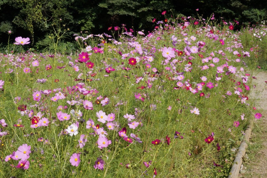 「感想」久里浜に行った帰りに、家内と合流して花の国のコスモスを見に行きました。コスモスの花は見頃でいっぱい咲いていました。 帰りに、入り口の側で紫陽花が咲いていて、驚きました。また少ないですがススキも見頃になっていました。