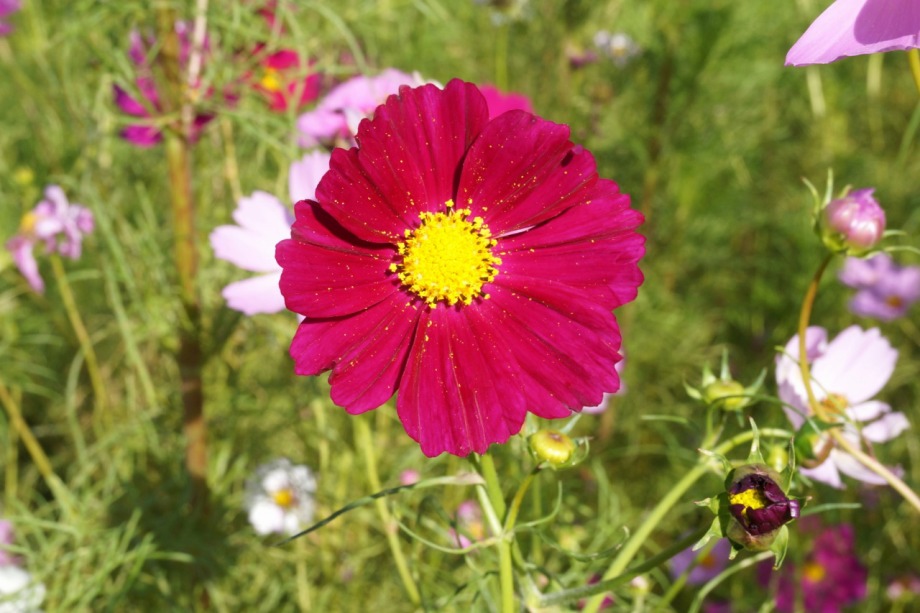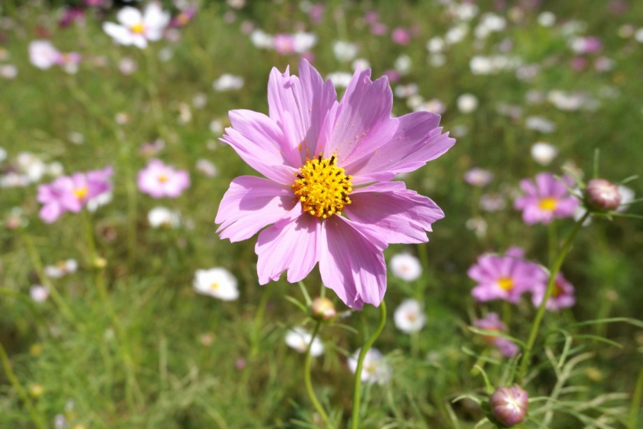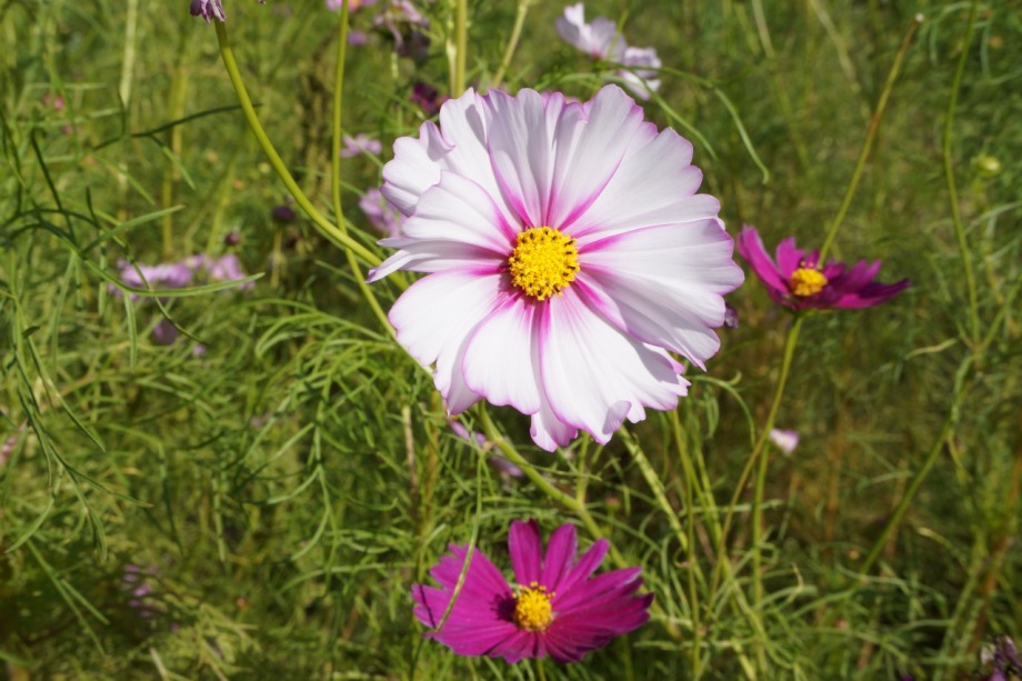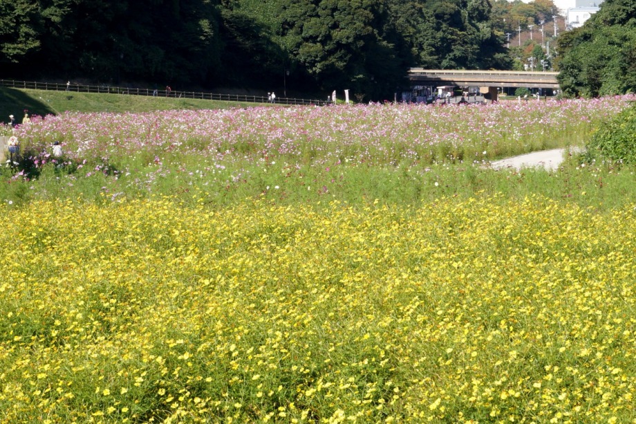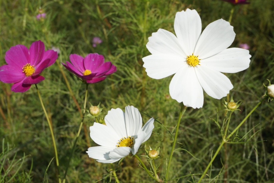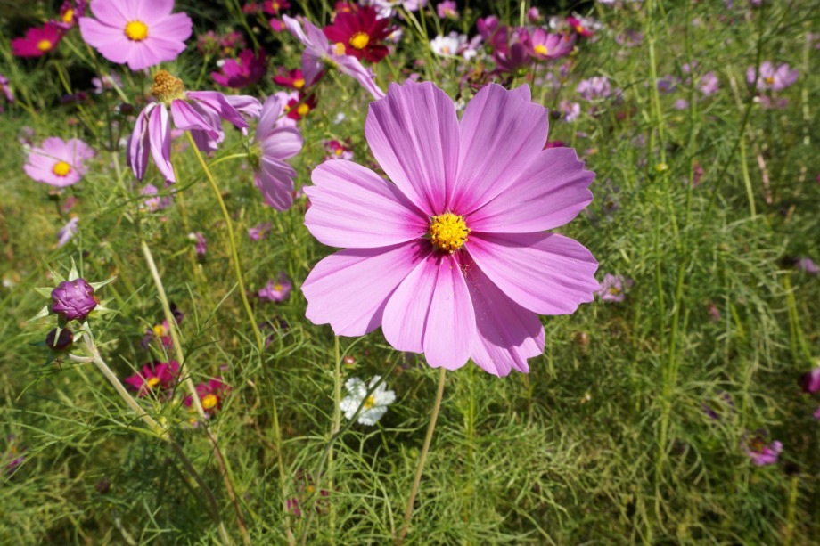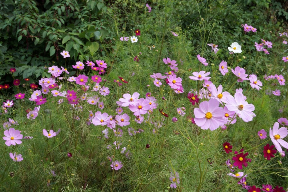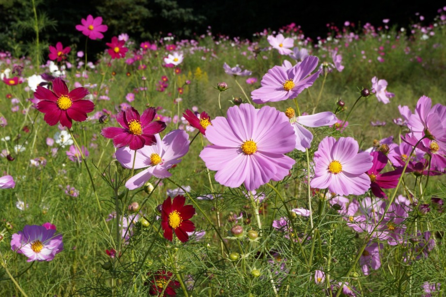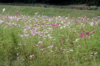 「感想」久里浜に行った帰りに、家内と合流して花の国のコスモスを見に行きました。コスモスの花は見頃でいっぱい咲いていました。 帰りに、入り口の側で紫陽花が咲いていて、驚きました。また少ないですがススキも見頃になっていました。
