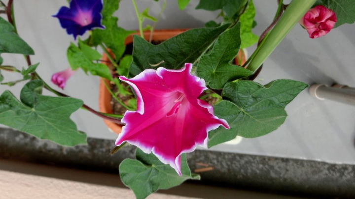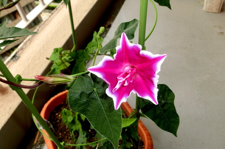 「一言」最近、近所に朝顔を見ろことが少なくなったので、今年は自宅で朝顔を育てて見ました。4種類の苗を植えました。