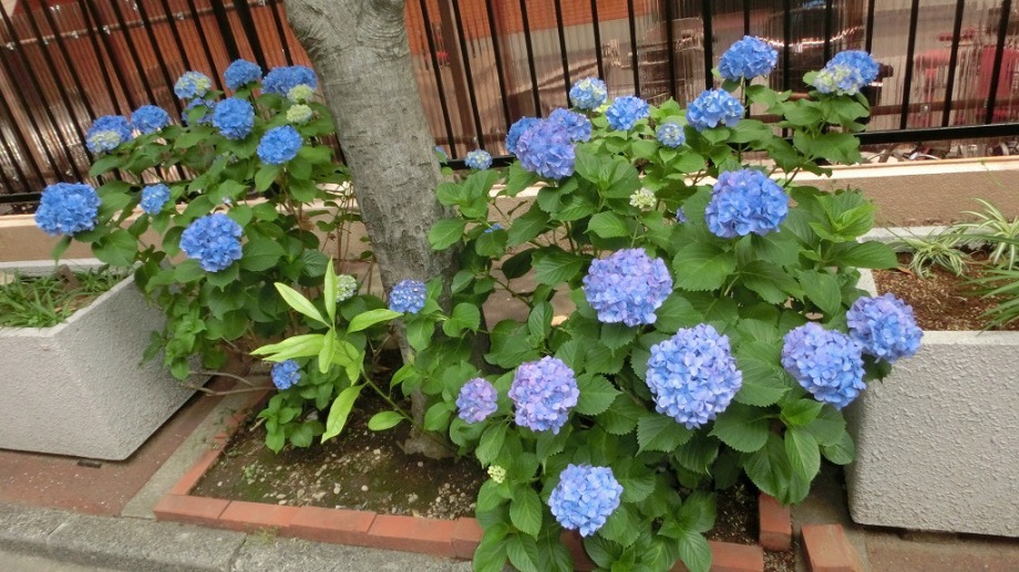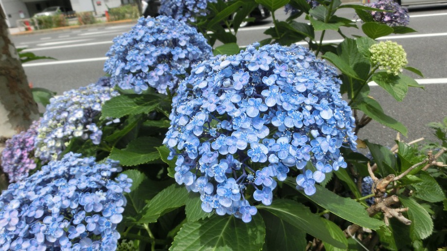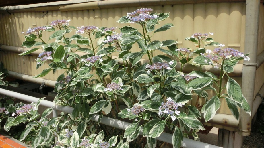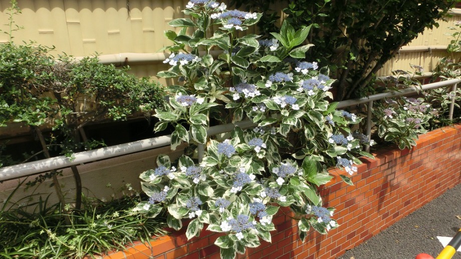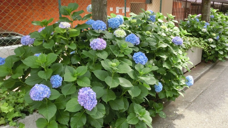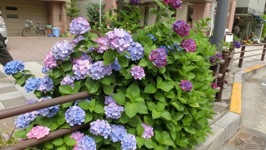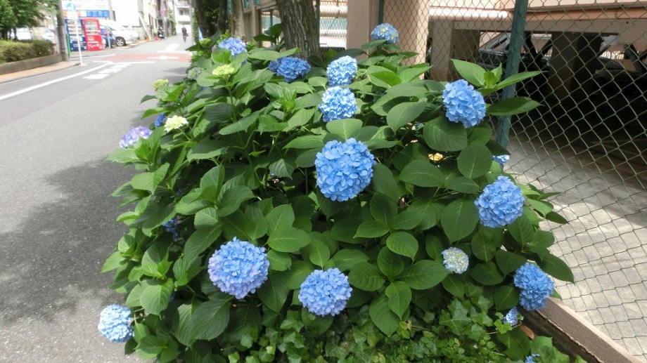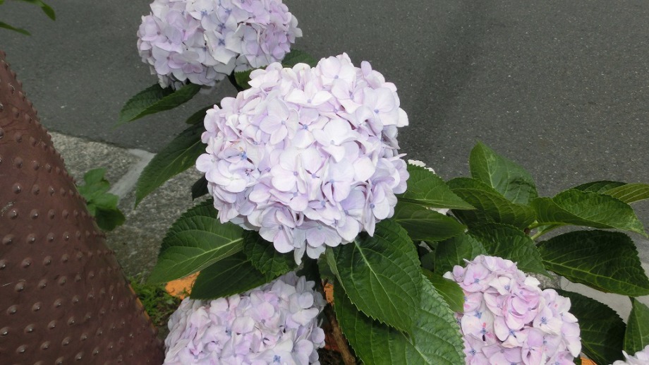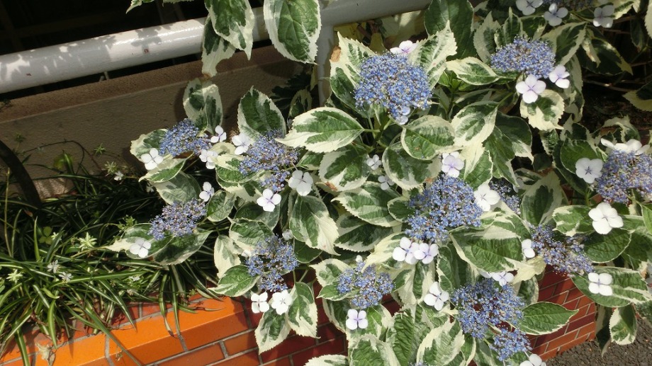 紫陽花があります。百合の花も咲いていました。アパートには珍しい紫陽花が咲いています。