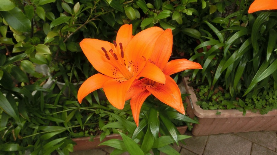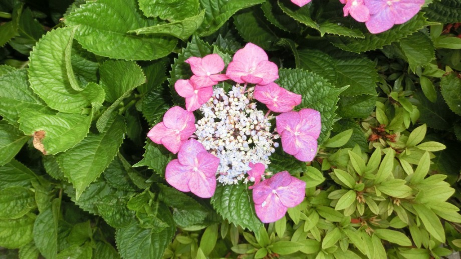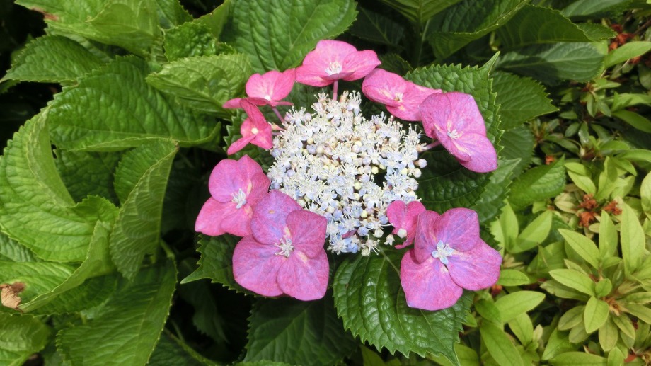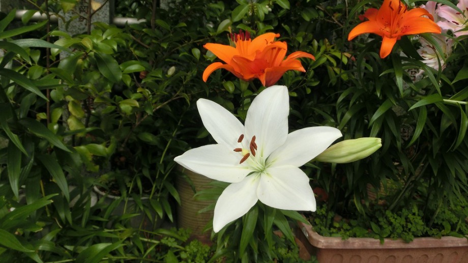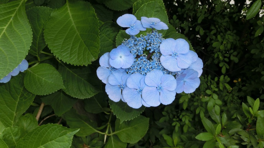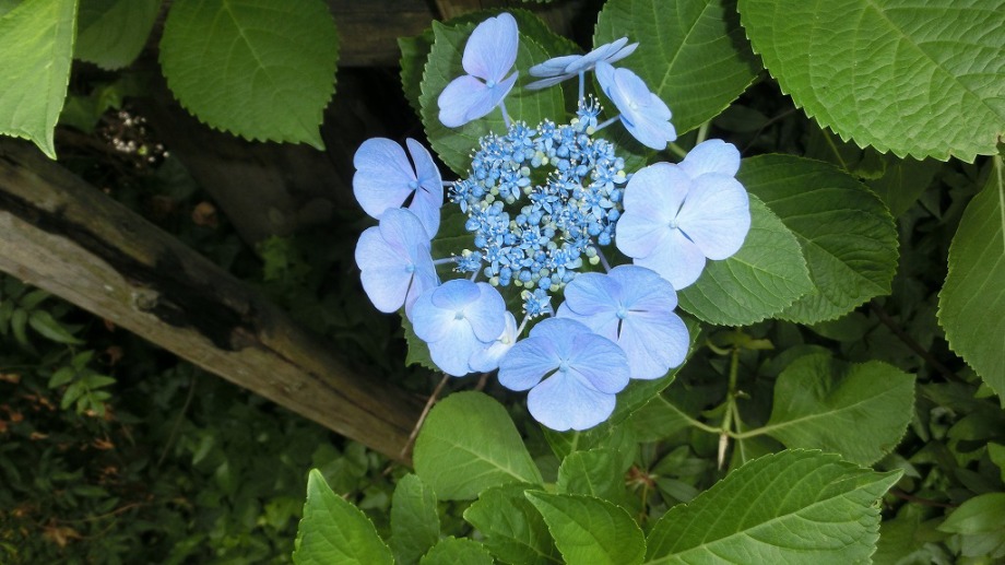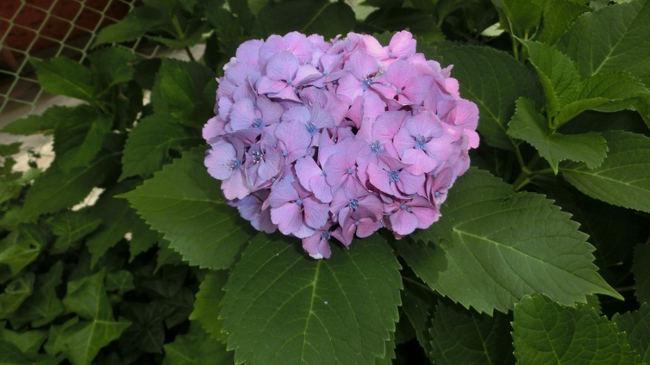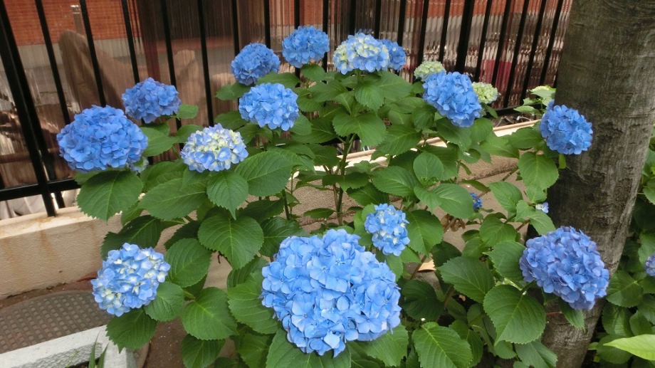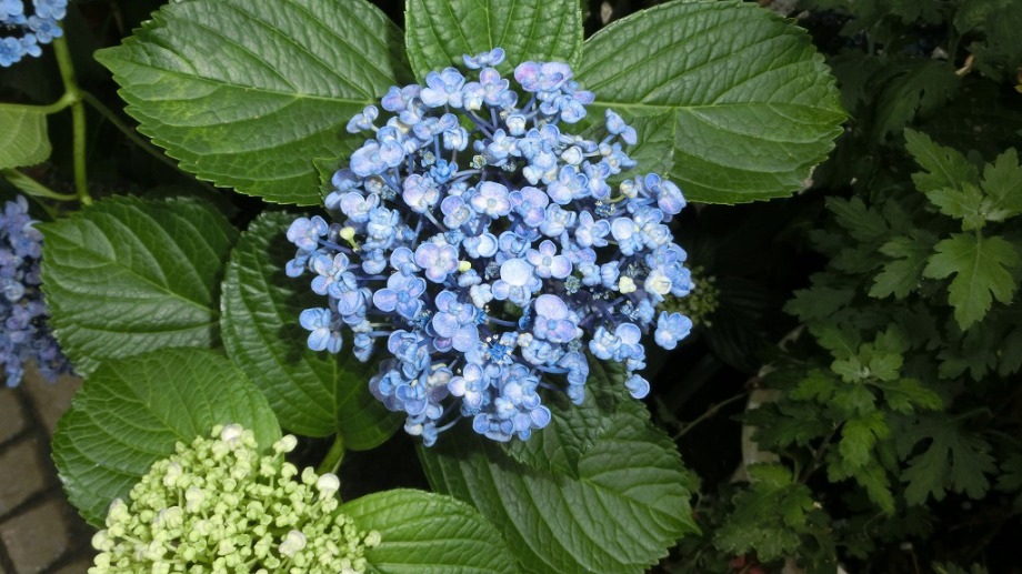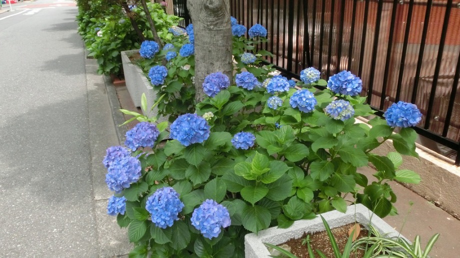 紫陽花があります。百合の花も咲いていました。アパートには珍しい紫陽花が咲いています。