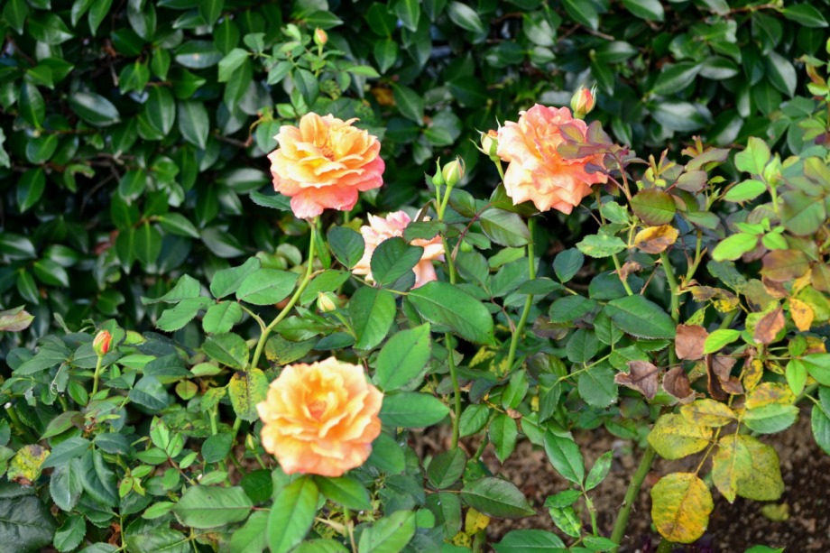 「感想」壁打ちテニスに行くと、バラがたくさん咲いていた。いつも早く咲く芝浦中央公園だが、今年は色々な種類のバラが 咲いていて驚いた。手入れをする人が増えている感じで、厳しい暑さの夏だったので、バラは痛められているか 心配したが、たくさん花を咲かせていた。手入れをしている人の話では、これからが見頃ということだった。
