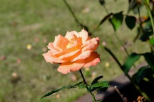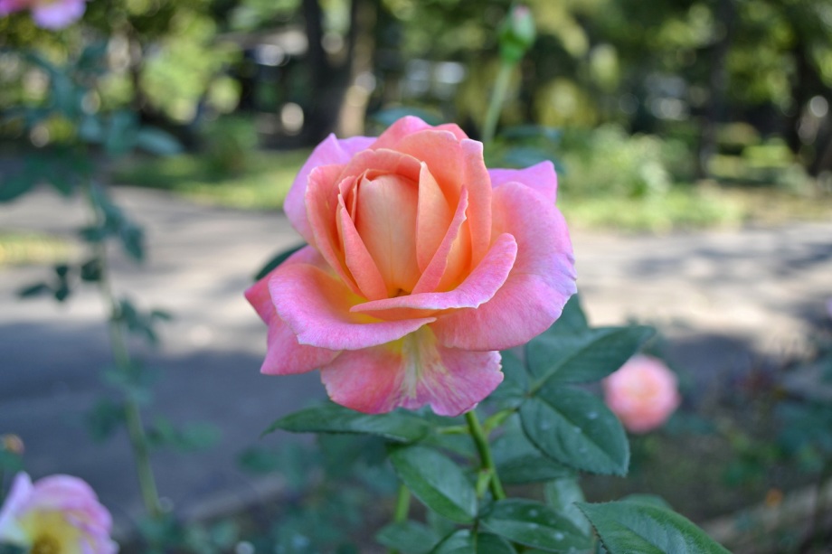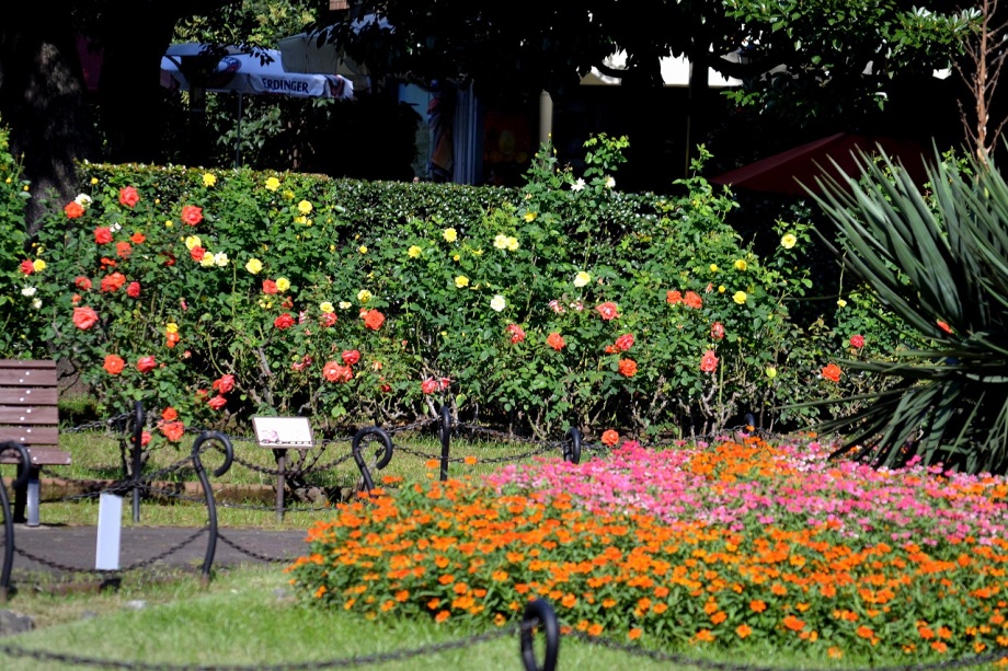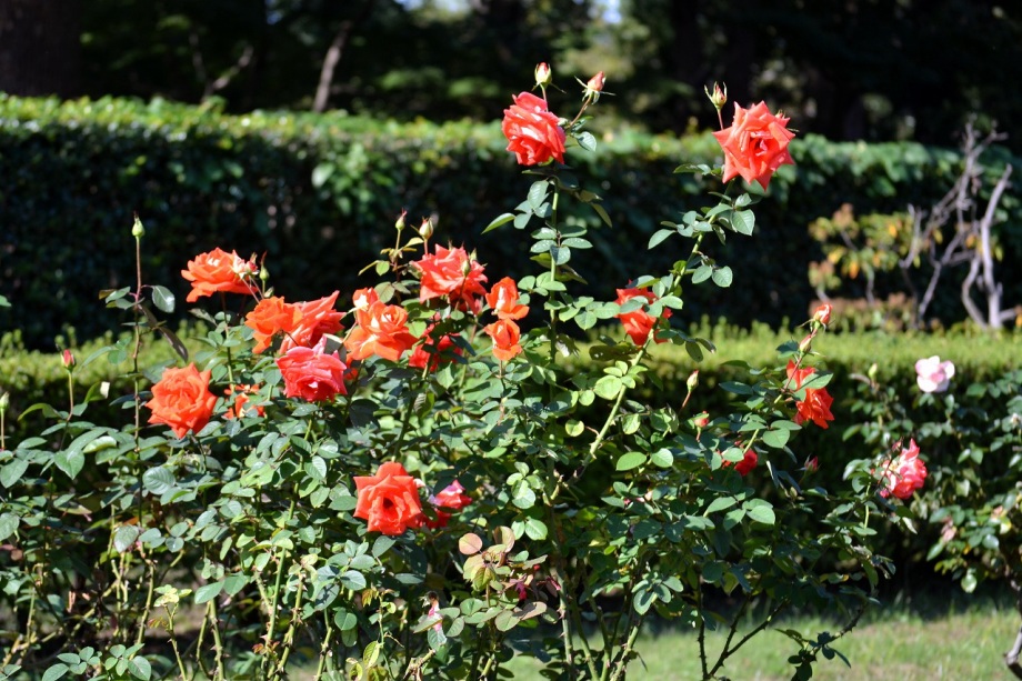 「一言」日比谷公園のバラの花を見に行きました。バラの花は見頃の時期になっていて、バラの花がたくさん咲いていました。天気が非常に良かったので、 花に影が強く出て、たくさん写真を撮りましたが、良い写真は少ない感じがします。また、週末からガーデニングの展示会が行われるとのことで、 大きな広場では業者が工事をしていて、バラの写真はほとんど撮れませんでした。