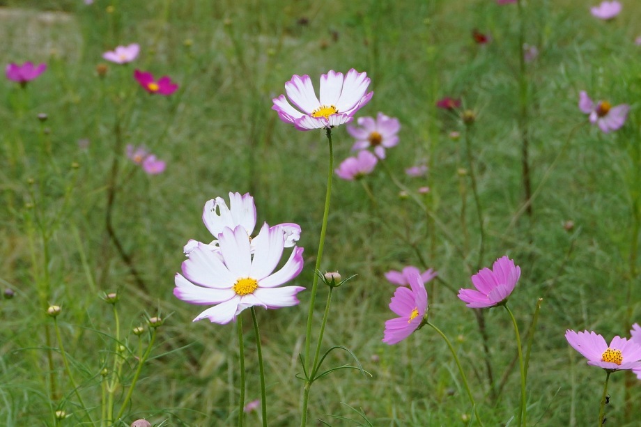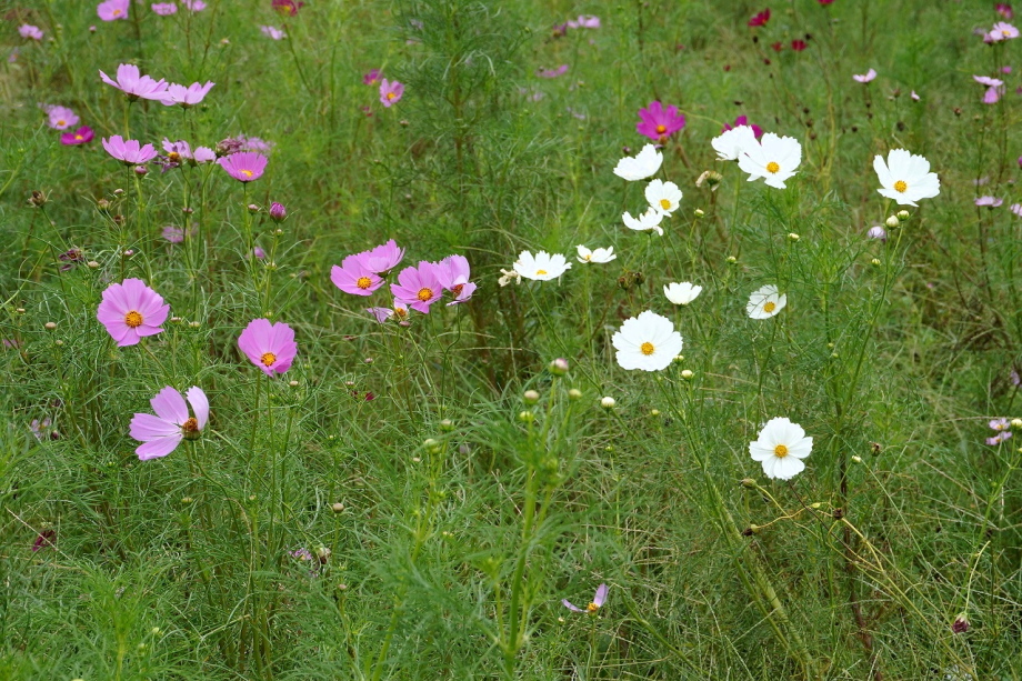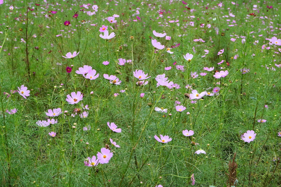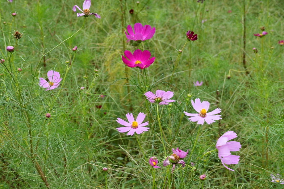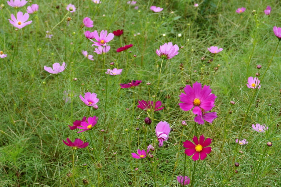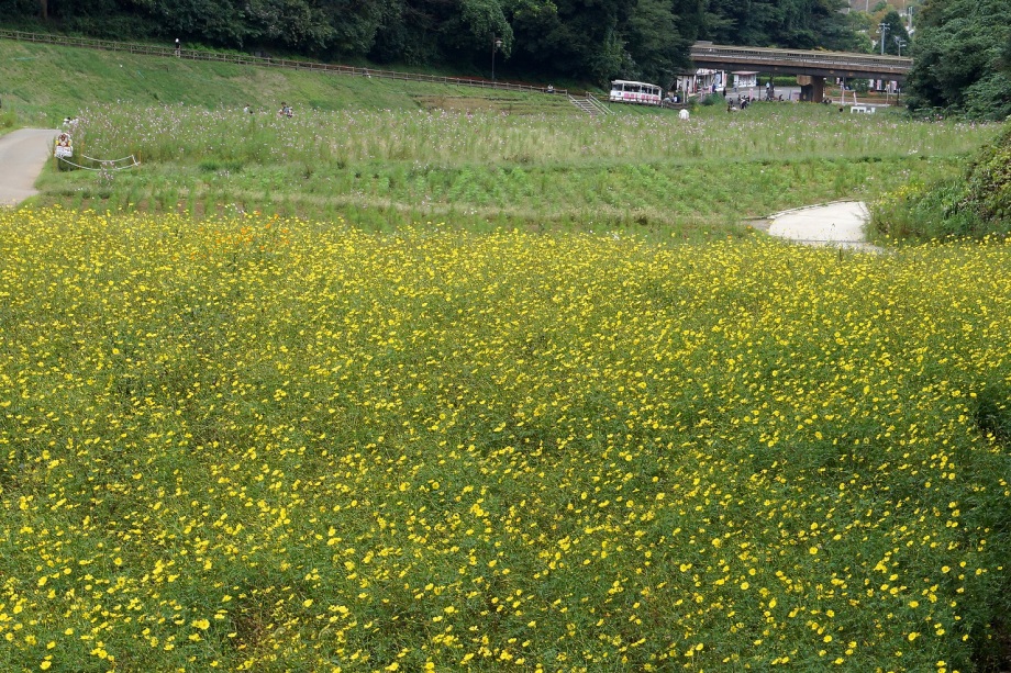 「一言」今日は久里浜に行った帰りに、花の国にコスモスを見に行きました。入り口に5分咲きと書かれていましたように、お花の数は少し少ない感じが しましたが、綺麗な花がたくさん咲いていました。山の方には黄色い花が群生していて綺麗でした。写真を撮りましたが、自然の綺麗な感じは 出ませんでした。気温は涼しくなっていましたが、お天気は曇りでしたので、写真に撮ったコスモスの花は少し暗くなった感じです。
