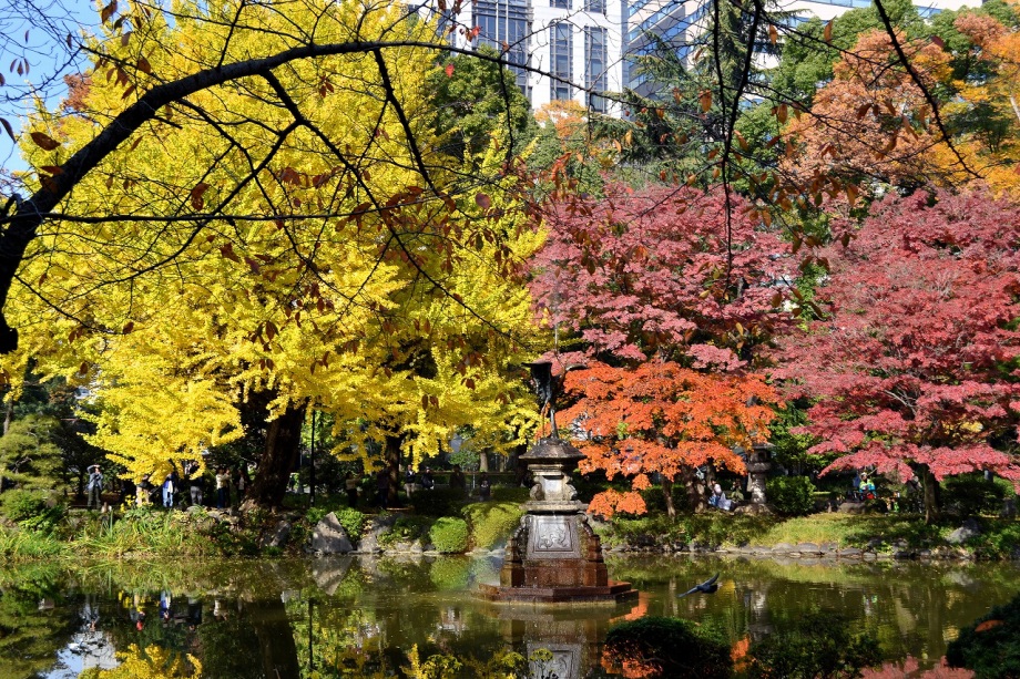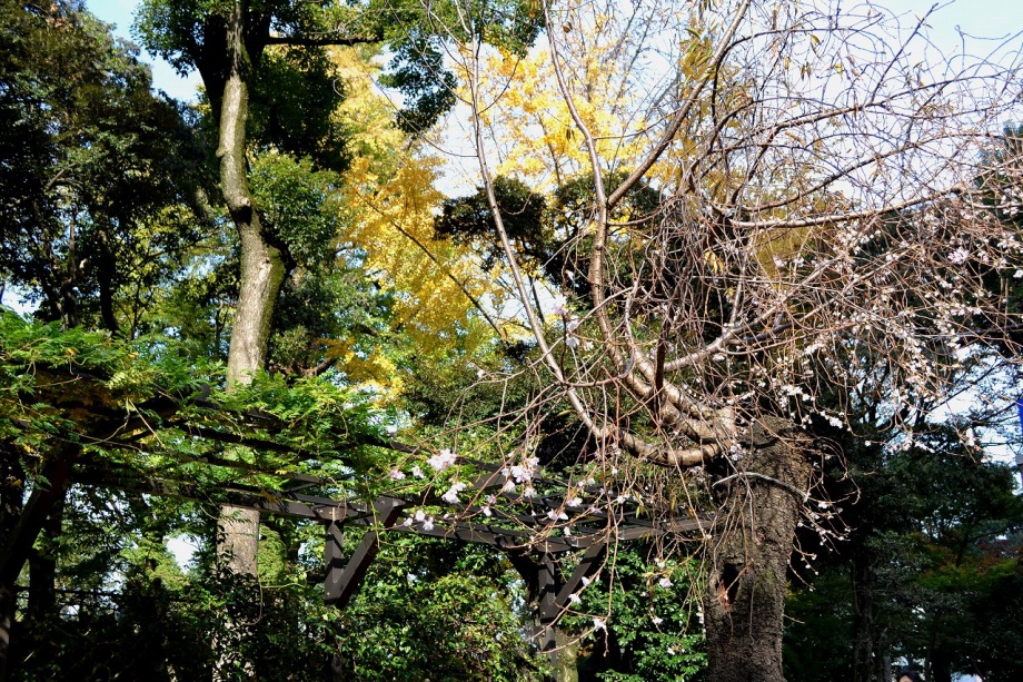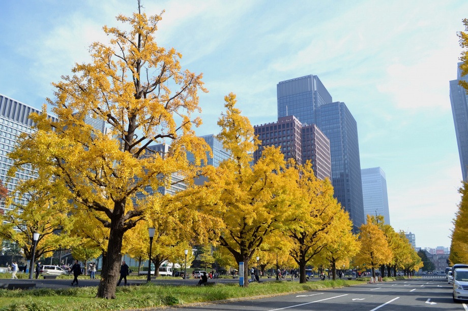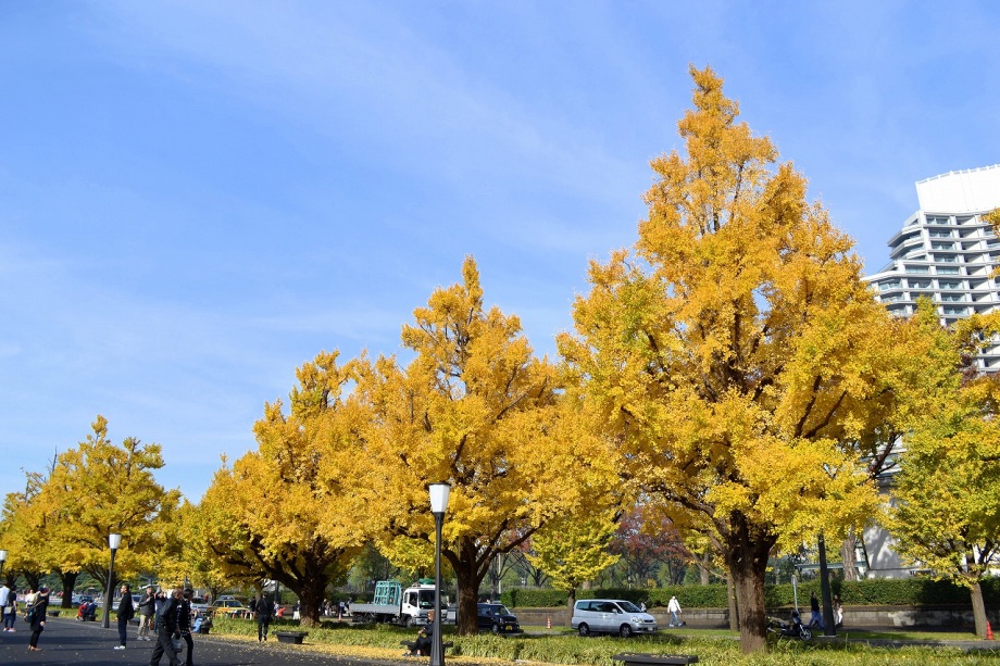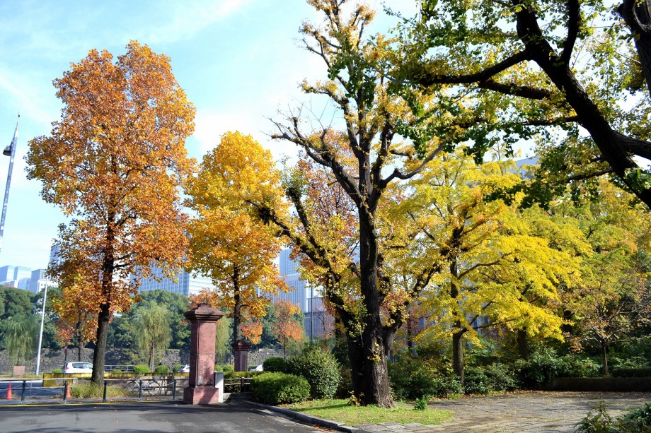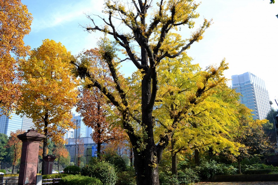 「一言」今日は天気が良く、暖かいので、日比谷公園と皇居前に写真を撮りに行きました。日比谷公園の池の周りのイチョウは綺麗な黄色になっていました。 紅葉はこれからという状況ですが、なかなか風情のある感じでした。皇居前のイチョウも綺麗になっていましたが。お堀の横のイチョウはまだ青い 色の葉が多い感じです。日比谷公園の横には十月桜が咲いていました。