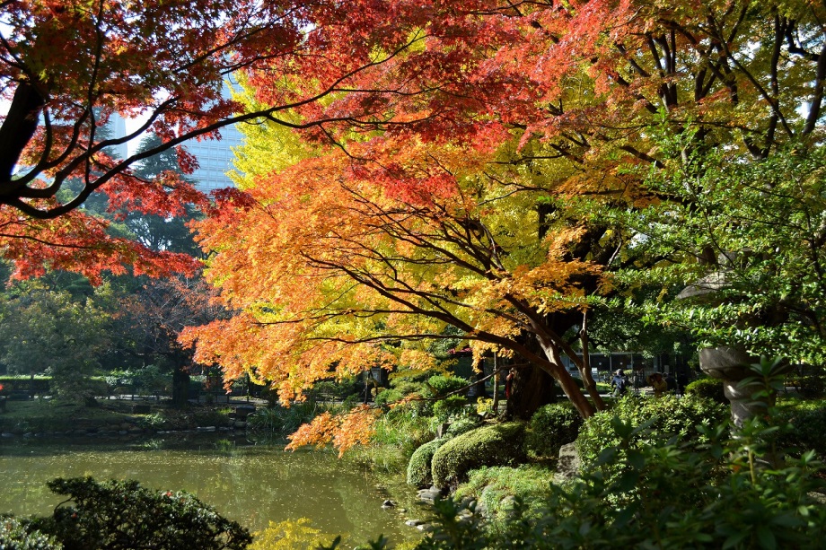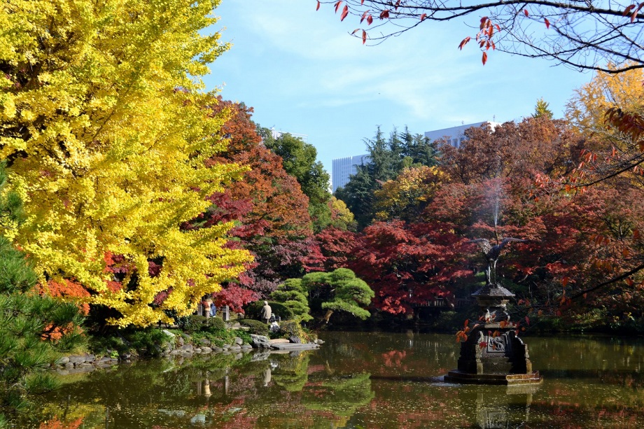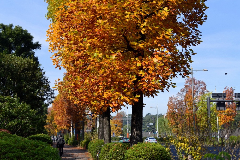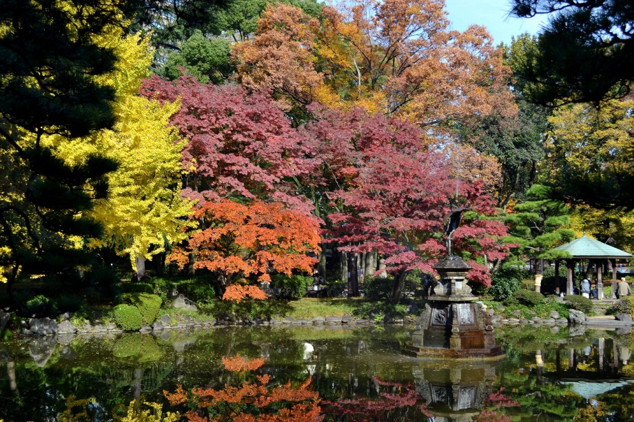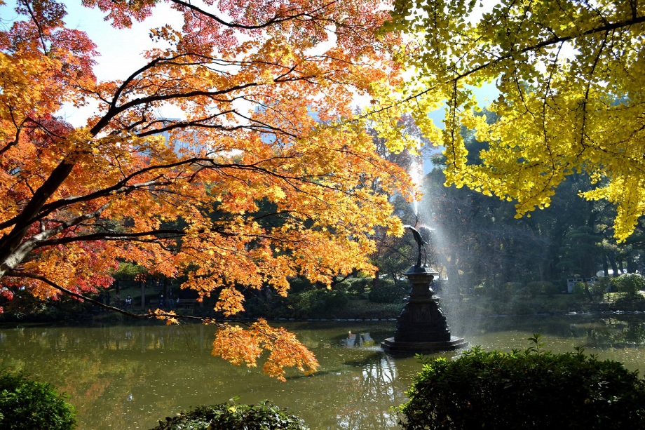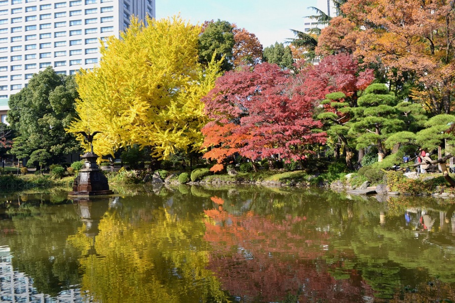 「一言」今日は天気が良く、暖かいので、日比谷公園と皇居前に写真を撮りに行きました。日比谷公園の池の周りのイチョウは綺麗な黄色になっていました。 紅葉はこれからという状況ですが、なかなか風情のある感じでした。皇居前のイチョウも綺麗になっていましたが。お堀の横のイチョウはまだ青い 色の葉が多い感じです。日比谷公園の横には十月桜が咲いていました。