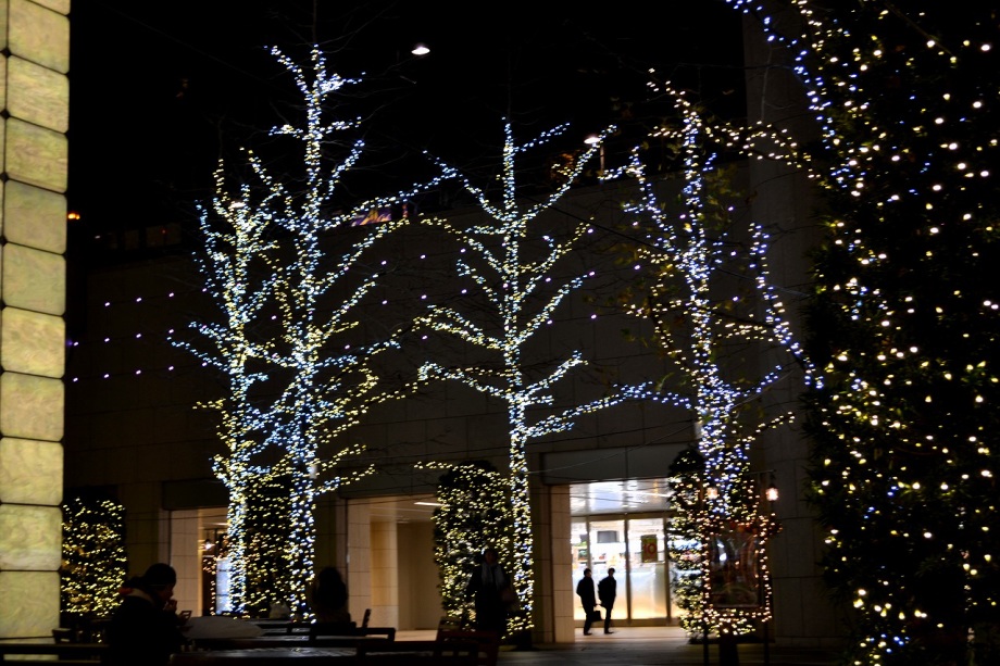 「一言」今日は寒かったが、有楽町や銀座、汐留のイルミネーションの写真を撮った。有楽町は緑のツリーだけと思ったら、有楽町の交通会館の2階に飾りがあり、 なかなか面白かった。銀座にはお店のクリスマスツリーが色々とあり、趣向を凝らしていた。また、道路沿いには面白い飾りが並んでいたが、人通りが多かった。 汐留は一階のイルミネーションが昨年に比べると少し地味な感じだったが、地下は例年通り賑やかなイルミネーションがたくさんあり、なかなか綺麗だった。