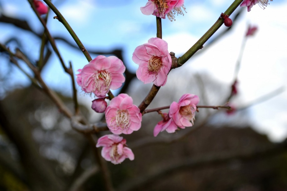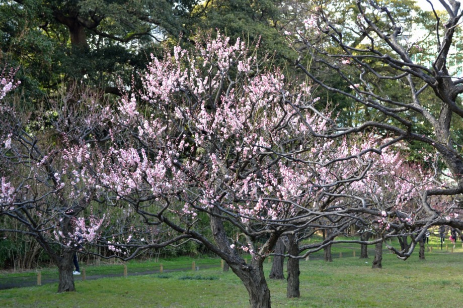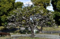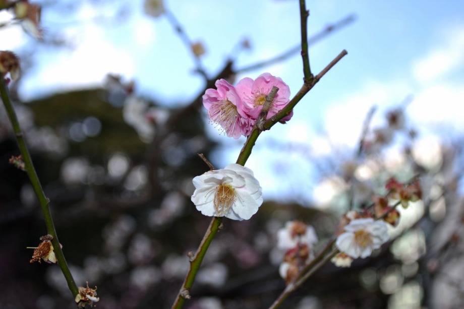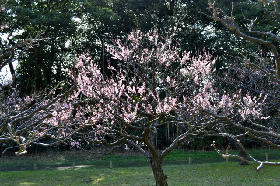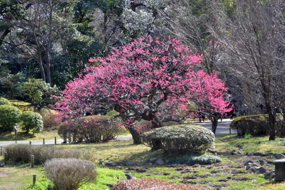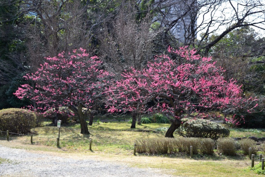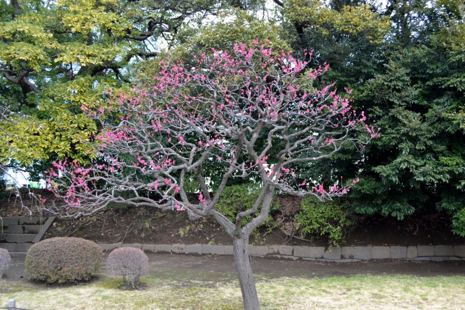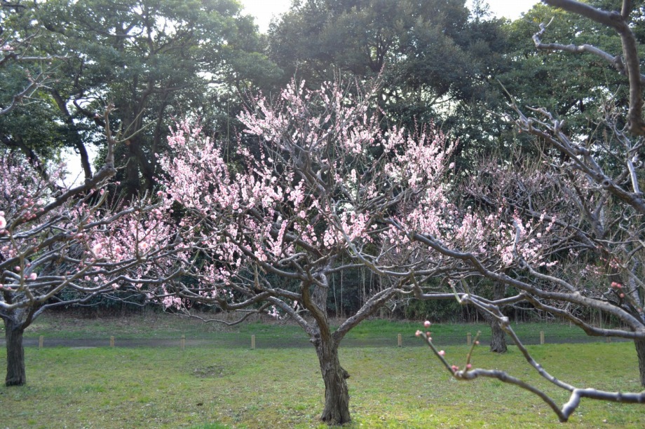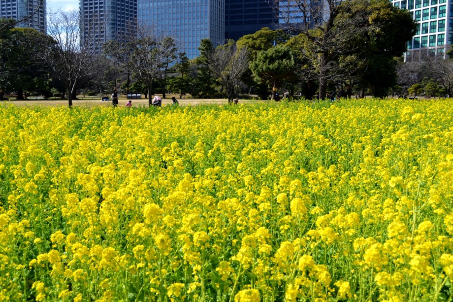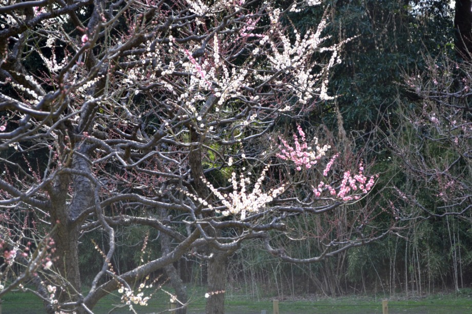 「感想」今日は午後から天気が回復するというので、浜離宮の梅の花を見に行きました。入り口を入ると菜の花の黄色の絨毯が見え、 その横には、白梅が花をつけていました。奥の梅林には白梅が見頃でした。紅梅はもう少しという感じで、つぼみが大きくなって いました。白梅と紅梅が一本の木に咲くという思いのままも数多く咲いていました。