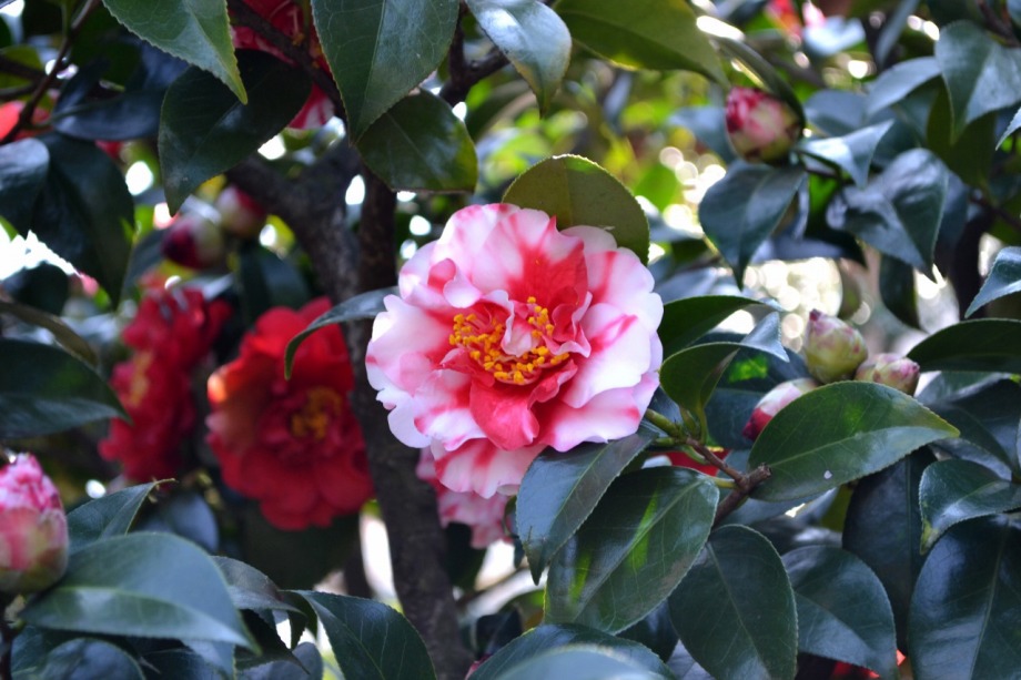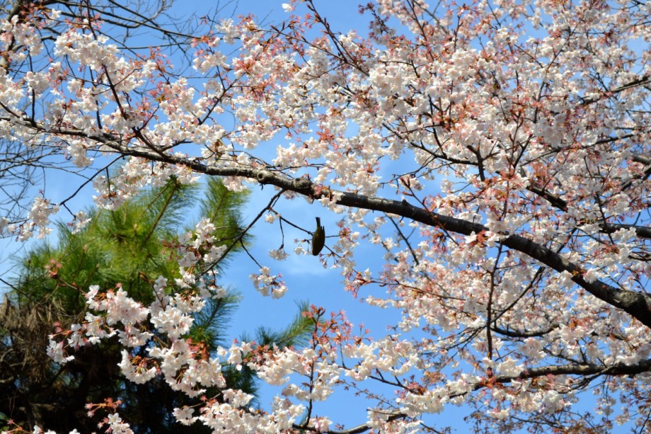 「一言」今日は三田4丁目のお寺を回りました。実相寺には大きな早咲きの桜の木と思える木に花が満開でした。鳥がたくさん飛んできていて 春らしい感じでした。三田台公園の梅も見頃で、枝ぶりも良く綺麗でした。王鳳寺の椿が綺麗でした。古木の梅も良い感じでした。