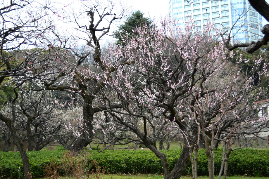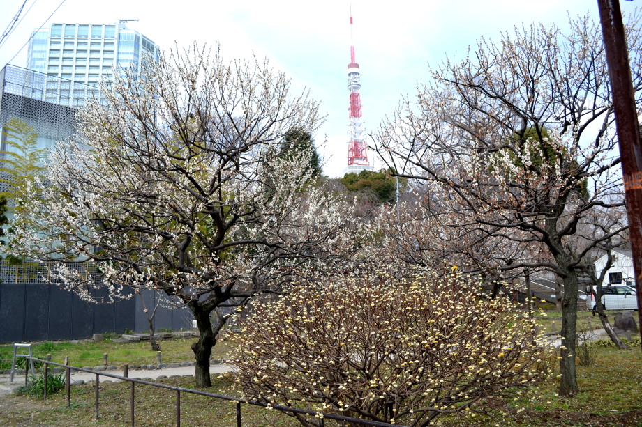 「一言」芝公園の梅の花は満開で見頃でした。白梅も紅梅も咲いていて綺麗でした。芝東照宮の庭には赤い花が咲いていました。東京プリンスホテルの 庭には桜の大きな木があり、見頃でした。プリンスタワーの庭には色々な花が咲いていて綺麗でした。