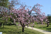 「一言」浜離宮に八重桜を見に言ったが、八重桜はまだ咲いていなかった。しかし、一葉という桜やウコン桜などが咲いていて綺麗だった。 牡丹の花も咲き始めていた。ムクドリもたくさん来ていて、見ていると楽しかった。