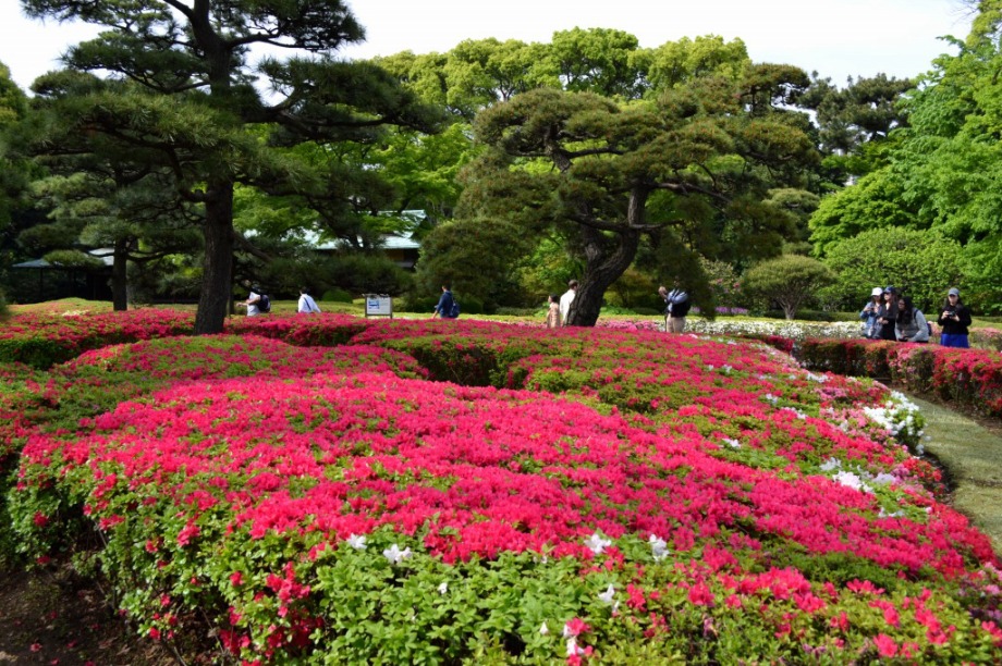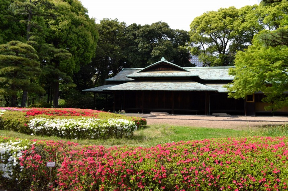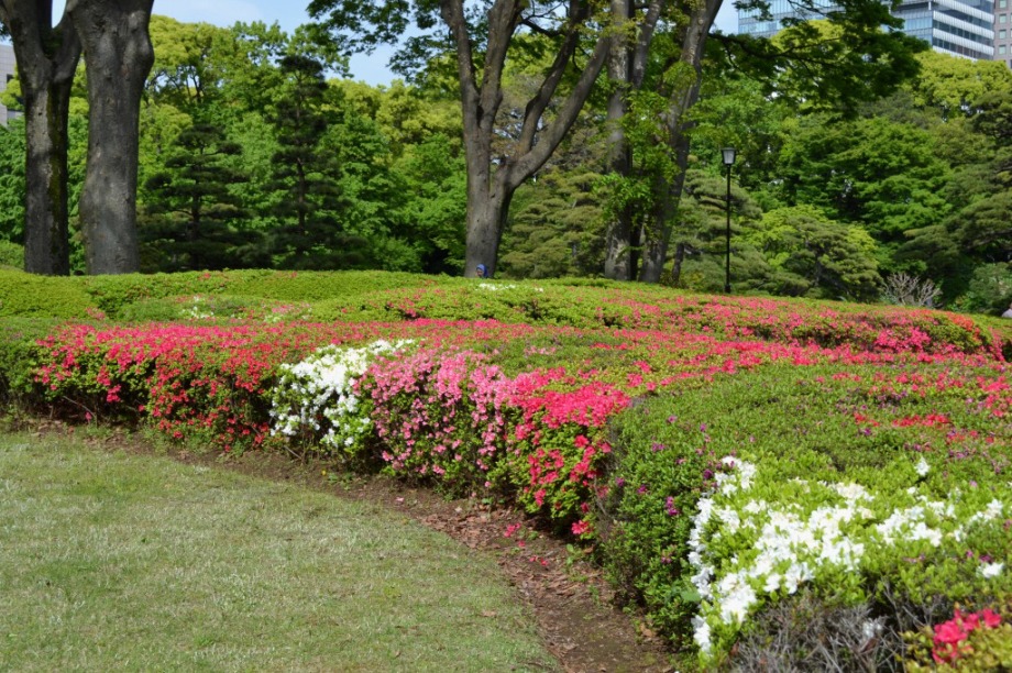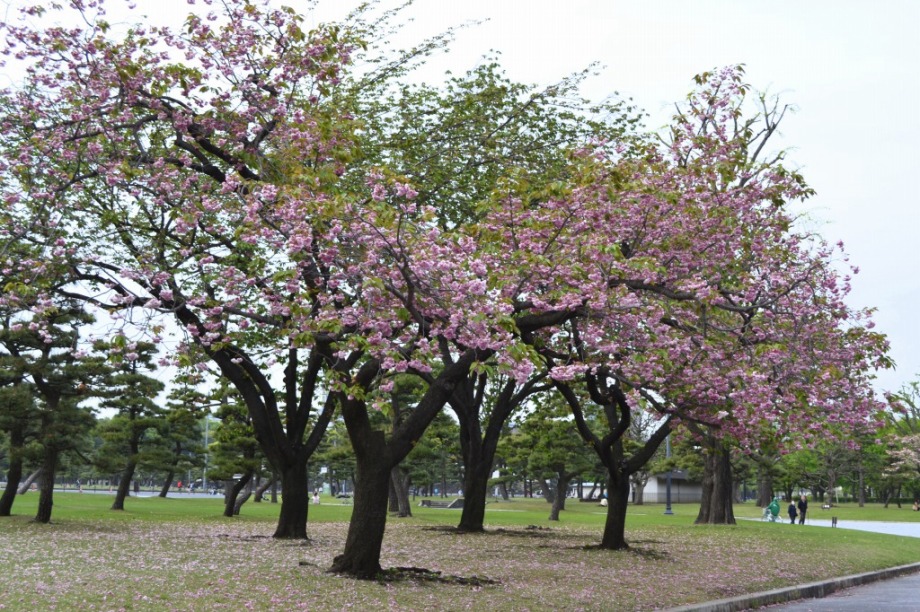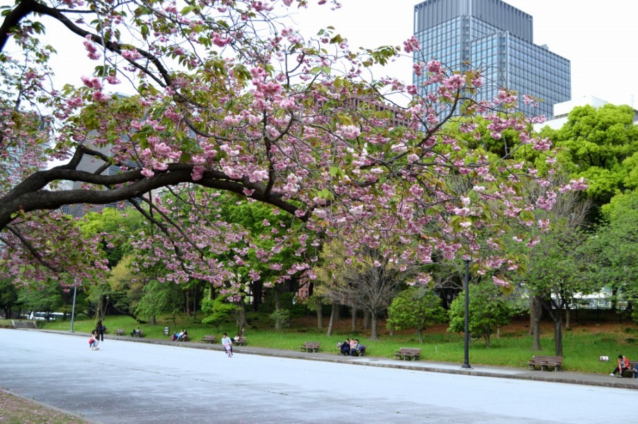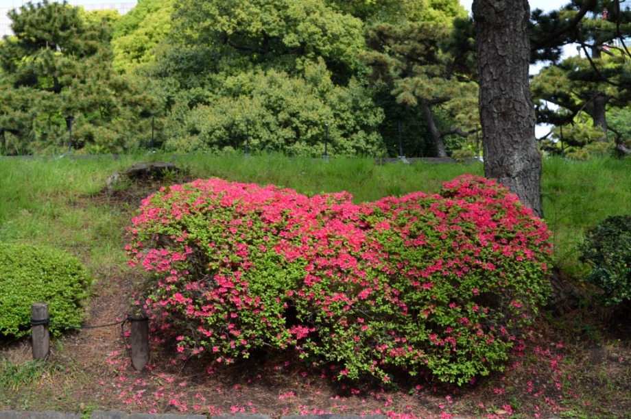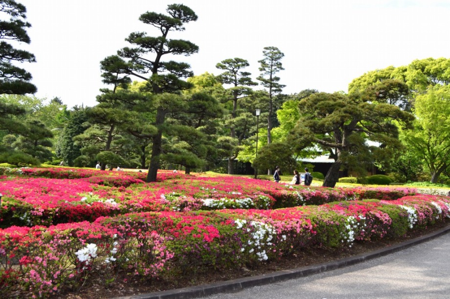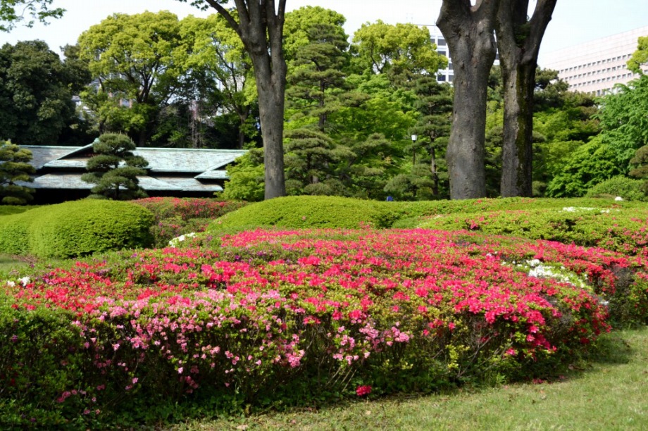 「一言」はじめて平川門から東御苑に入りました。入り口に八重桜が咲いていて、皇居の堀や橋と調和して綺麗でした。 ツツジも見頃で、色々な色の花が咲いていて綺麗でした。八重桜も満開でした。藤も咲き始めていました。 皇居前の広場には八重桜やハナミズキの花が咲いていました。