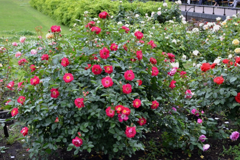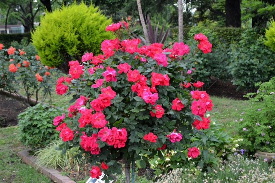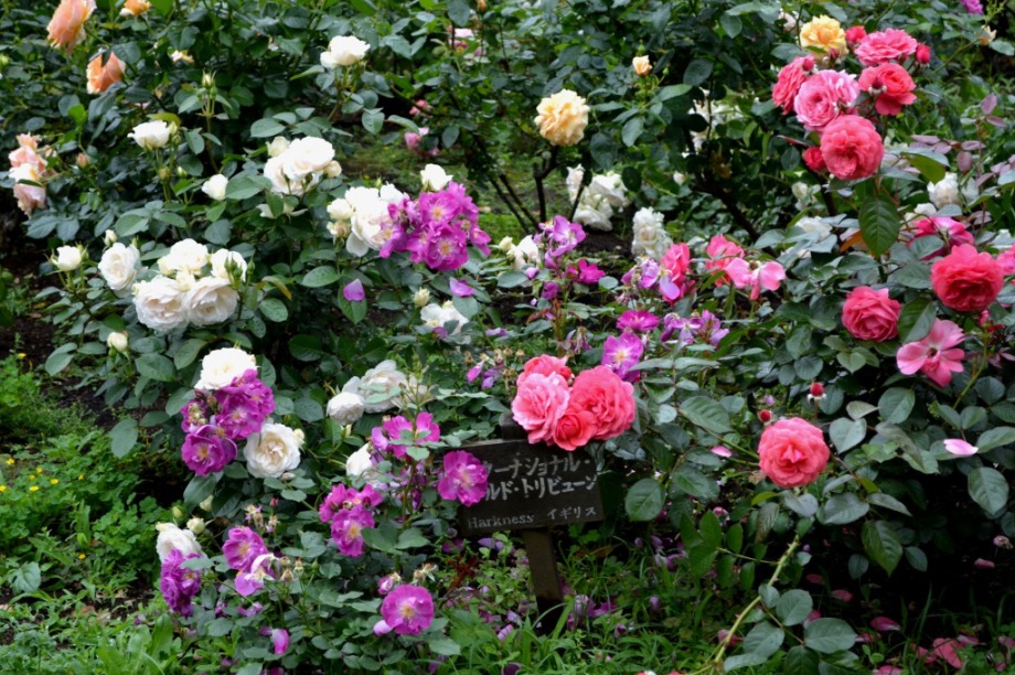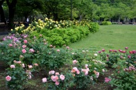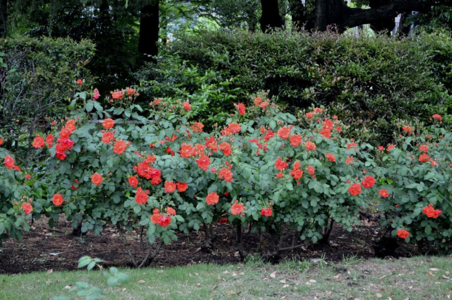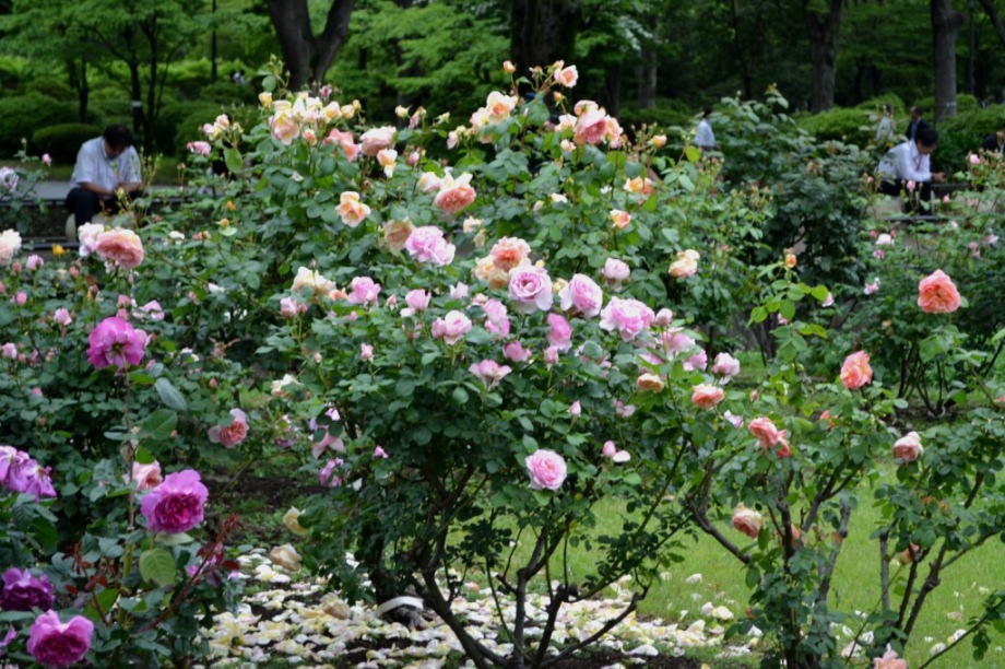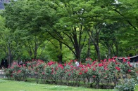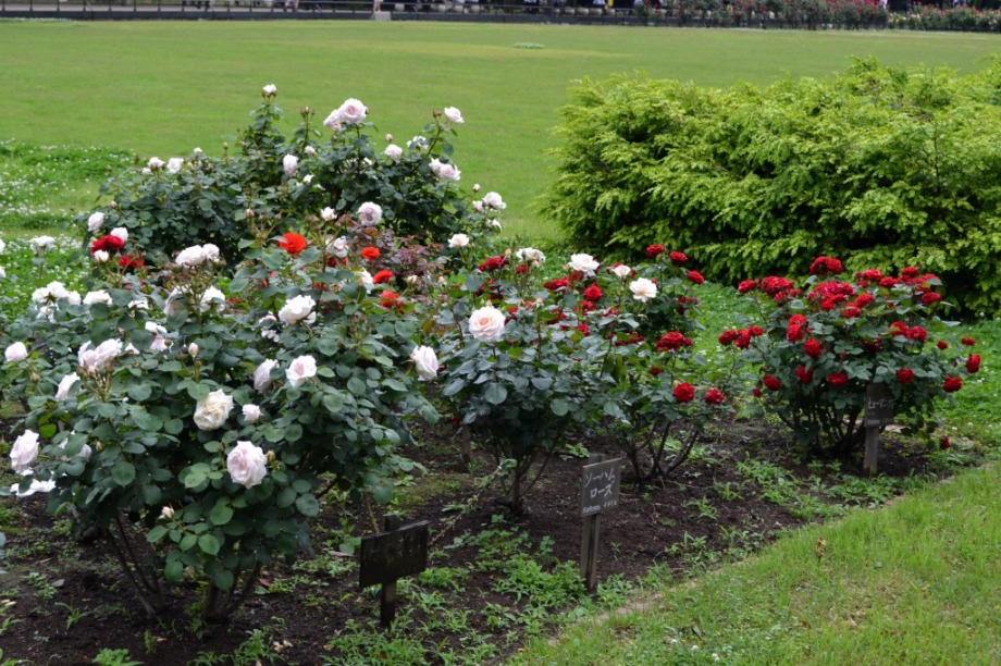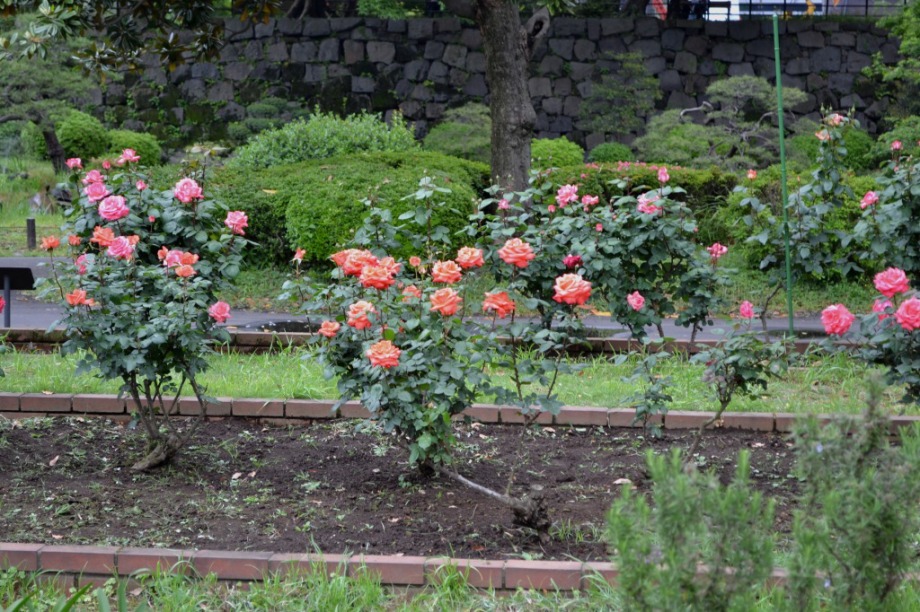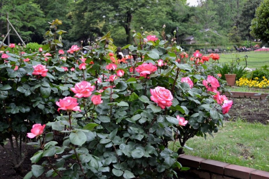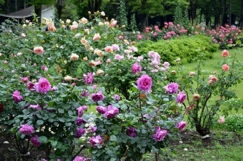 「一言」日比谷公園のバラが一斉に咲き出しました。2つの広場のバラはどちらも見頃です。今回はたくさんバラの花が咲いているので、 たくさん花が咲いている木や風景と一緒に撮影してみました。一つ一つのバラの花も綺麗ですが、今回は省略しました。