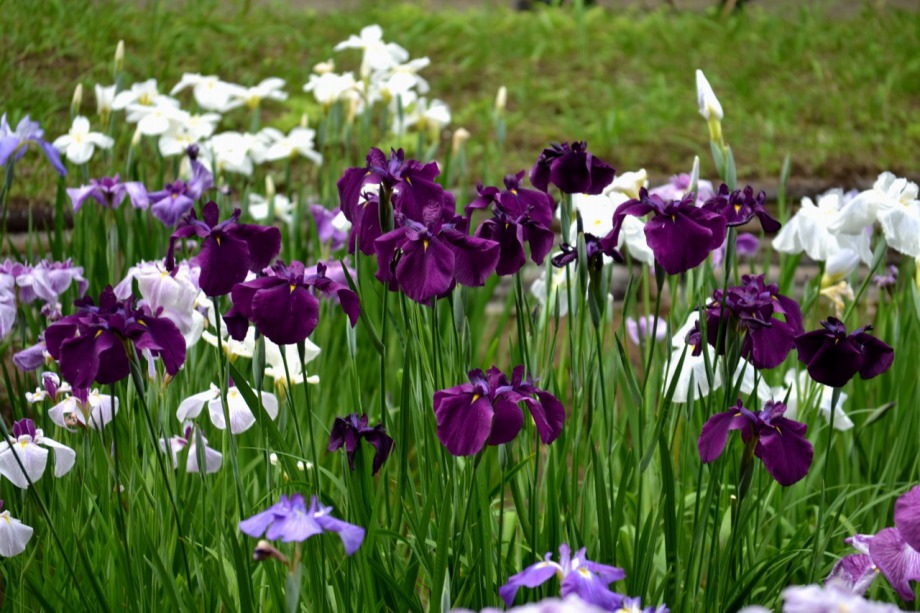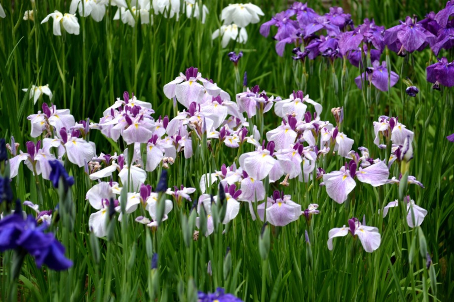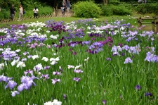 「一言」明治神宮の花菖蒲を見に行きました。時期的に少し早いのではないかと心配しましたが、見頃の花がたくさん咲いていました。 まだ、咲いていない株もありましたが、かなり多くの株がたくさん花をつけていて綺麗でした。色々な色や模様の花菖蒲が咲いて いて楽しく見ることが出来ました。入り口の近くの池には水連の花がたくさん咲いていました。