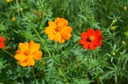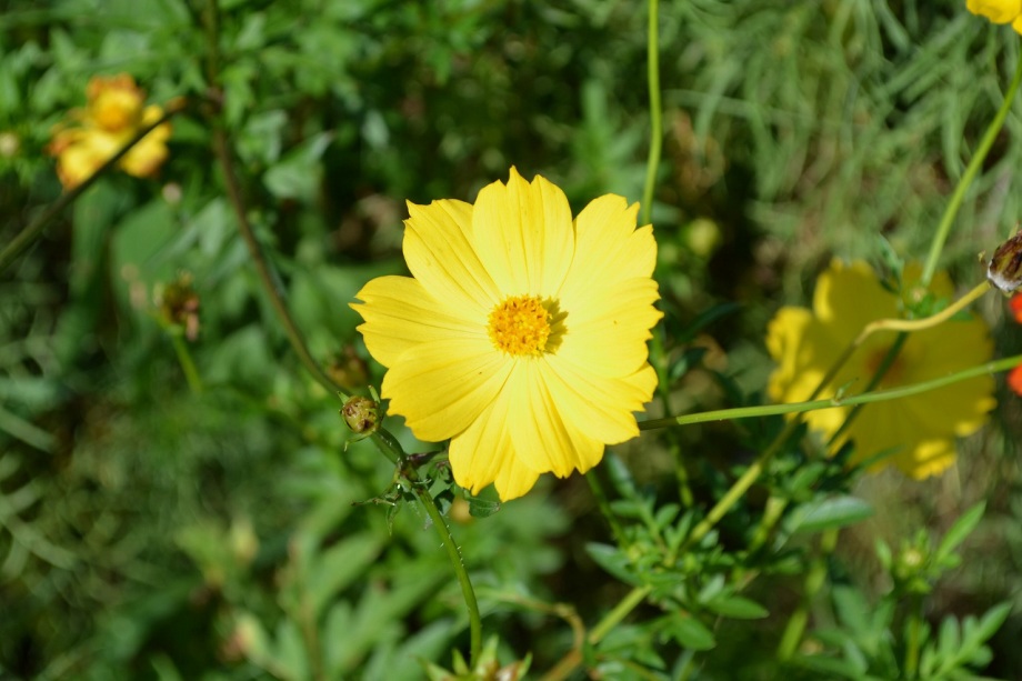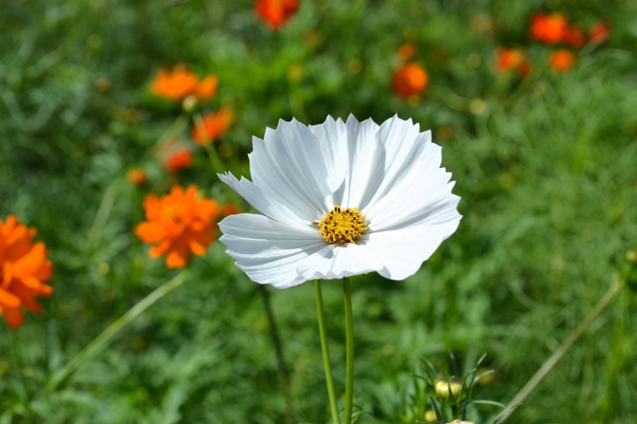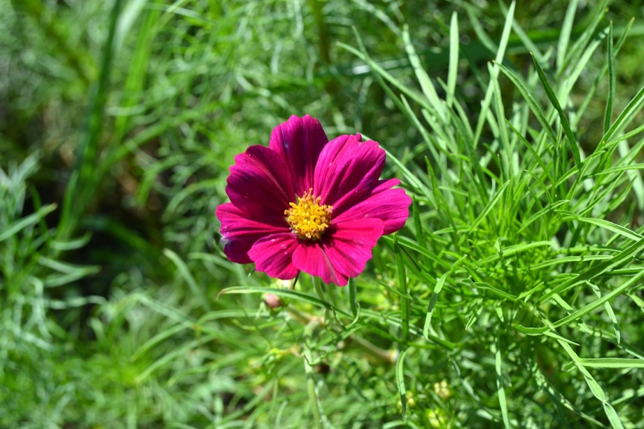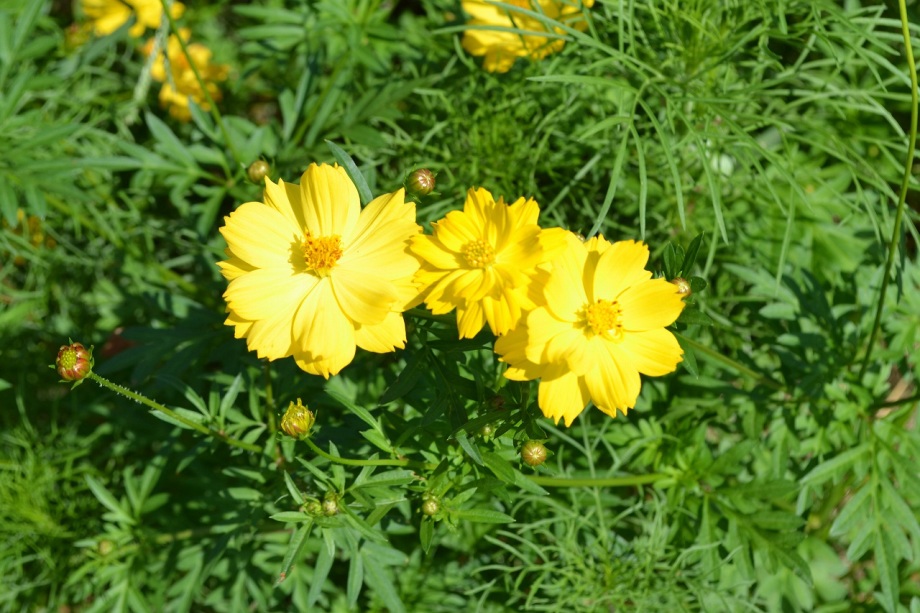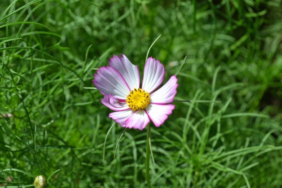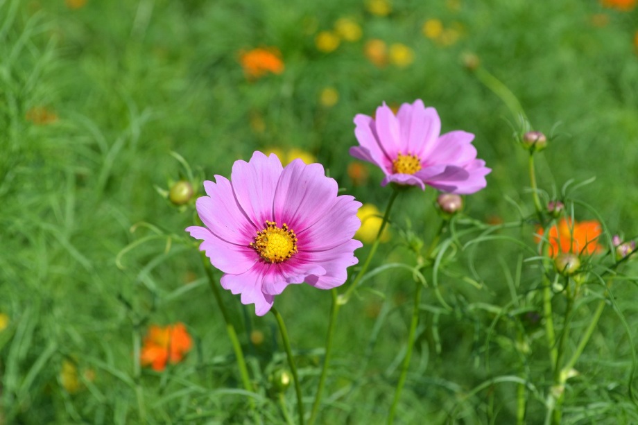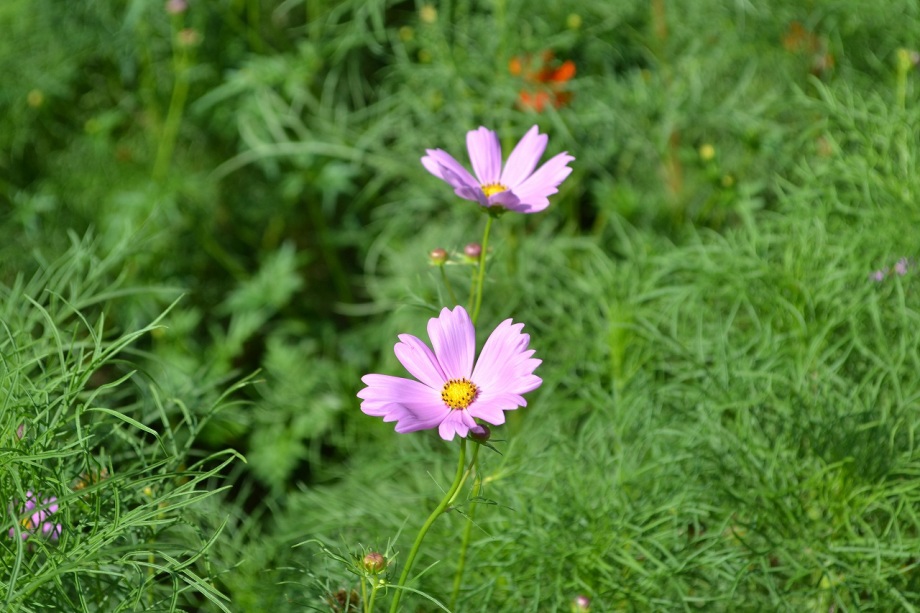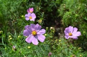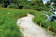 「一言」浜離宮にコスモスの写真を撮りに行きました。キバナコスモスもまだ咲いていましたが、コスモスも咲き始めていて、綺麗でした。 カシワバアジサイの花は緑色になっていました。ヤブミョウガの実がたくさんなっていました。オミナエシの黄色い花が綺麗です。