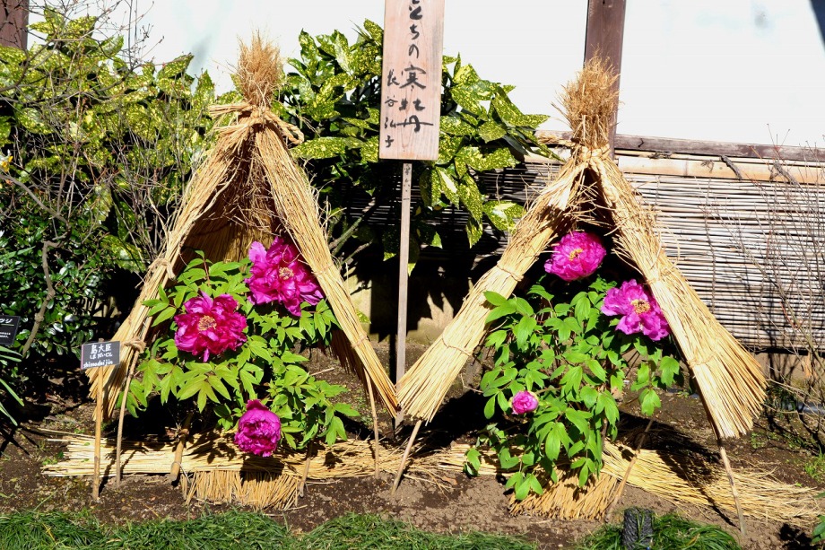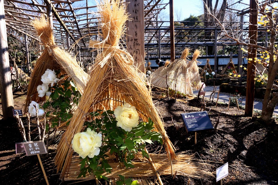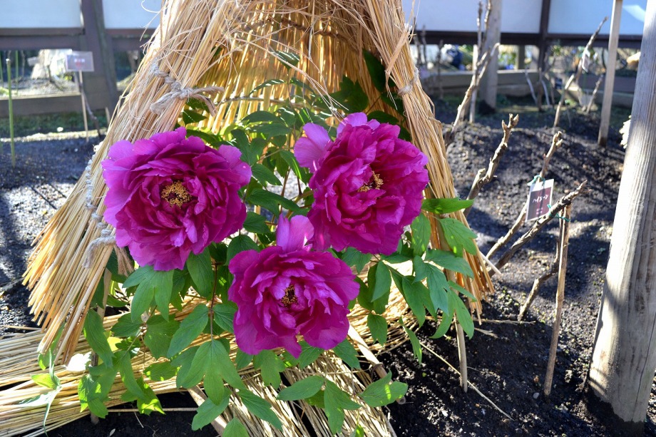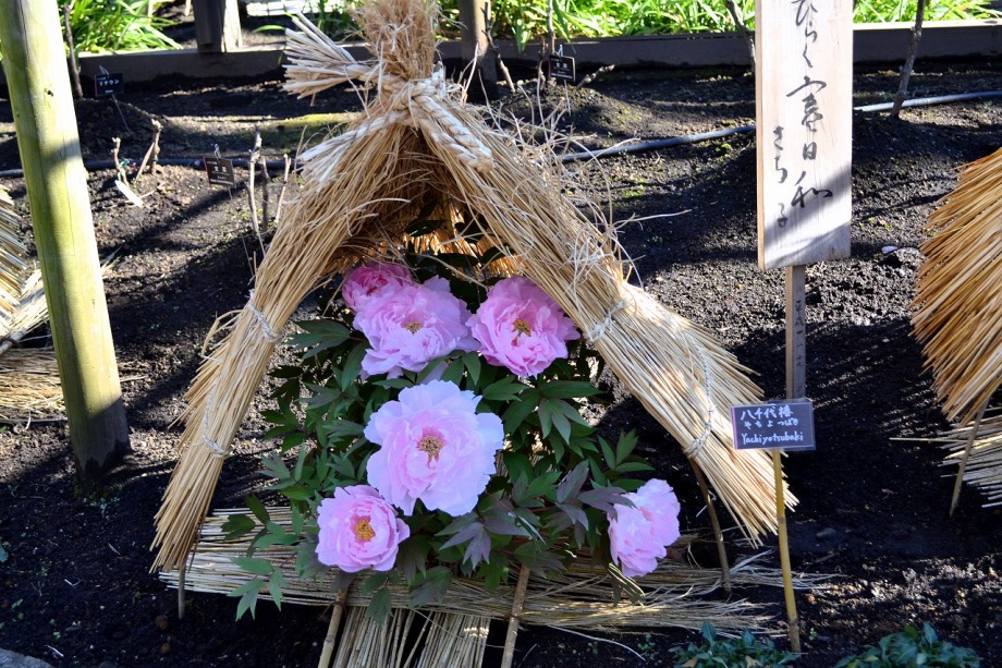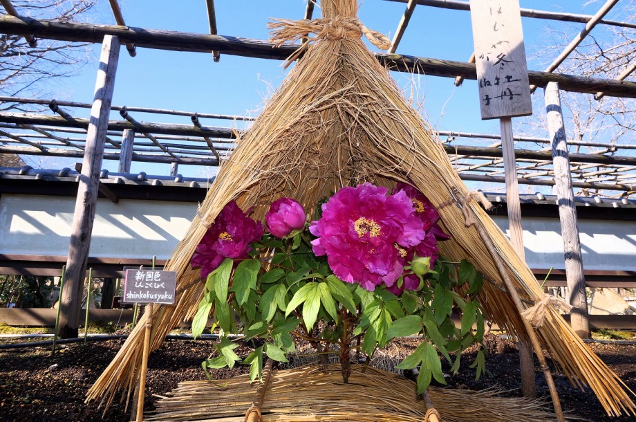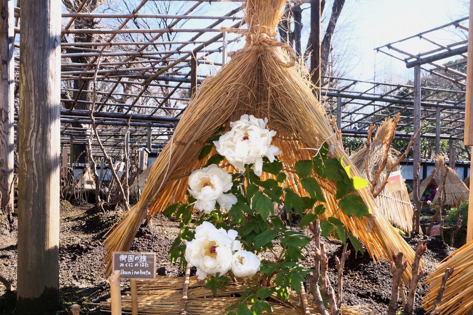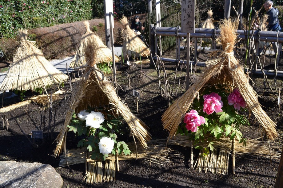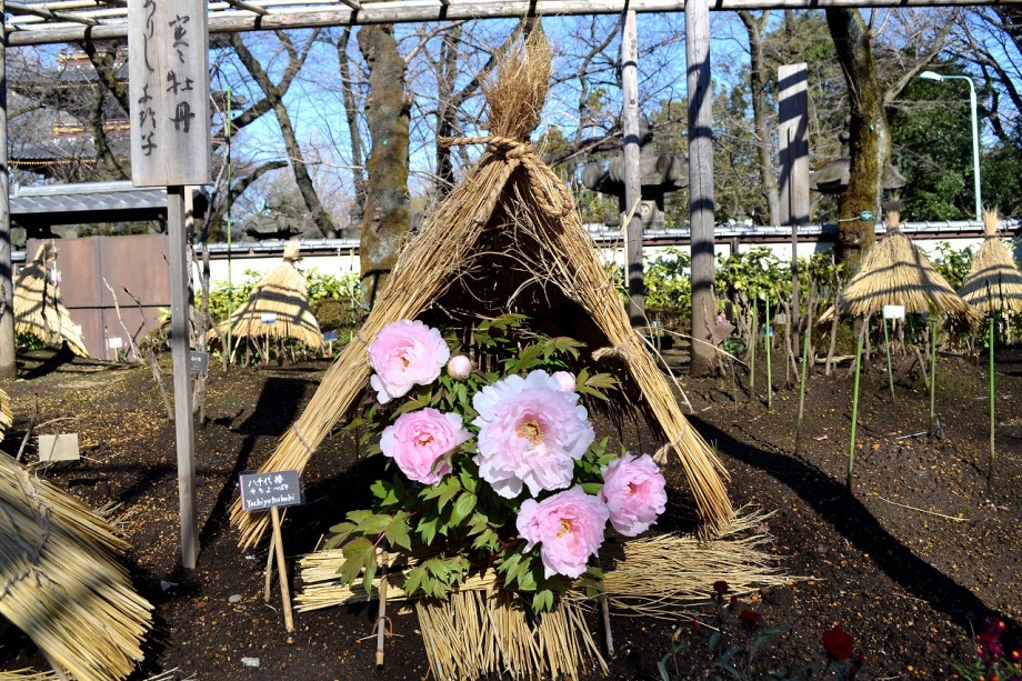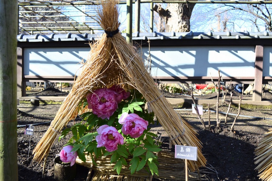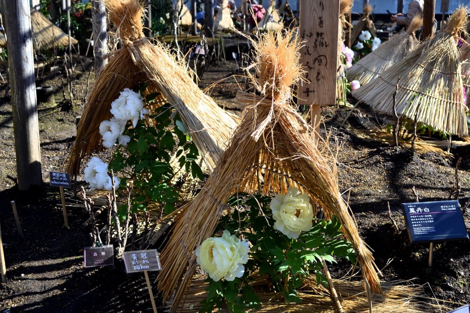 「一言」上野東照宮のぼたん苑に行き、こも被りのぼたんの写真を撮りました。寒ぼたんはこもを被っているので、花は日陰になることが多く、写真を 撮るのが難しい感じです。今年は寒ぼたんの花が多く、色々な形や色の花が咲いていましたので、こもを被せた状態の花を中心に撮りました。 まだ、1月上旬ですが、たくさん花が咲いていました。