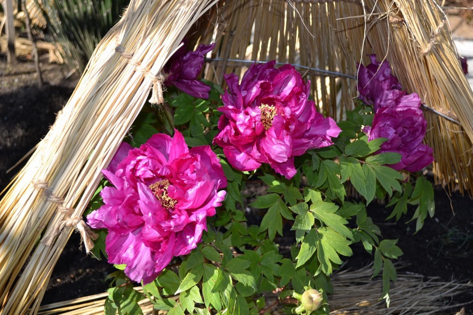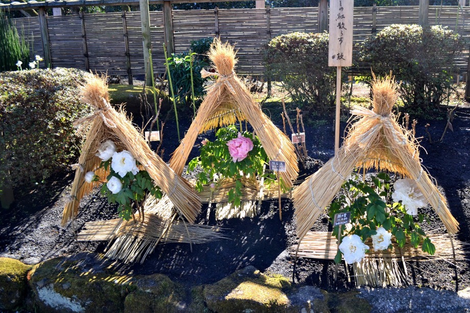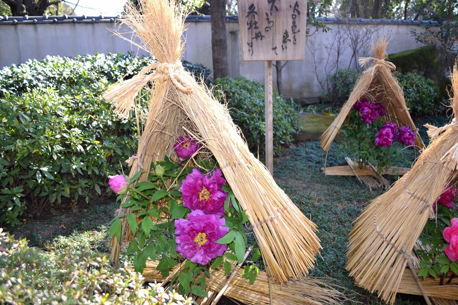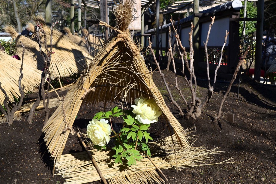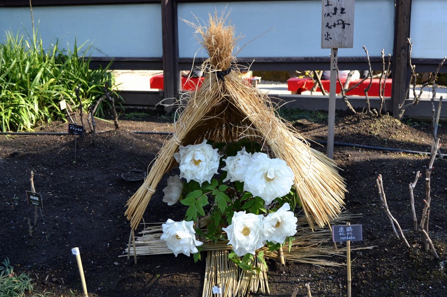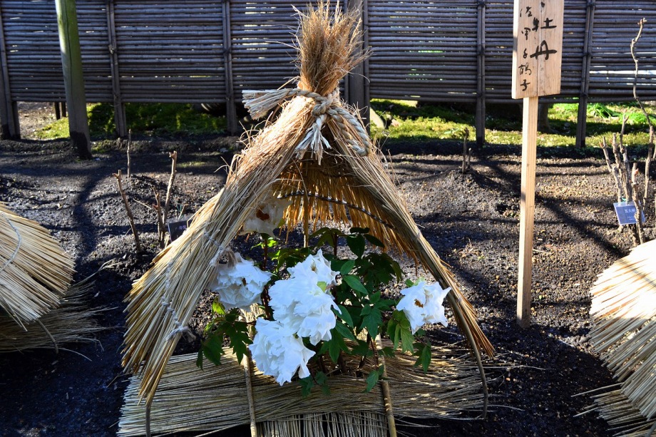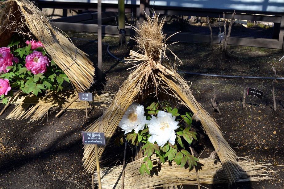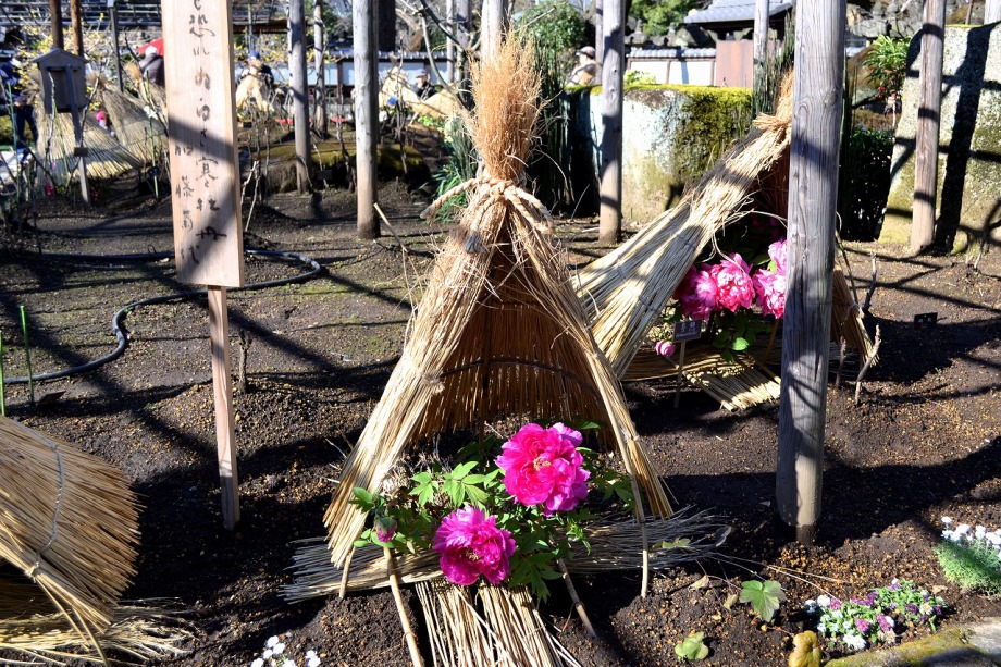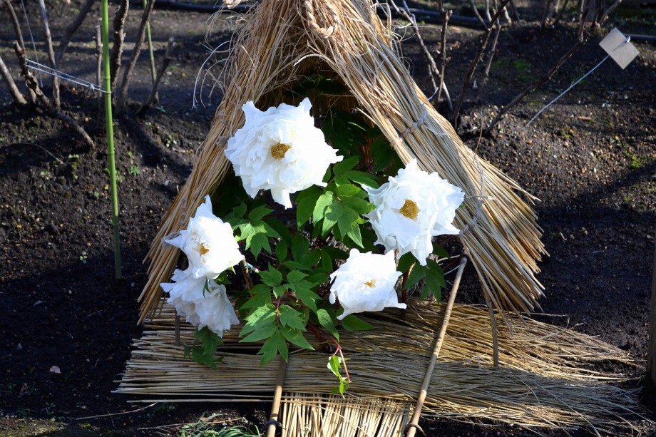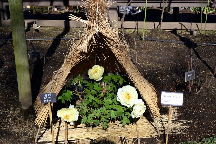 「一言」上野東照宮のぼたん苑に行き、こも被りのぼたんの写真を撮りました。寒ぼたんはこもを被っているので、花は日陰になることが多く、写真を 撮るのが難しい感じです。今年は寒ぼたんの花が多く、色々な形や色の花が咲いていましたので、こもを被せた状態の花を中心に撮りました。 まだ、1月上旬ですが、たくさん花が咲いていました。