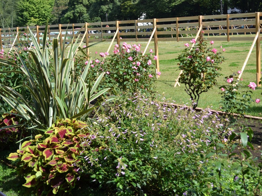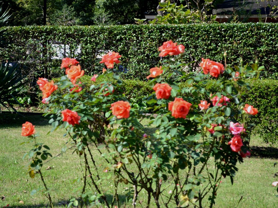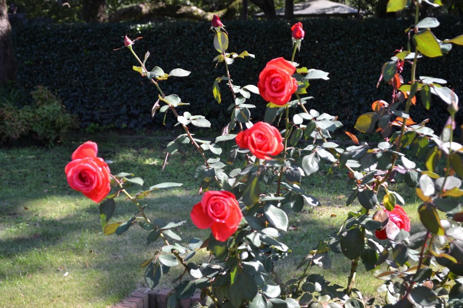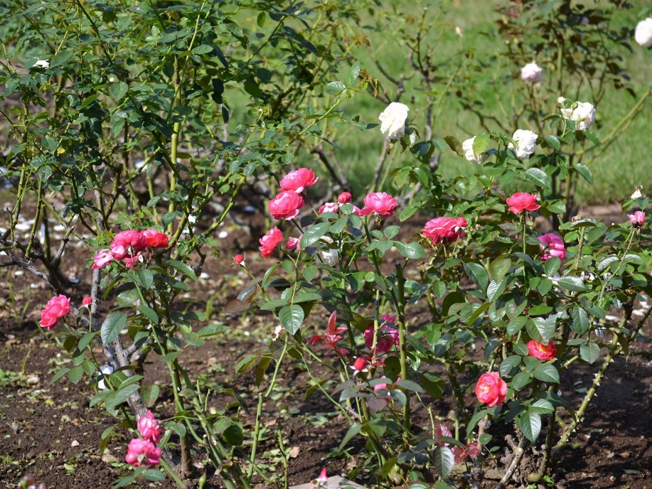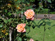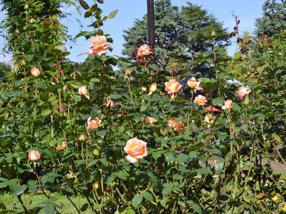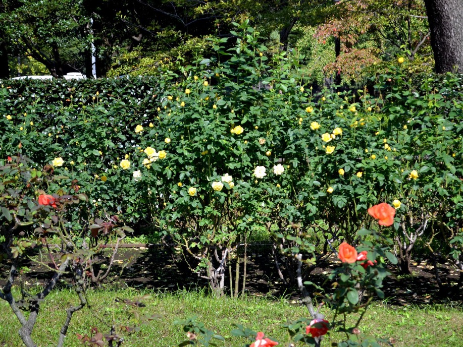 「一言」冷たい雨が続いたためか、バラの花に勢いが欠ける感じがしましたが、たくさん花が咲いていました。非常に綺麗な色の花も ありました。公園には色々な花が咲いていて、多くの人が休んでいました。広い方の庭園は週末のフェスティバルのために、 園芸の業者の人がたくさん入って準備をしていましたので、たくさん写真を撮るのは控えました。