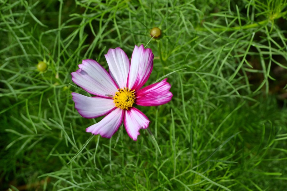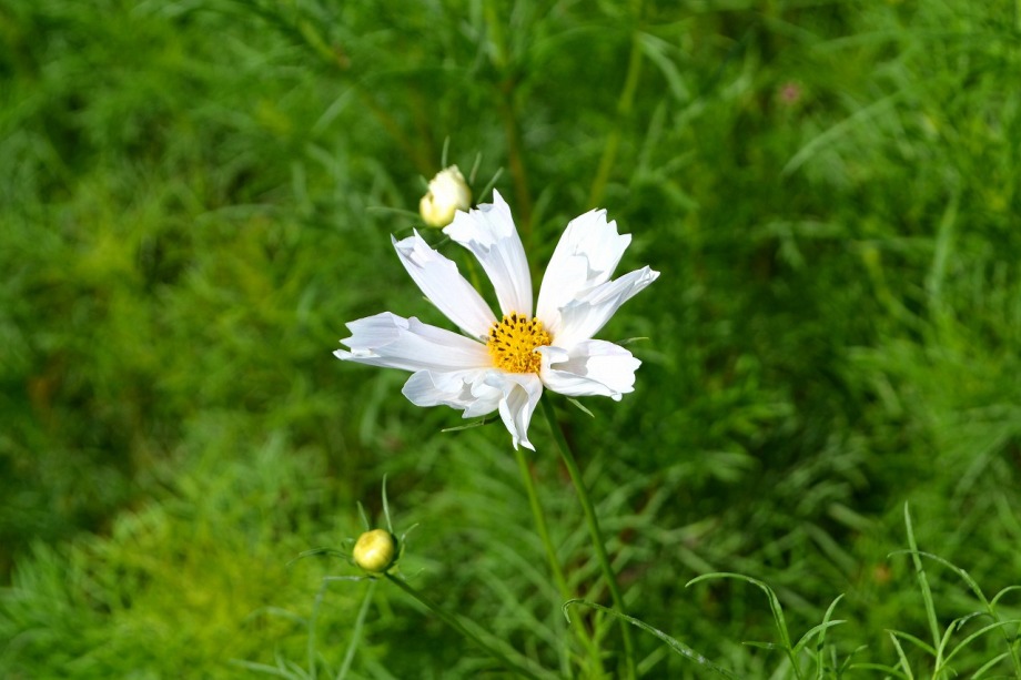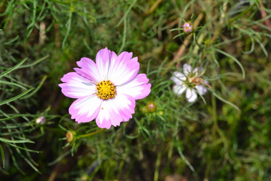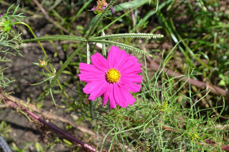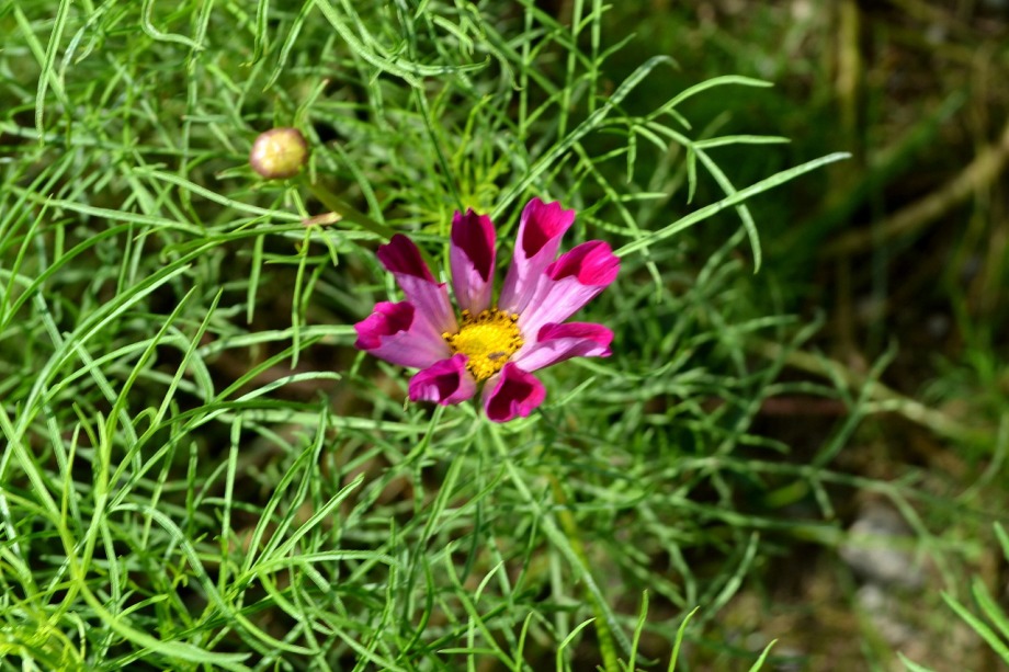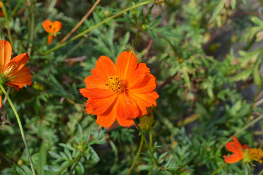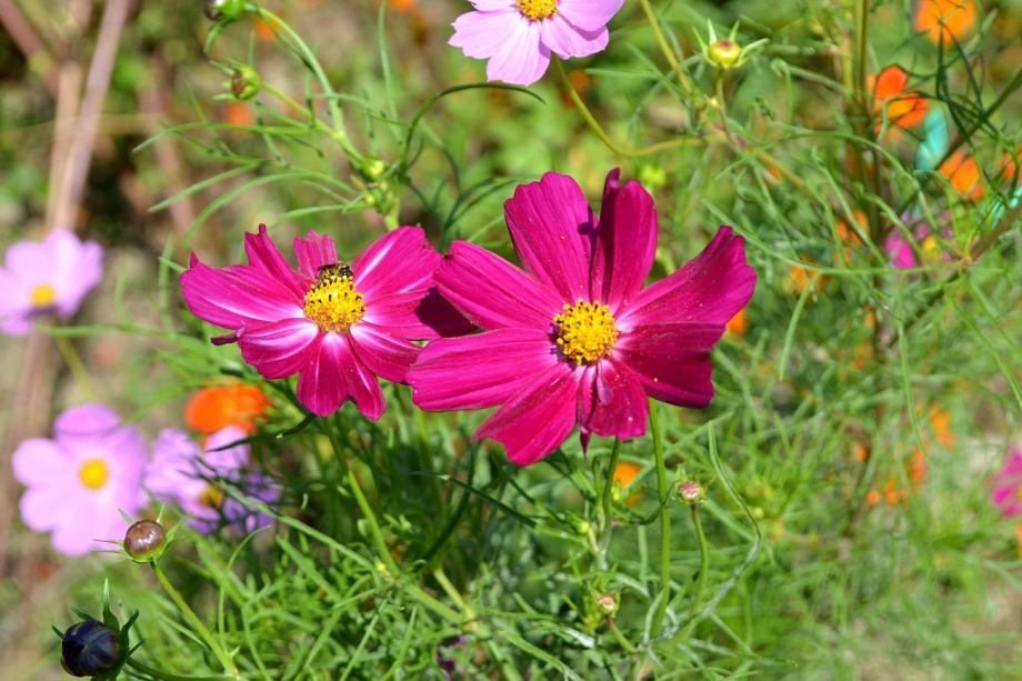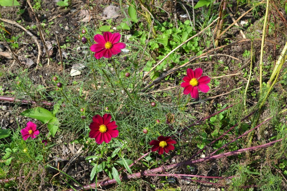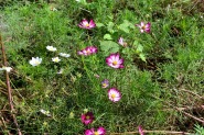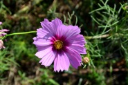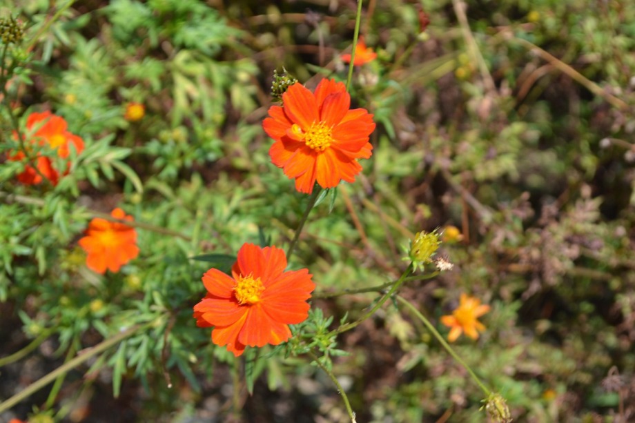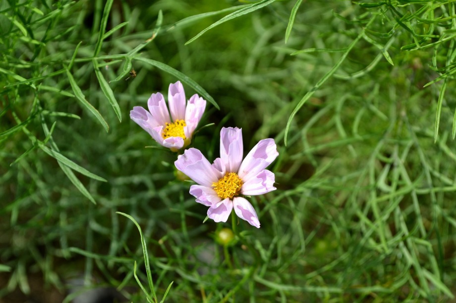 「一言」浜離宮のコスモスが咲き出しました。キバナコスモスもまだたくさん咲いていました。黄色いキバナコスモスも 咲いていました。コスモスはこれから咲き出すという状況ですが、キバナコスモスと可憐なコスモスが一緒に 咲いているのが見られます。公園の奥には大きな萩の木に花が盛りと咲いていました。