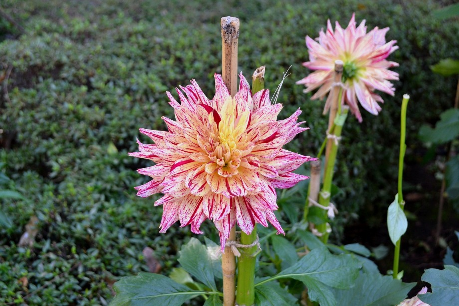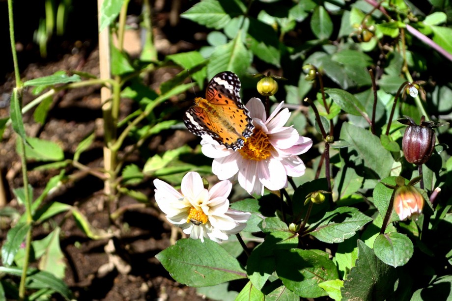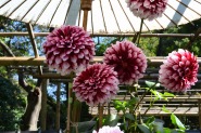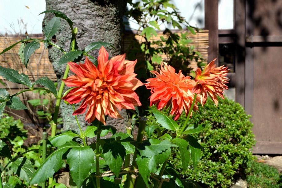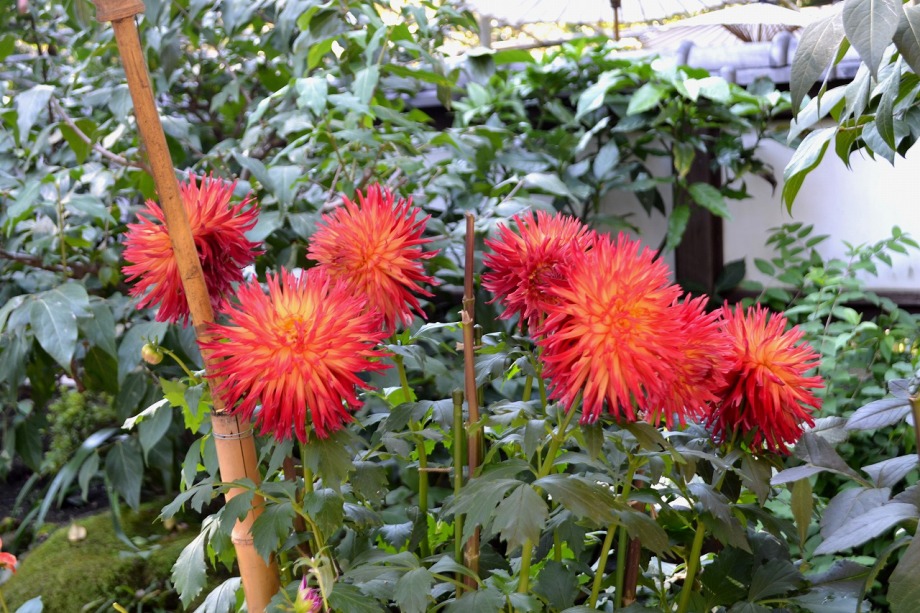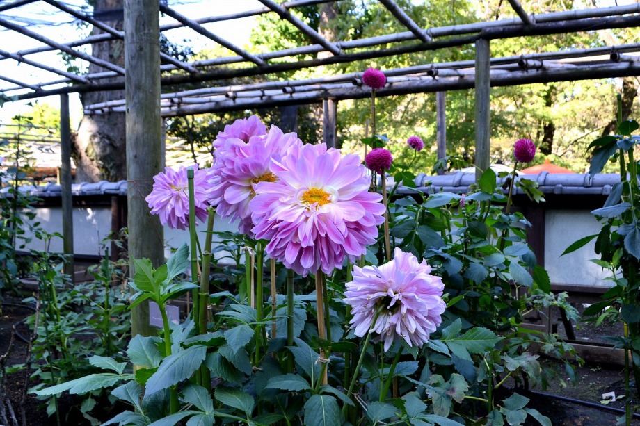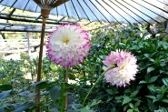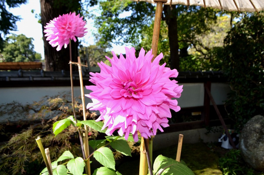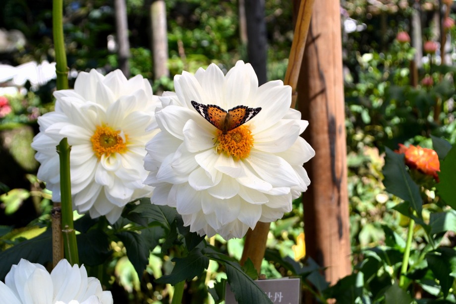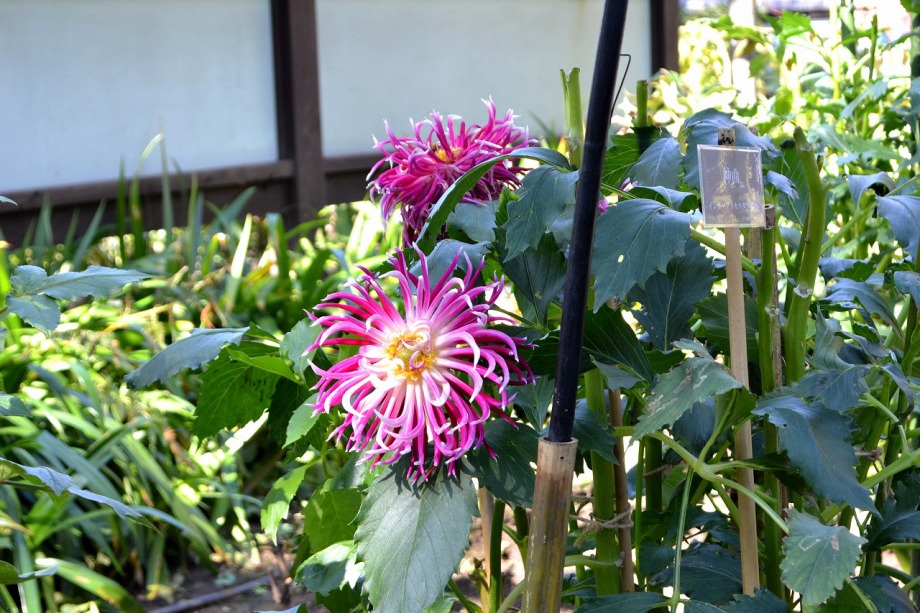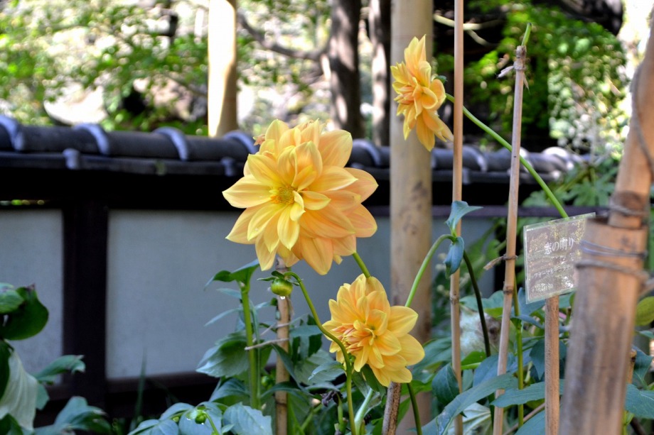 「一言」上野東照宮のぼたん苑で開催されているダリア展を見に行きました。綺麗なダリアの花がたくさん咲いていて綺麗でした。 牡丹の時と同じようにダリアの花には傘をかけていて、面白い雰囲気でした。傘の下で咲いているダリアの花の写真を たくさん撮りましたので、これらの花を中心にまとめました。ダリアの花に蝶が止まって蜜を吸っていました。