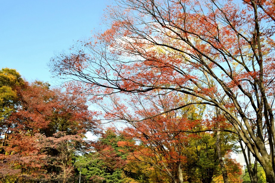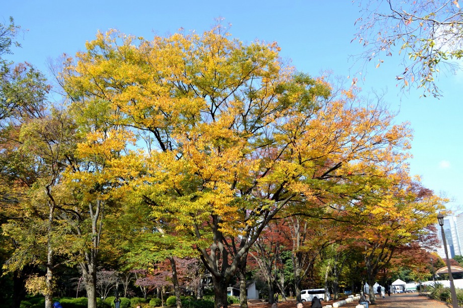 「一言」日比谷公園のイチョウを見に行きましたが、まだ、イチョウは黄葉が始まった段階と言う感じでした。しかし、大きなケヤキが紅葉し 始めていました。色々な木の葉は色が変わっており、秋の風景という感じでした。池のまわりのもみじは紅葉し始めていました。 園内では菊の展示会は行われていましたが、2日にはなかった審査の結果が菊に付けられていました。バラはツルバラがたくさん 咲いていました。