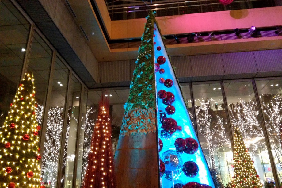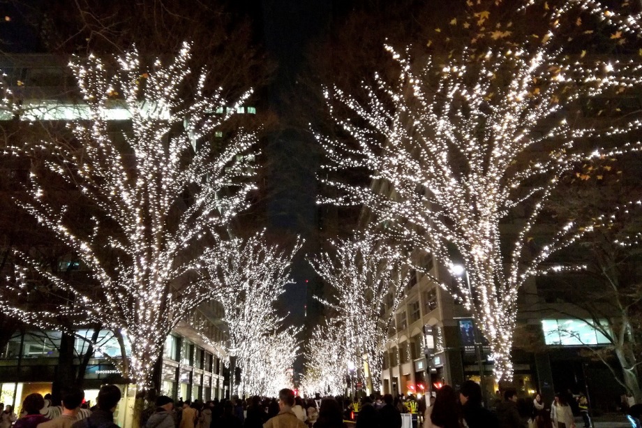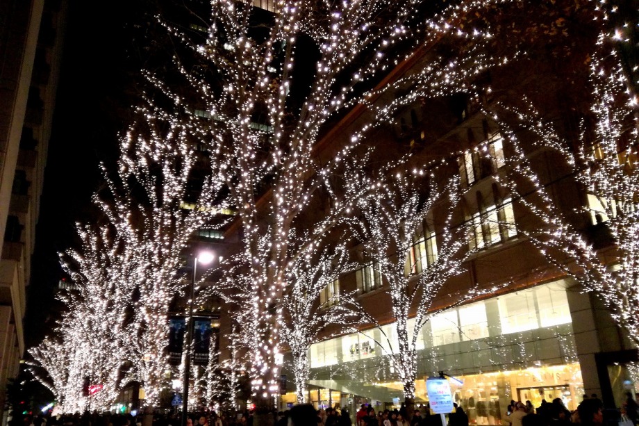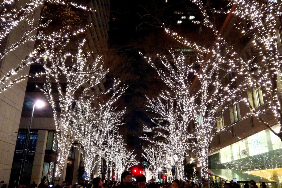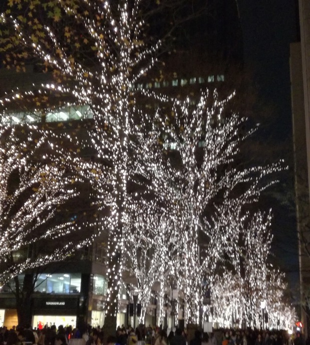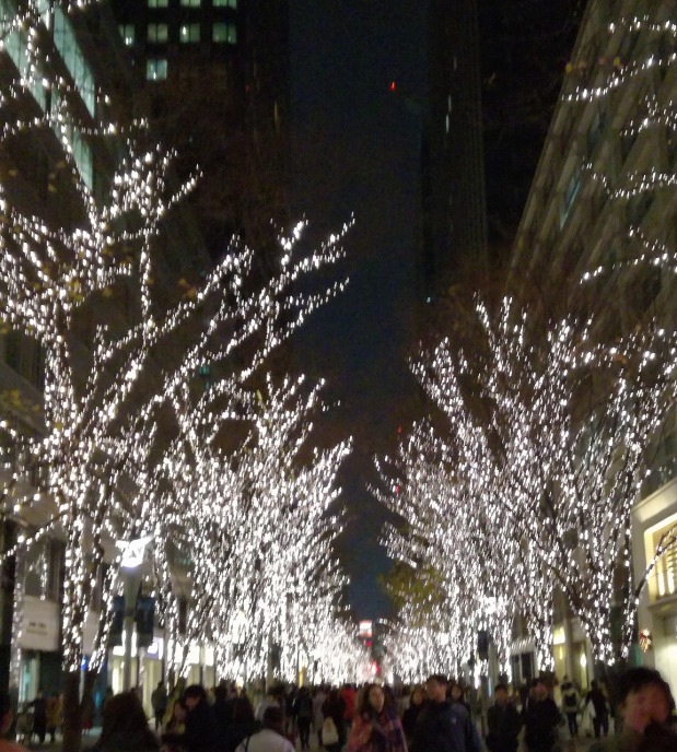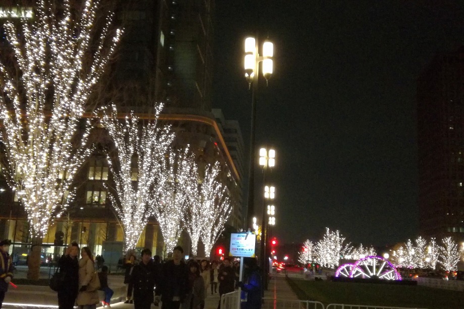 「一言」今日はクリスマスイブなので、律子さんと東京駅辺りのイルミネーションを見に行きました。キッテのイルミネーションは 大きなツリーで色々な色に変わり,迫力があり、面白い感じです。丸ビルのイルミネーションは作りは豪華ですが、ショウの 時間が短く物足りない感じでした。丸ノ内の通りにはいつもと同じように長い道にイルミネーションが飾られていました。 有楽町の駅前もディズニーのキャラクターが諄々と映し出され面白い感じでした。