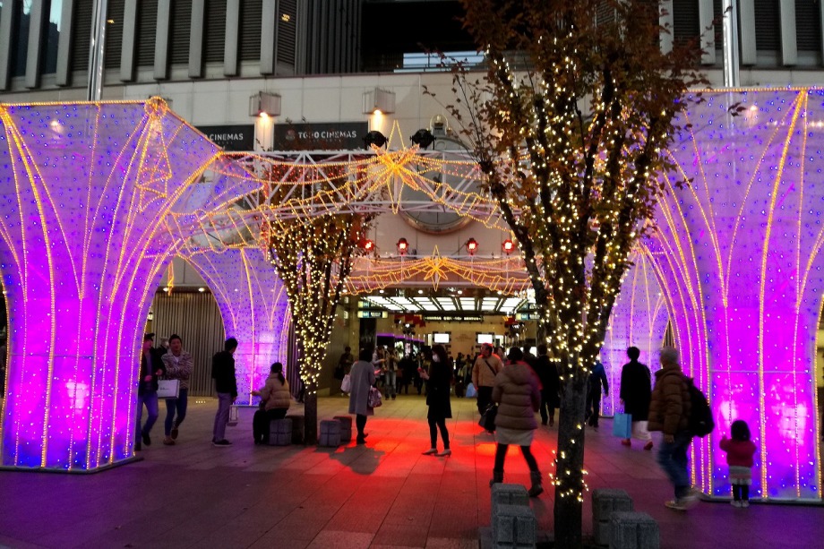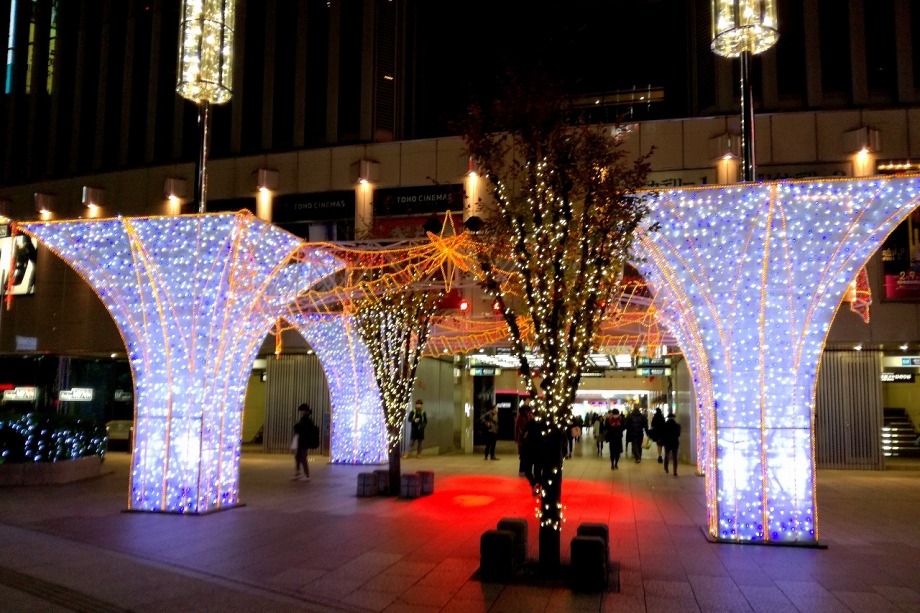 色々なお店のイルミネーションや歩道のイルミネーションがあり、たくさんの人が写真を撮っていました。