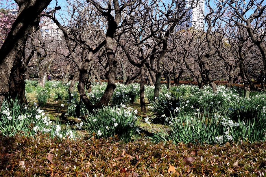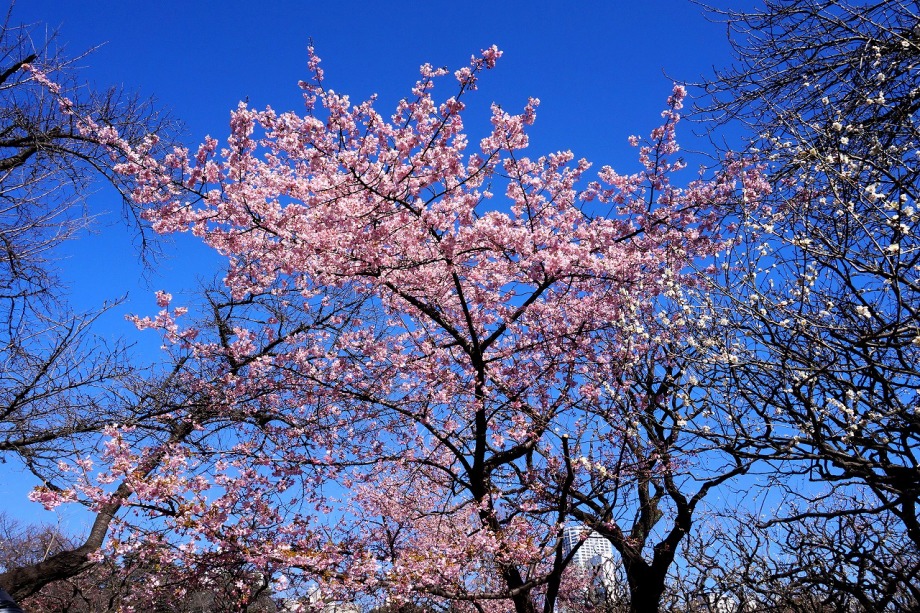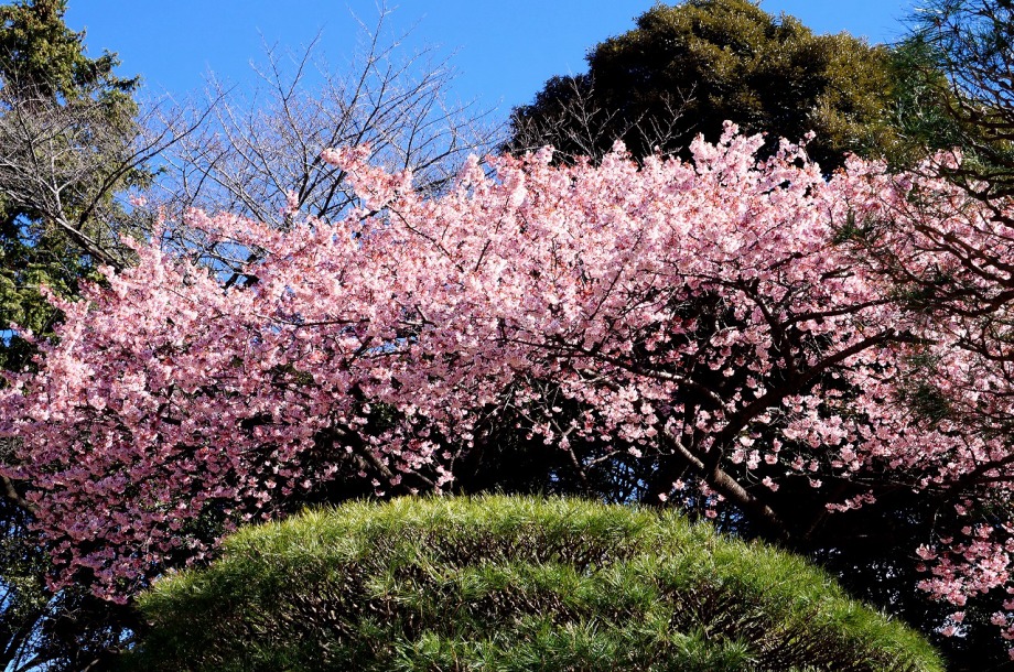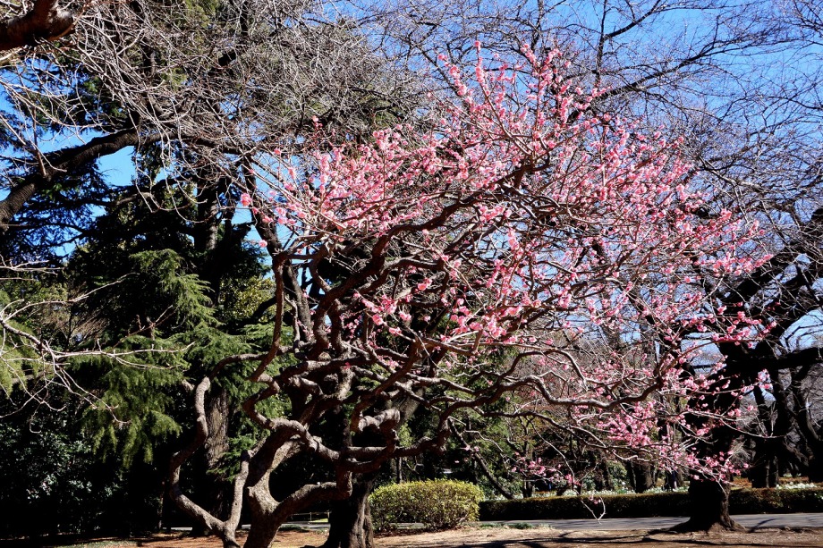 「一言」今日は新宿御苑に梅の花を見に行きました。梅の花はまだこれからという感じでしたが、和風庭園の梅は見頃でした。しかし、寒桜は 見頃で、大きな木は華やかでした、河津桜やロウバイも咲いていて、楽しく散策することは出来ました。水仙も見頃でした。