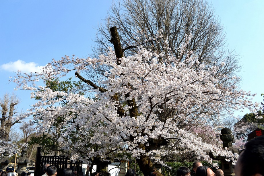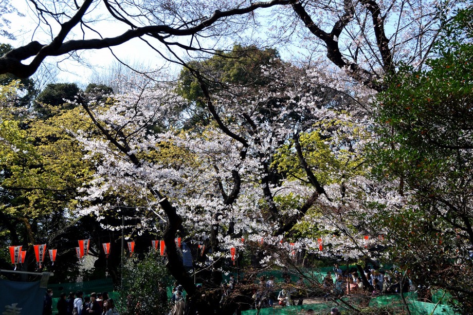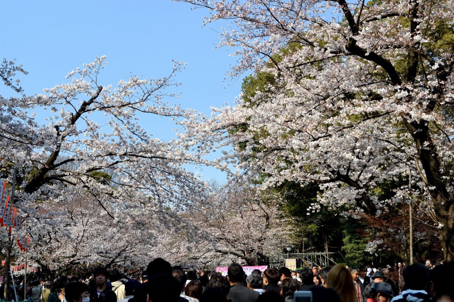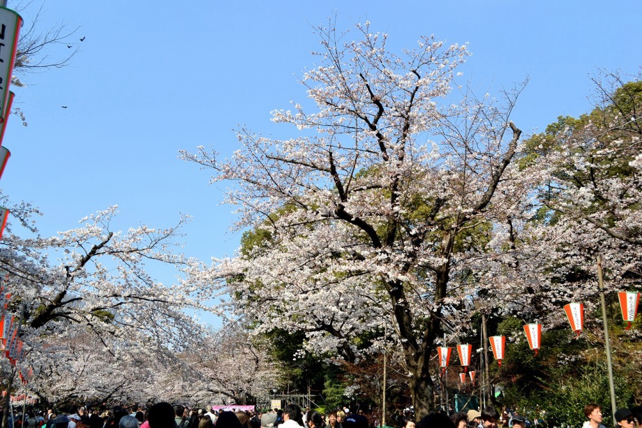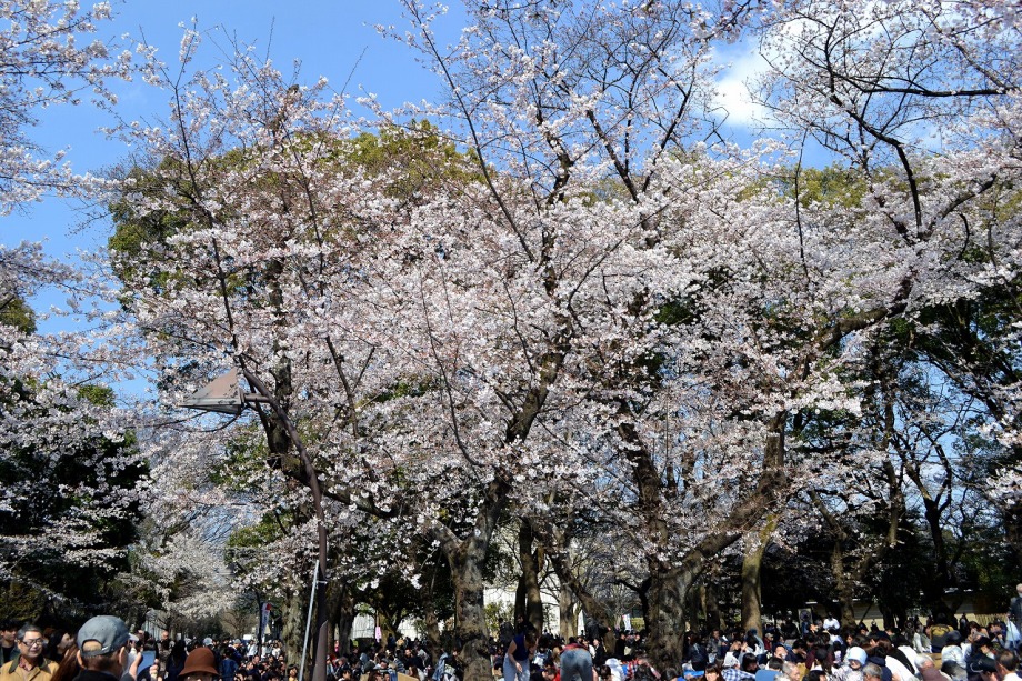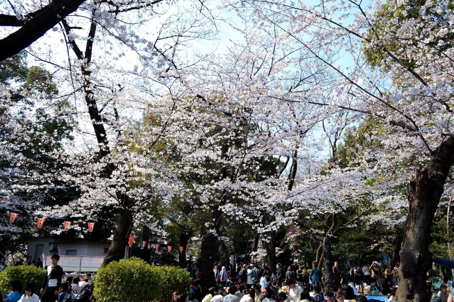 「一言」上野公園にきましたが、非常にたくさんの人が来ていました。入り口の近くの大きな桜の木の下ではたくさんの人が花見をしていました。 色々な種類の桜がありましたが、どれも満開で綺麗でした。東照宮の奥と出口のしだれ桜は大きくて綺麗でした。