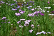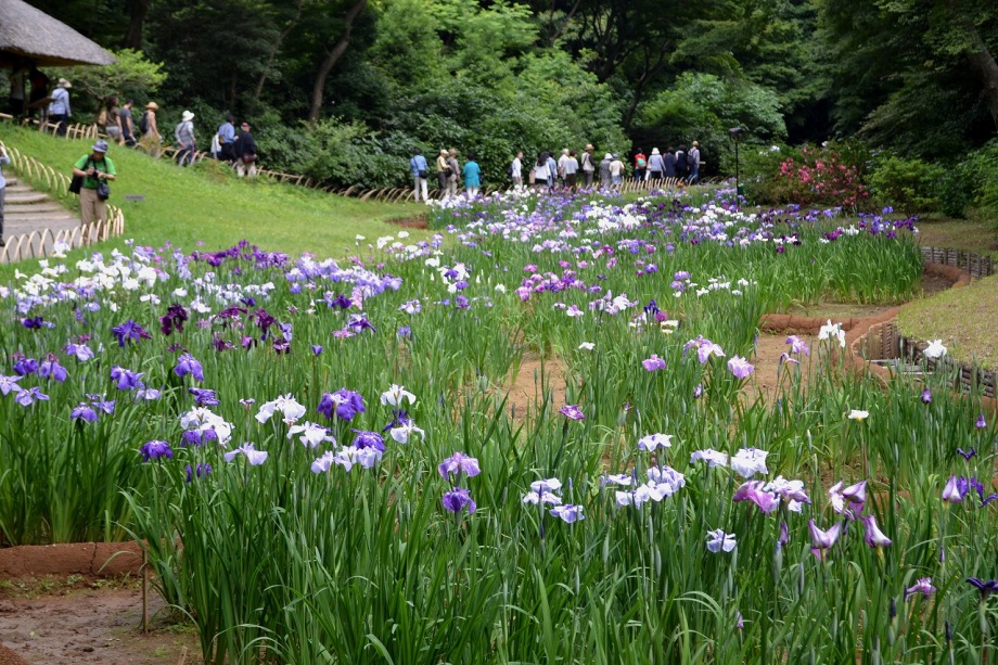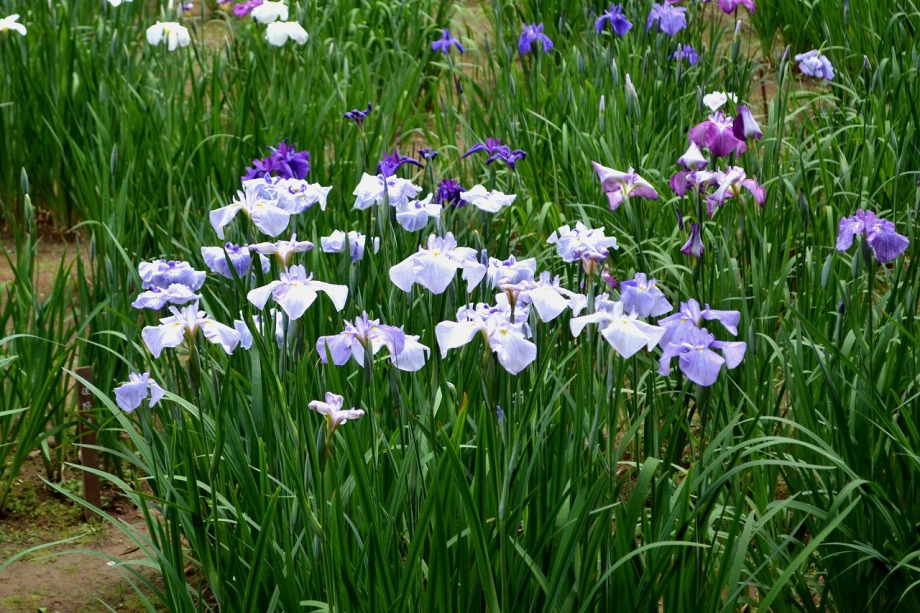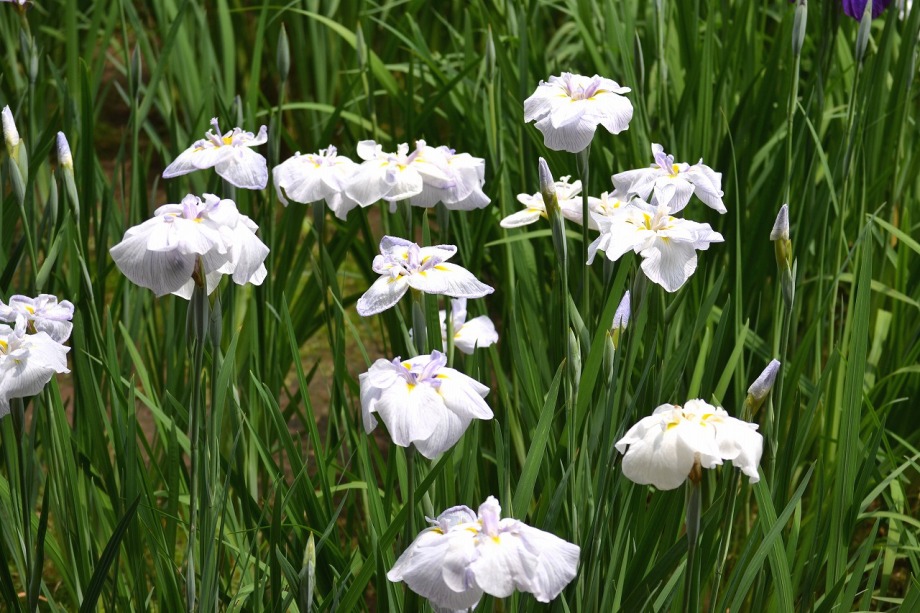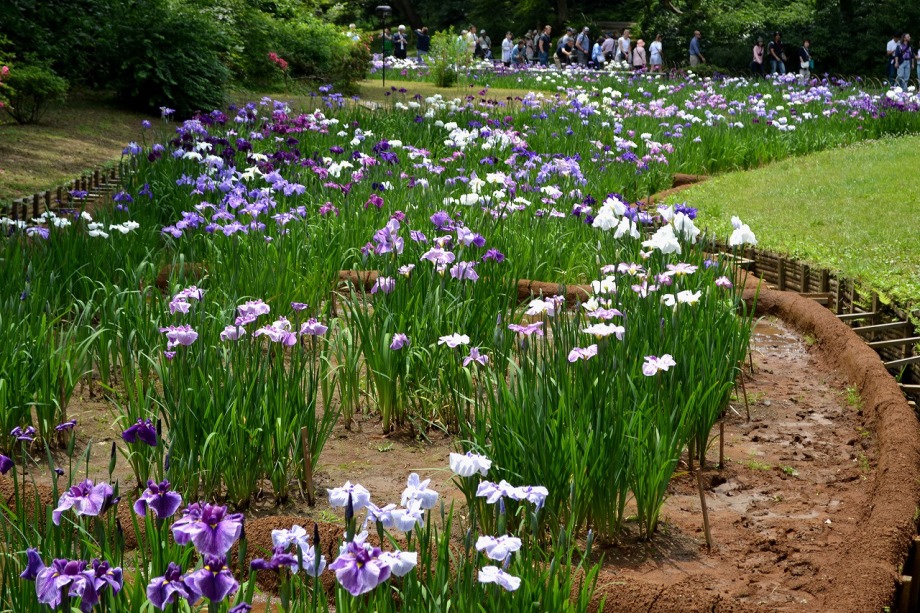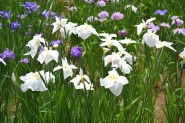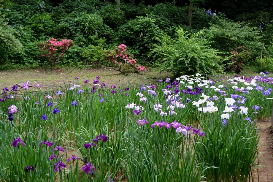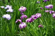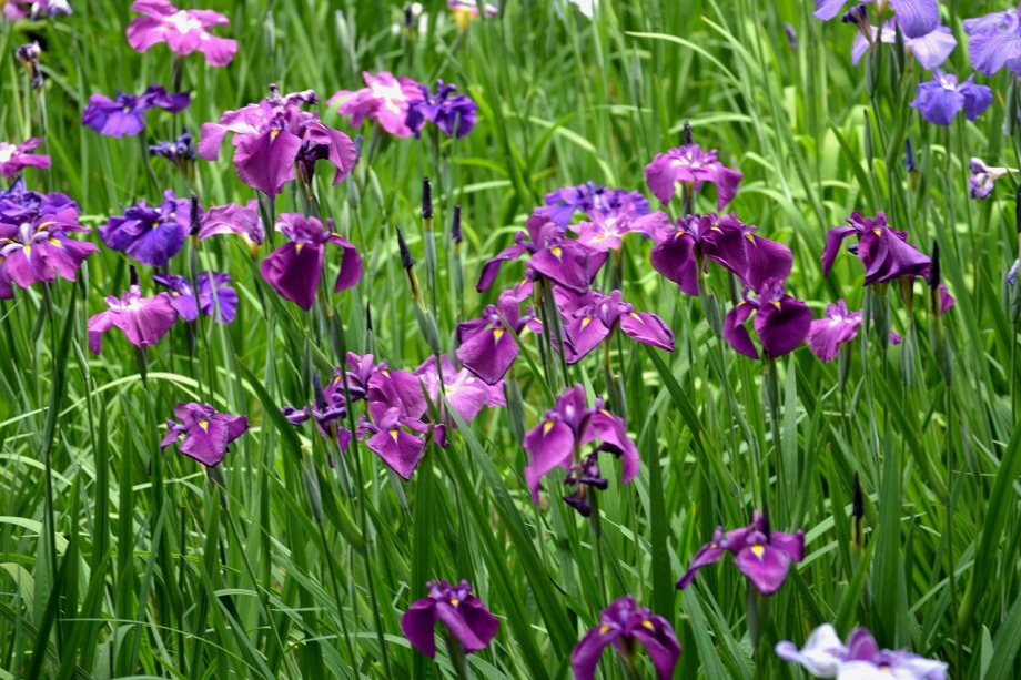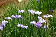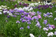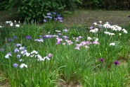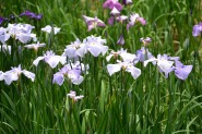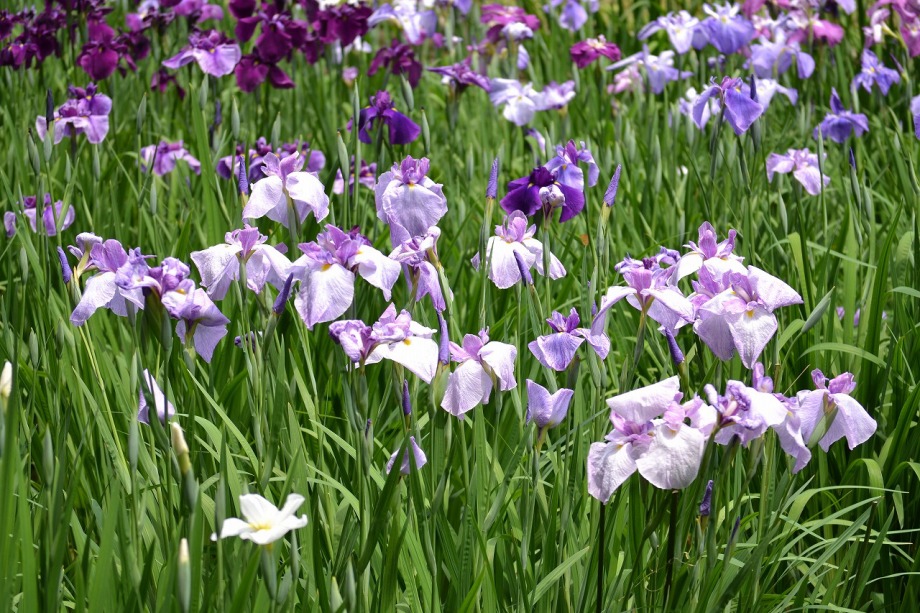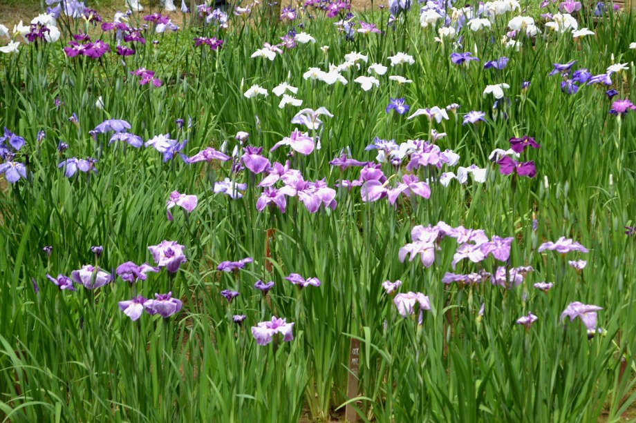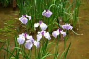 「一言」明治神宮の御苑に花菖蒲を見に行きました。入り口の近くの池には水連がいっぱい咲いていました。白い花が多い感じですが、 ピンク色の花も咲いていて綺麗でした。花菖蒲は今が見頃という感じで、非常にたくさん咲いていました。日差しが強いためか、 少ししおりかけている花もありましたが、色々な種類の花が咲いていて華やかでした。