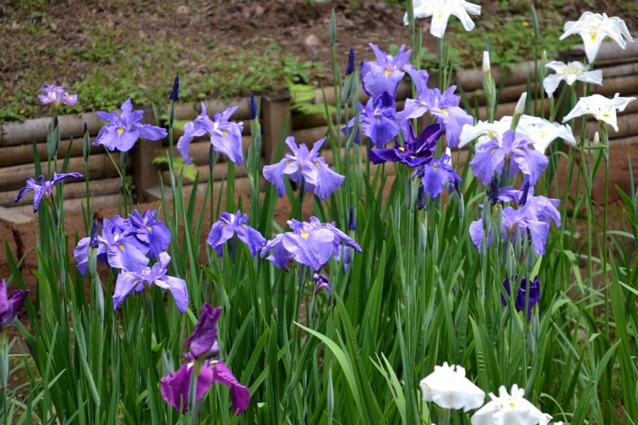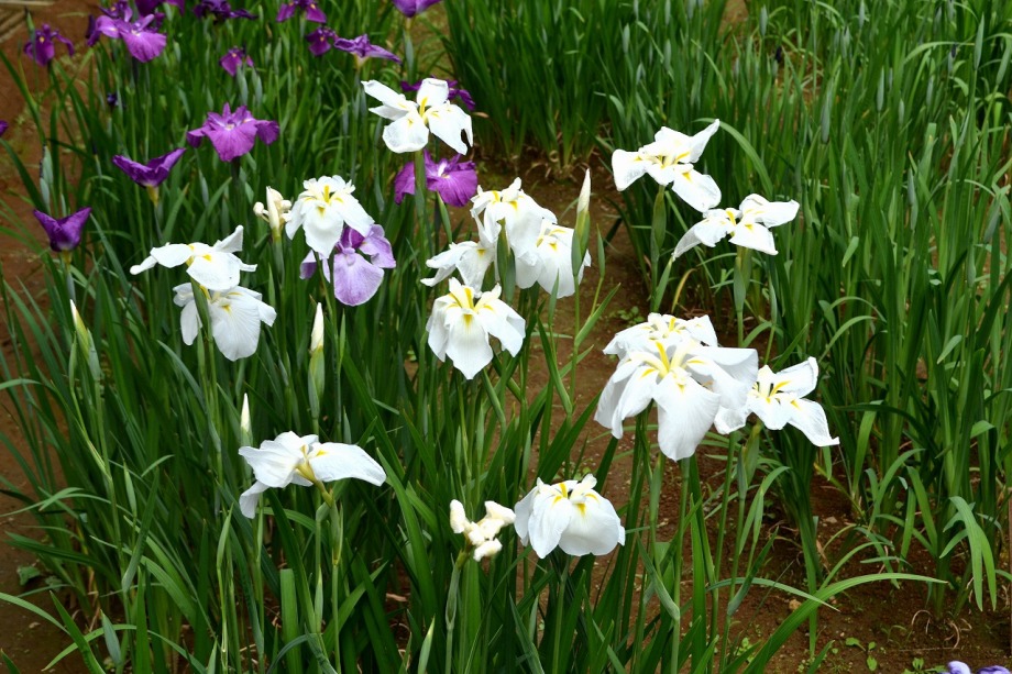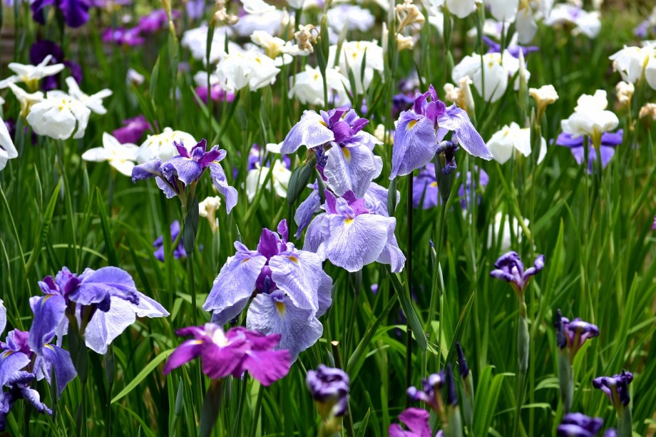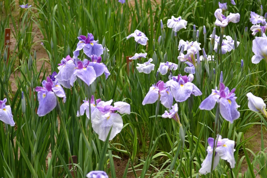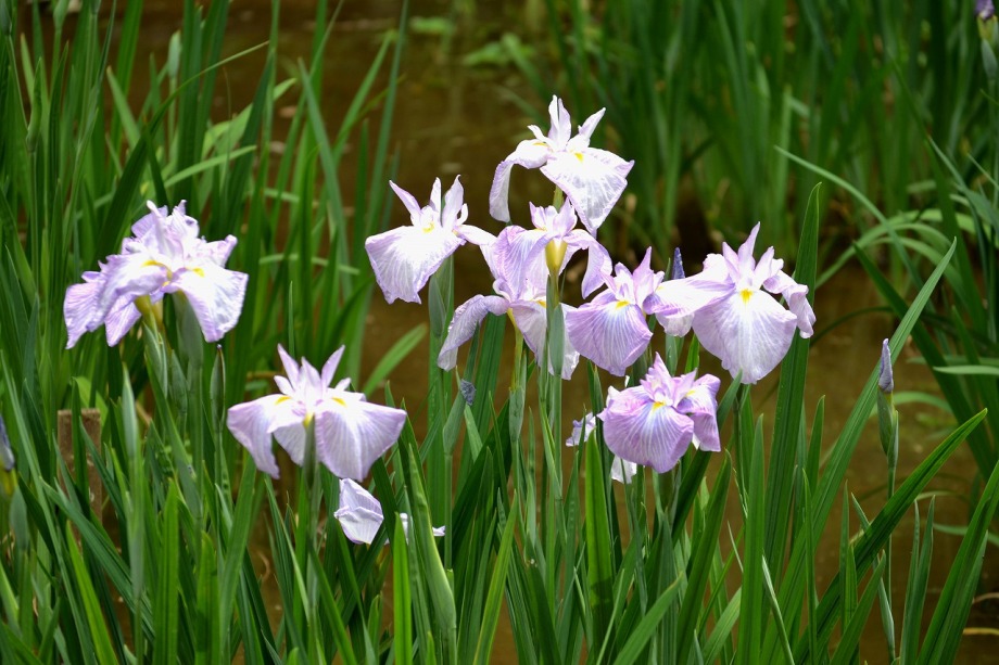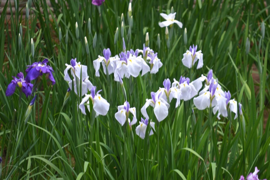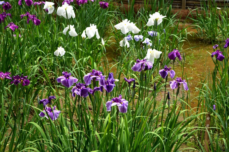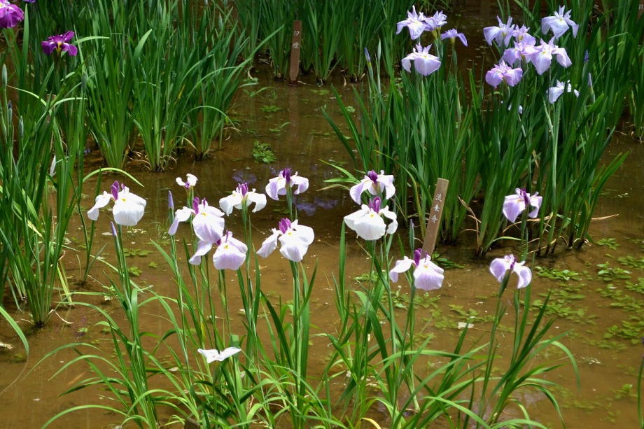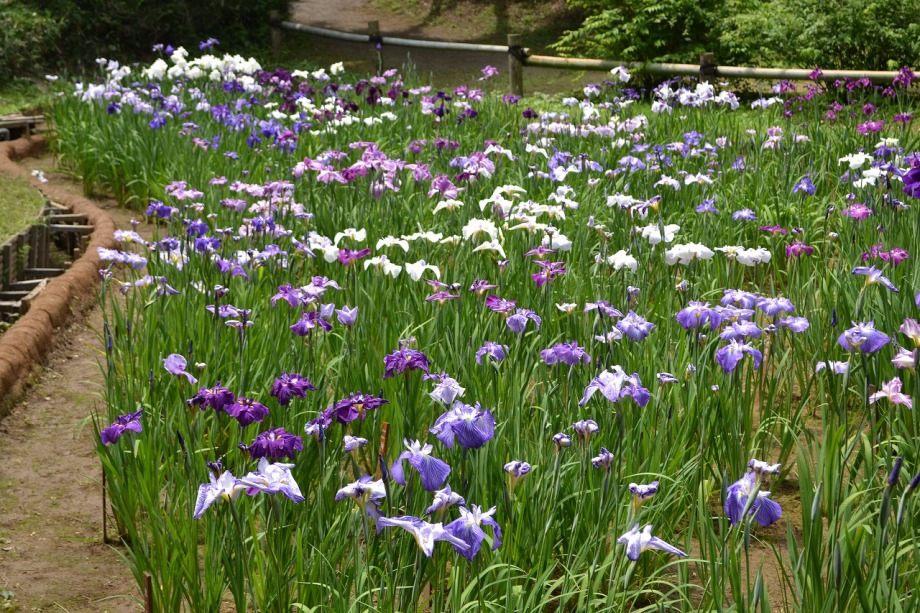 「一言」明治神宮の御苑に花菖蒲を見に行きました。入り口の近くの池には水連がいっぱい咲いていました。白い花が多い感じですが、 ピンク色の花も咲いていて綺麗でした。花菖蒲は今が見頃という感じで、非常にたくさん咲いていました。日差しが強いためか、 少ししおりかけている花もありましたが、色々な種類の花が咲いていて華やかでした。
