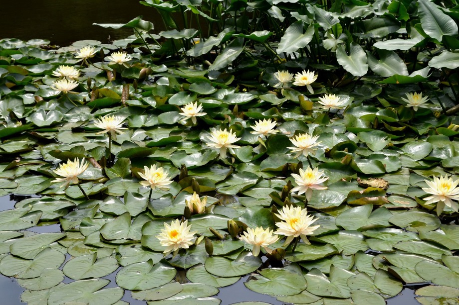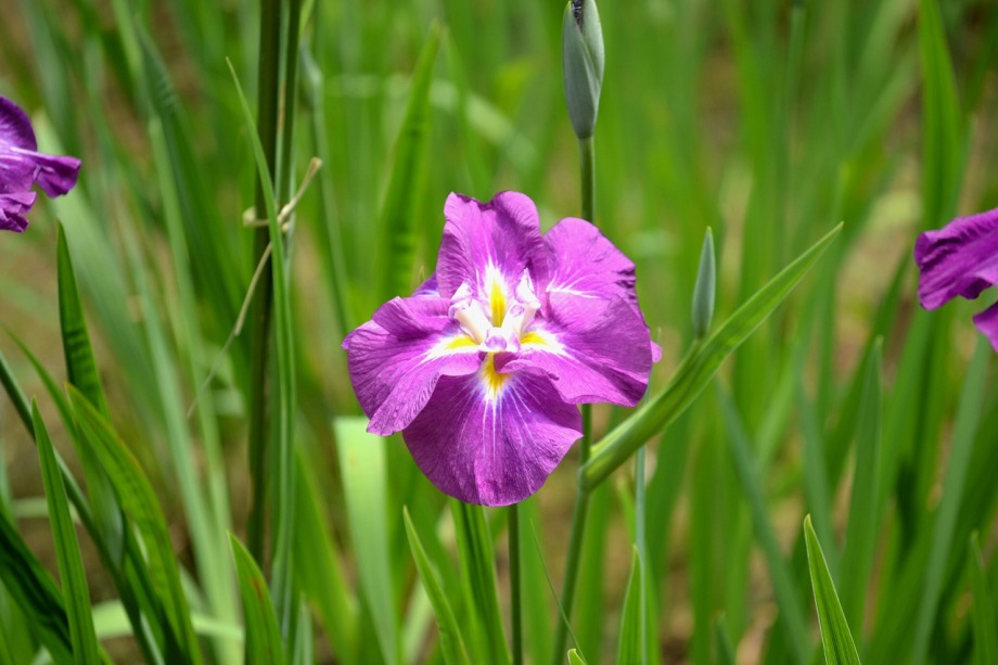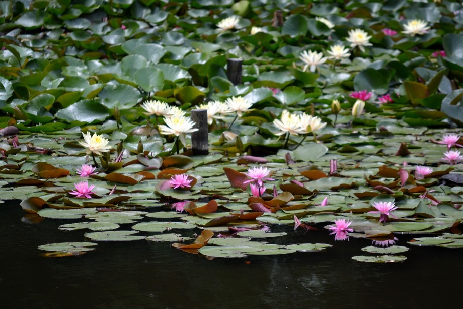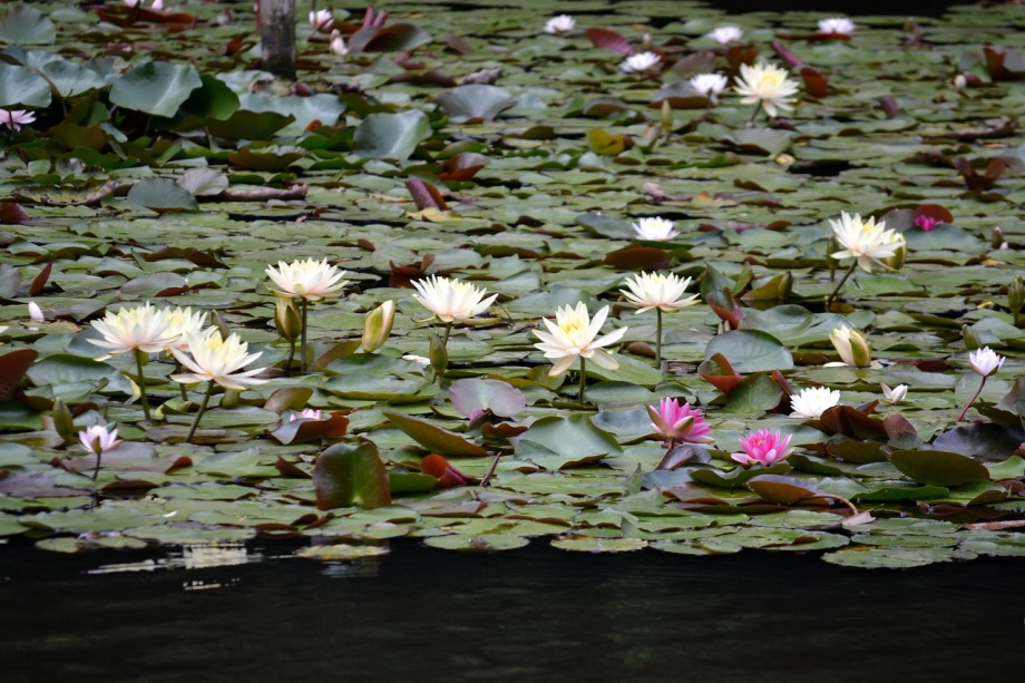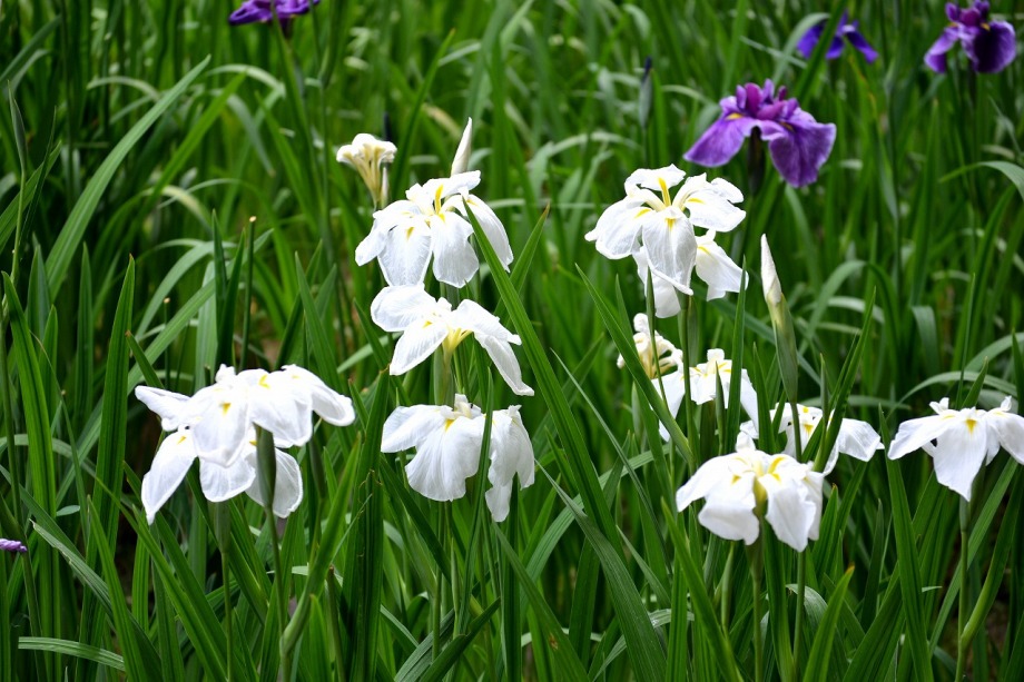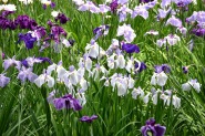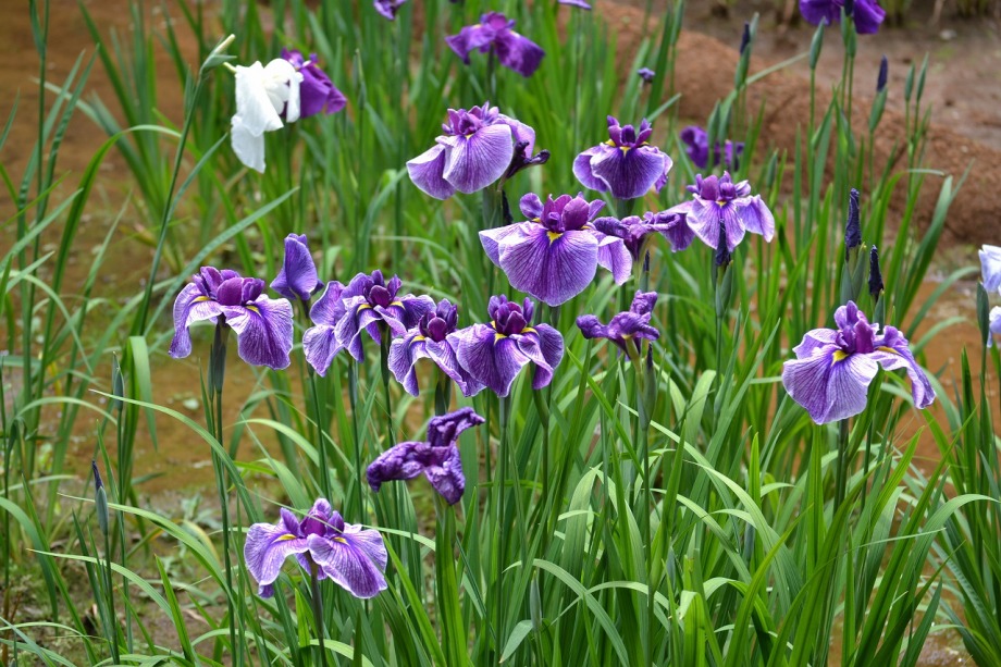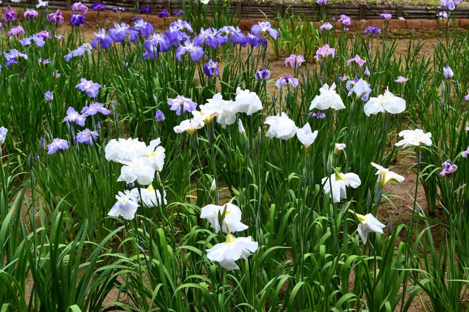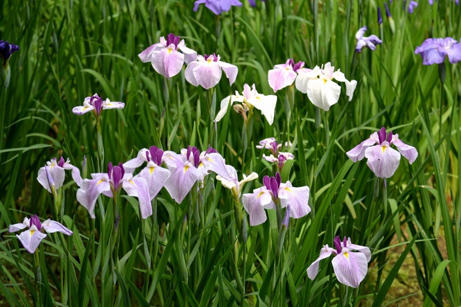 「一言」明治神宮の御苑に花菖蒲を見に行きました。入り口の近くの池には水連がいっぱい咲いていました。白い花が多い感じですが、 ピンク色の花も咲いていて綺麗でした。花菖蒲は今が見頃という感じで、非常にたくさん咲いていました。日差しが強いためか、 少ししおりかけている花もありましたが、色々な種類の花が咲いていて華やかでした。