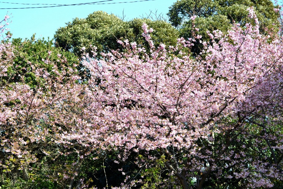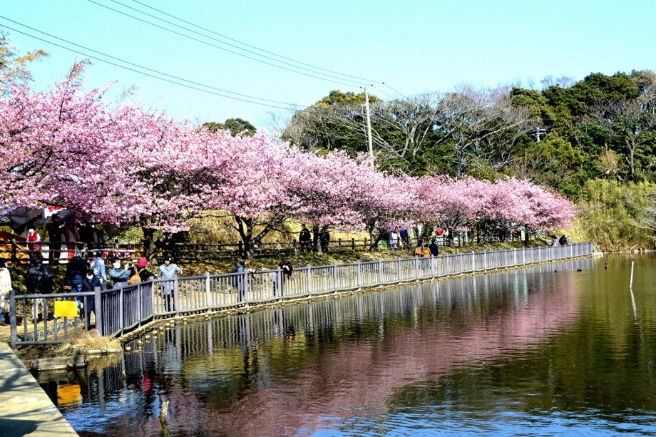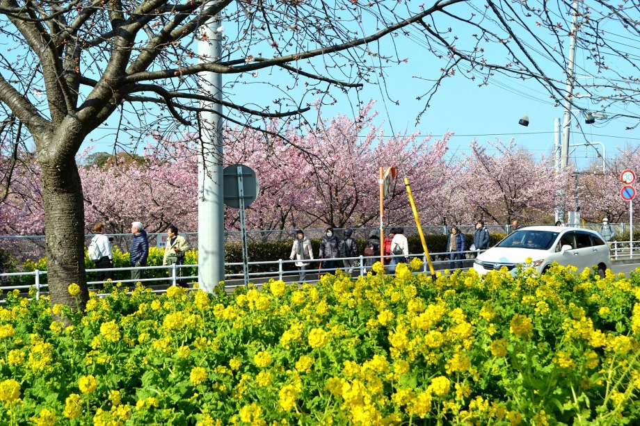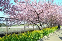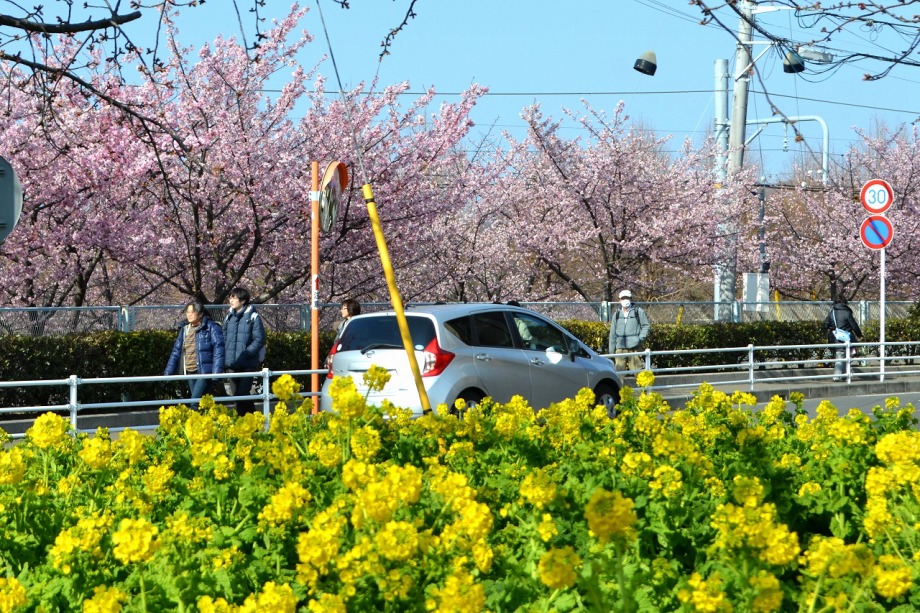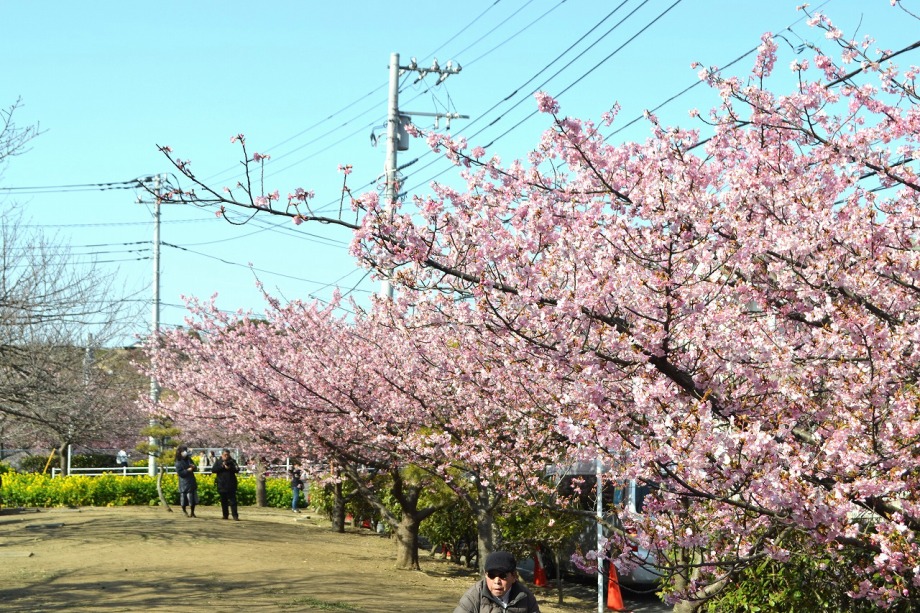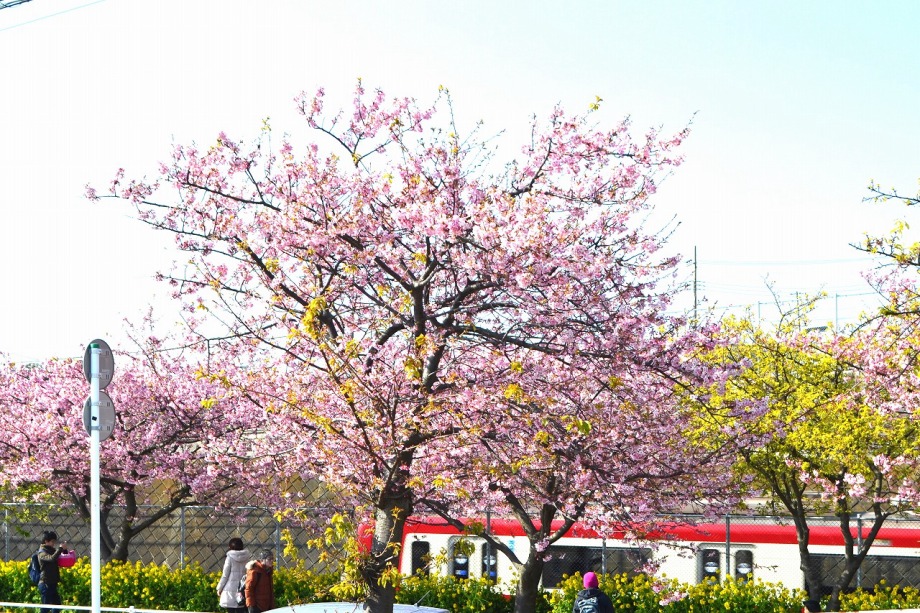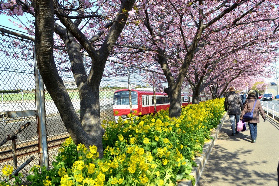 「一言」三浦海岸の河津桜が見頃というので家内と言ってみました。河津桜は満開で、菜の花の黄色と一緒の感じが春らしい雰囲気に なっていました。写真を撮っていると真っ赤な京急電車が通りかかり、面白い写真が撮れました。河津桜はかなり濃いピンク色 なので華やかに見えます。池にはつがいの鴨が泳いでいました。久しぶりにのんびりと家内と散歩しました。