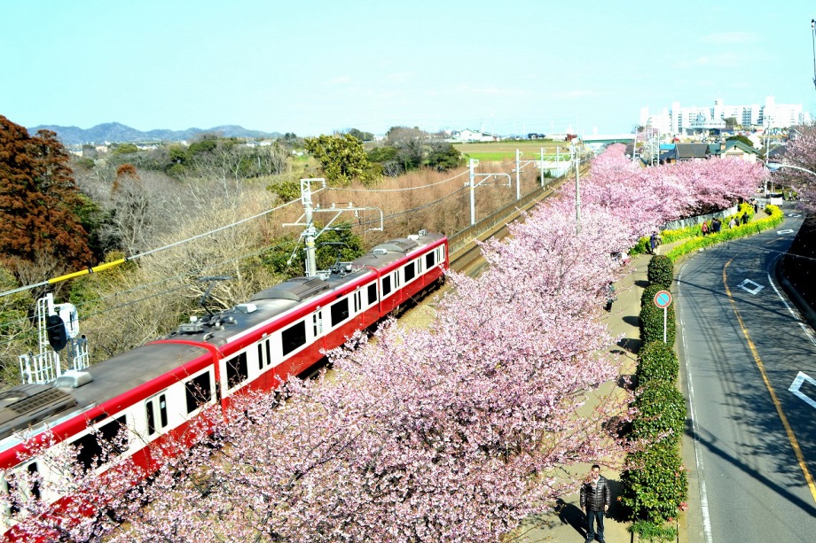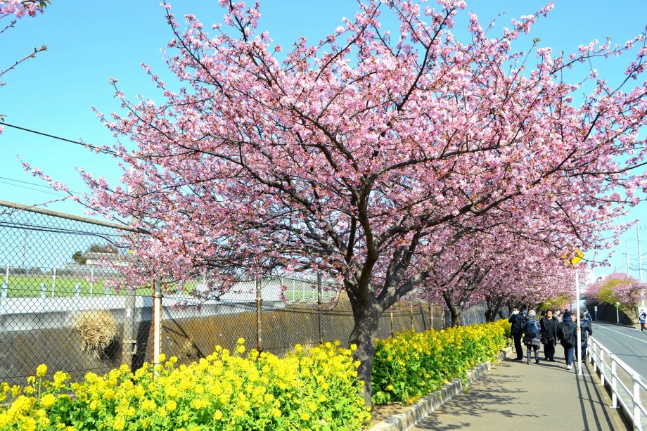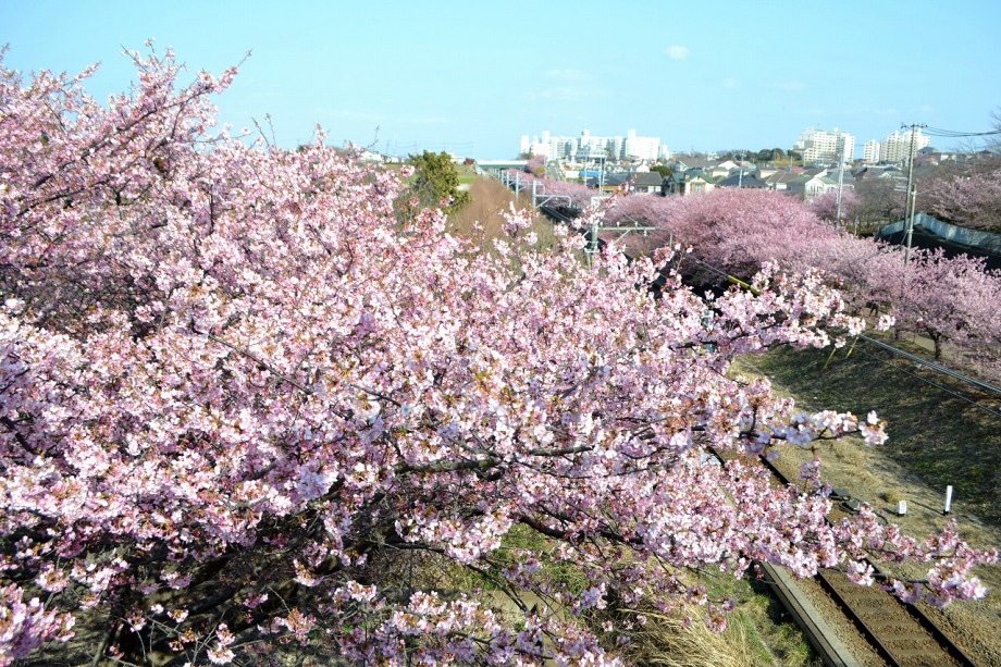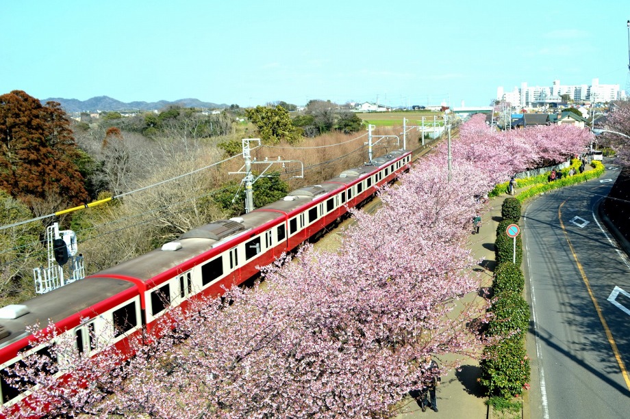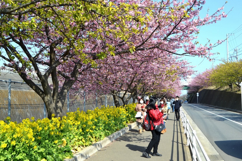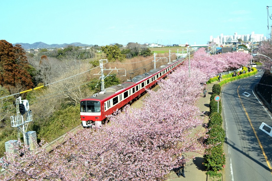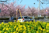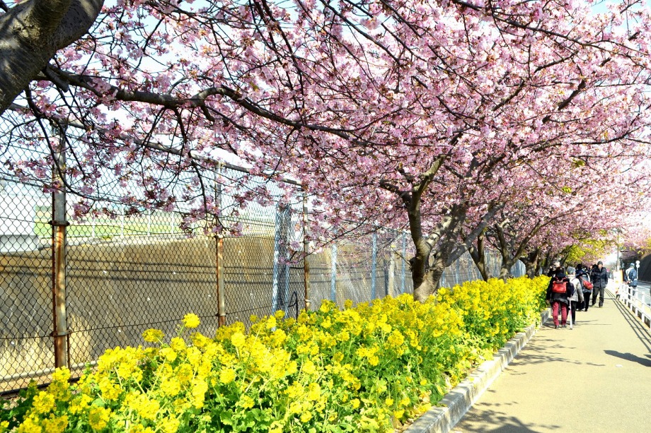 「一言」三浦海岸の河津桜が見頃というので家内と言ってみました。河津桜は満開で、菜の花の黄色と一緒の感じが春らしい雰囲気に なっていました。写真を撮っていると真っ赤な京急電車が通りかかり、面白い写真が撮れました。河津桜はかなり濃いピンク色 なので華やかに見えます。池にはつがいの鴨が泳いでいました。久しぶりにのんびりと家内と散歩しました。