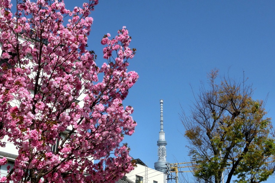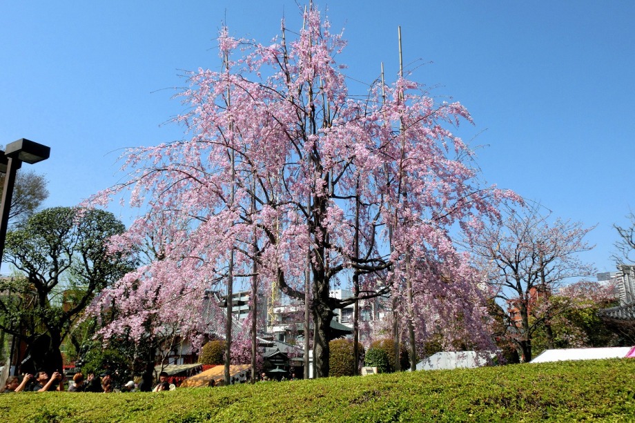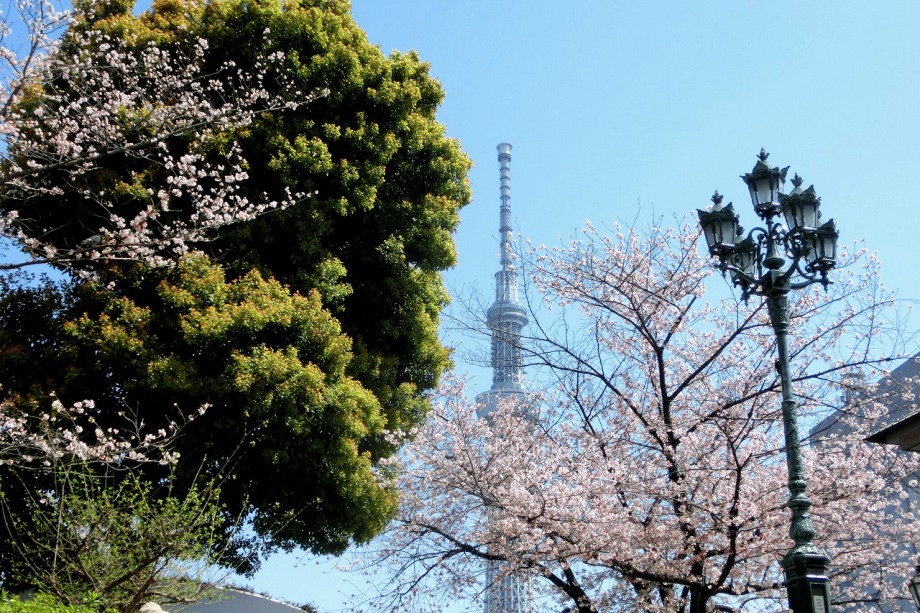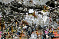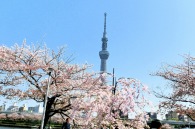 「一言」隅田川の桜を見に行きました。ソメイヨシノは既に峠を越えて散り始めていました。サトザクラの太白が 真っ白な花を咲かせていました。東京スカイツリーが近くに見えました。浅草には外国の人が浴衣のような 着物を着て歩いていました。伝法寺の庭園のしだれ桜が綺麗でした。