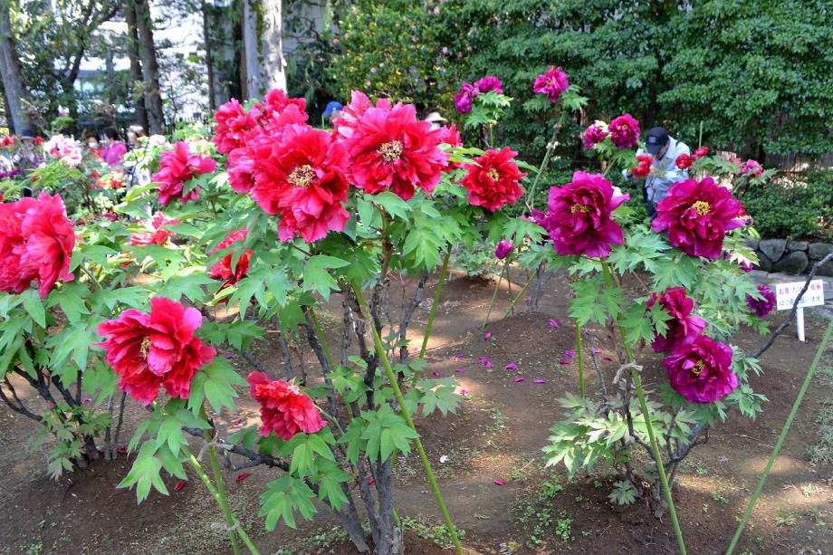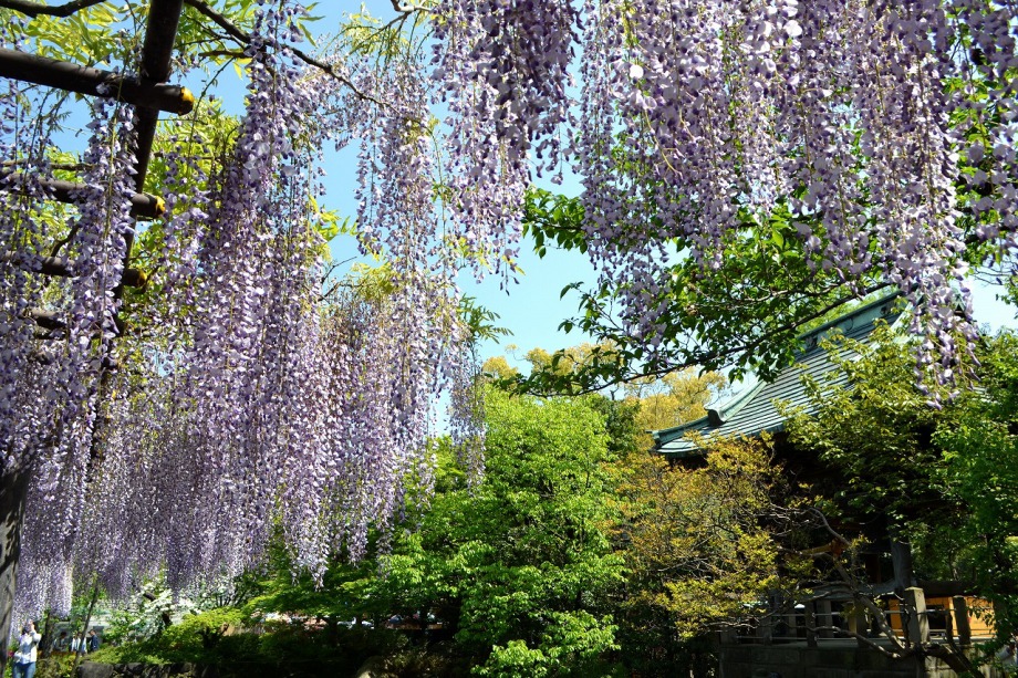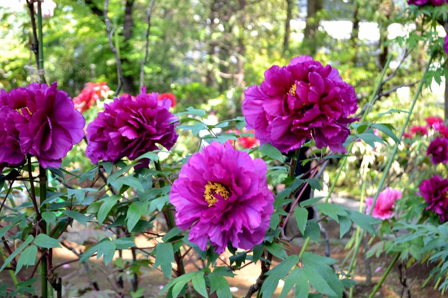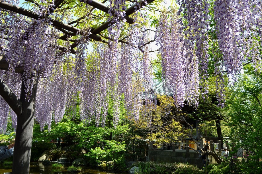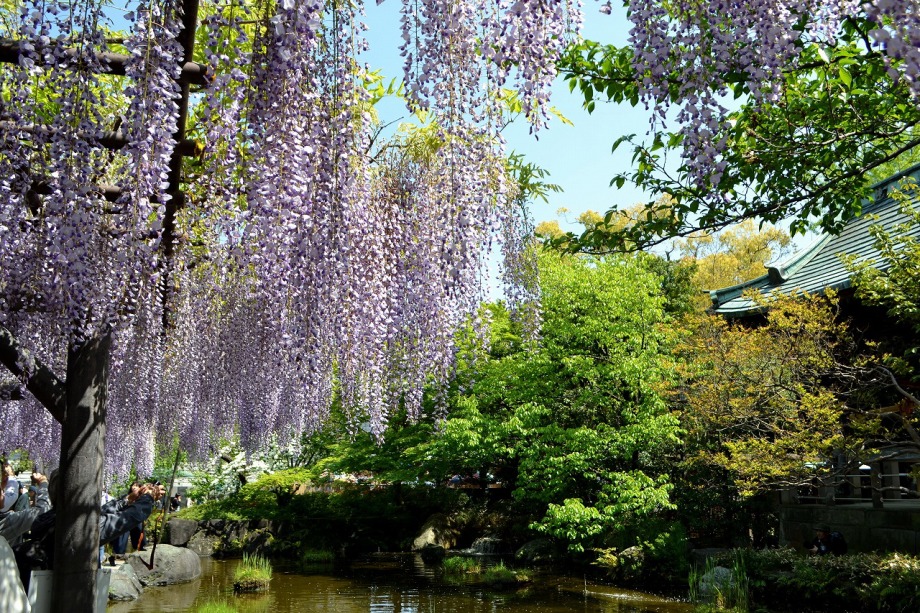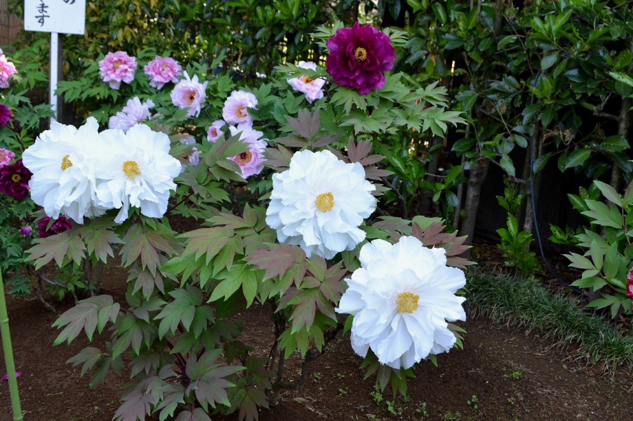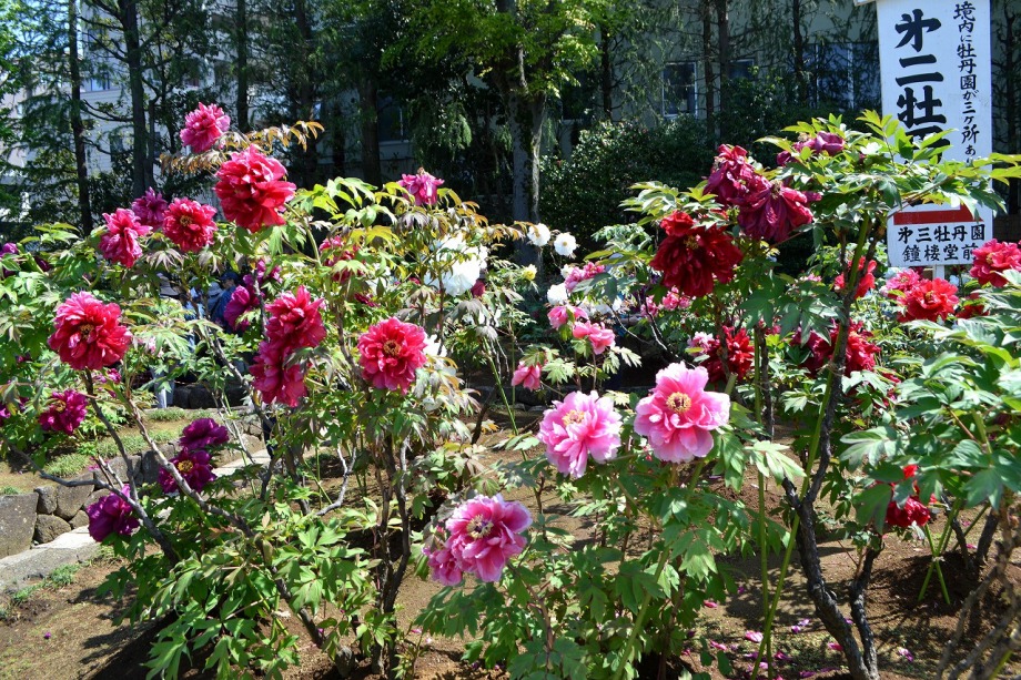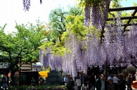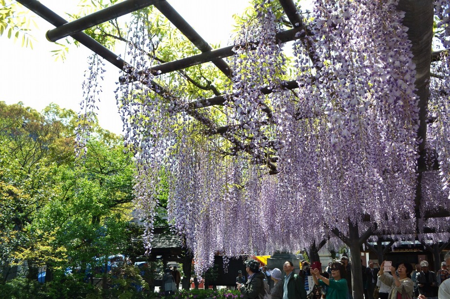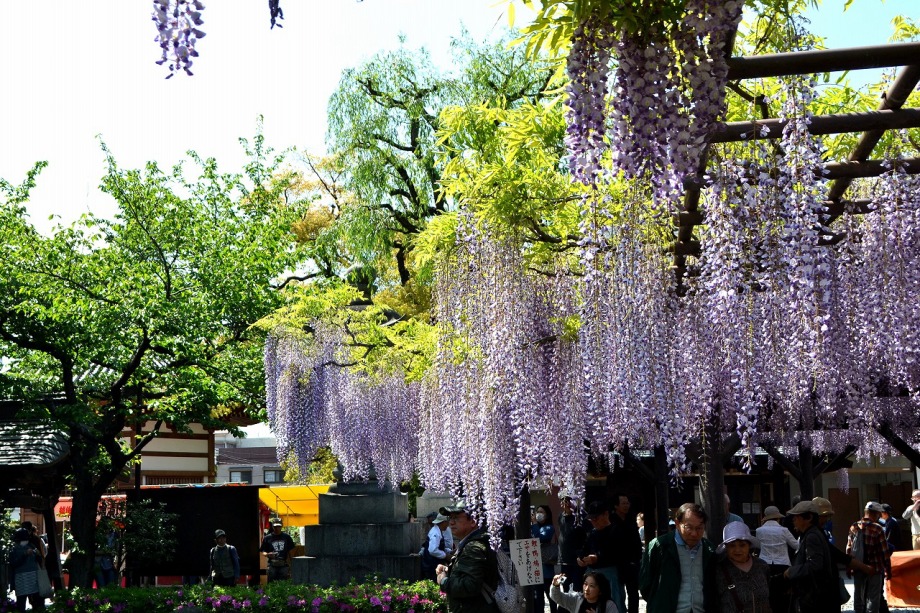 「一言」西新井大師の藤が見頃ということを放送していたので、家内と見に行きました。わが家から1時間くらいで西新井大師に 行くことが出来ました。立派な本堂の前に藤棚があり、藤の花が長く垂れさがっていました。見物人が多くて、写真が 撮り難かったが、池をは池に写真を撮りました。本堂の周りには5つのボタン苑があり、たくさんの牡丹が咲いていました。 今年の暖かさのために、早くも散っている花も多い感じですが綺麗でした。