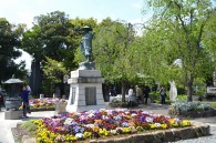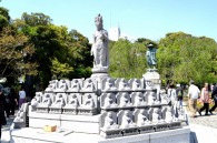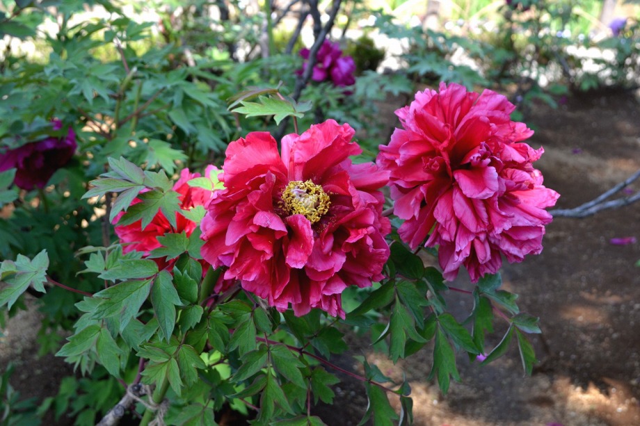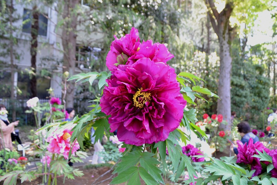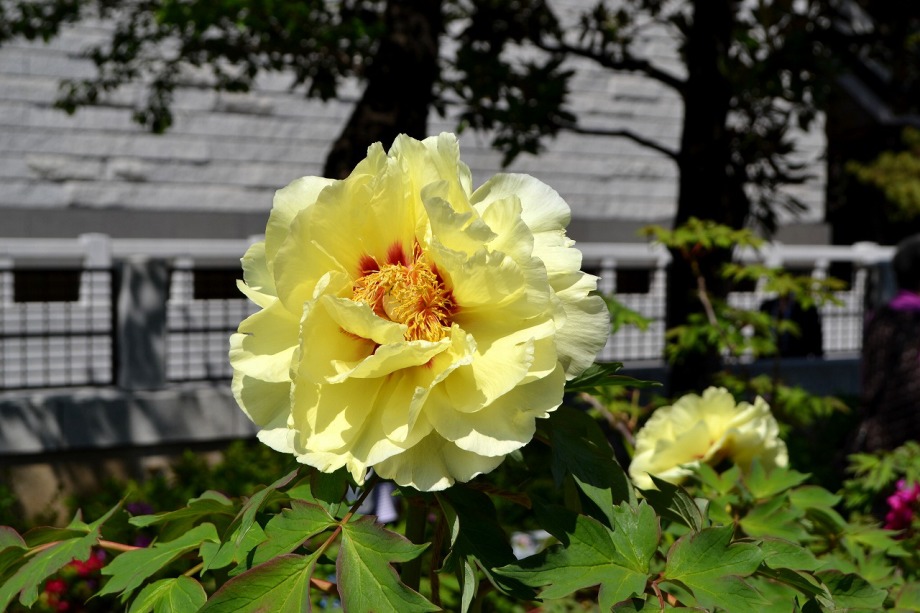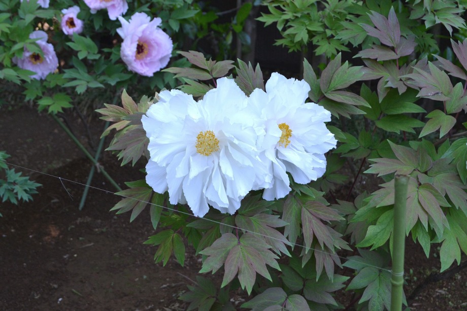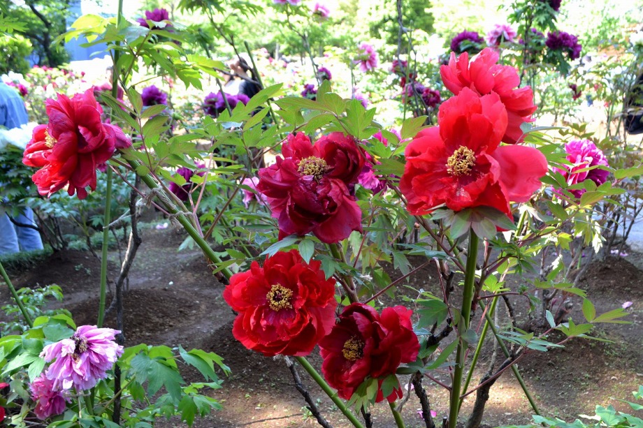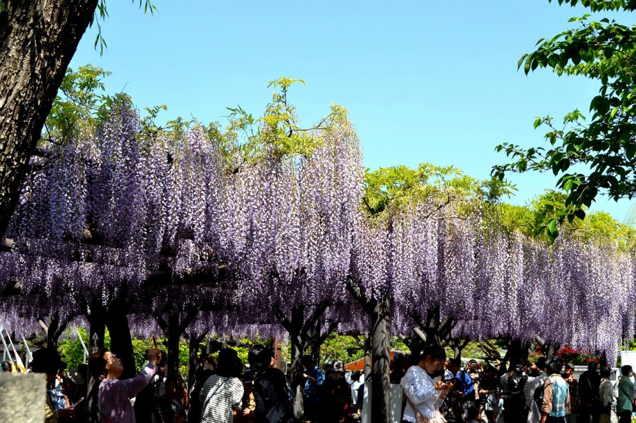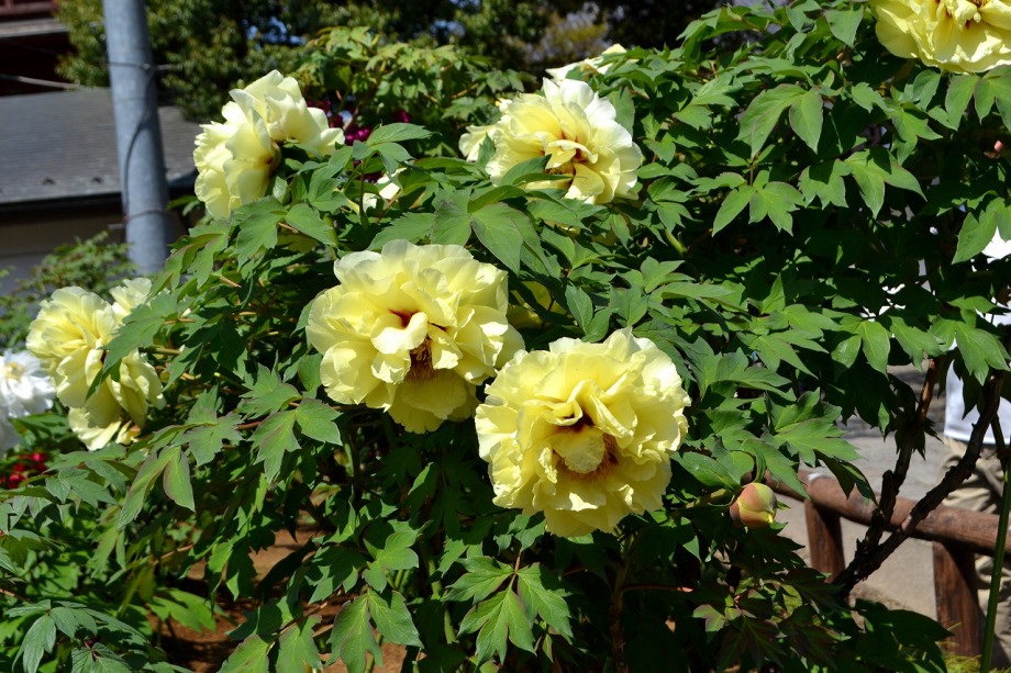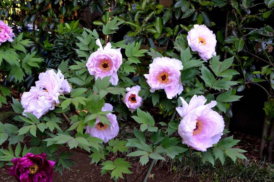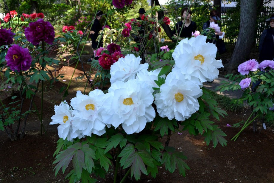 「一言」西新井大師の藤が見頃ということを放送していたので、家内と見に行きました。わが家から1時間くらいで西新井大師に 行くことが出来ました。立派な本堂の前に藤棚があり、藤の花が長く垂れさがっていました。見物人が多くて、写真が 撮り難かったが、池をは池に写真を撮りました。本堂の周りには5つのボタン苑があり、たくさんの牡丹が咲いていました。 今年の暖かさのために、早くも散っている花も多い感じですが綺麗でした。