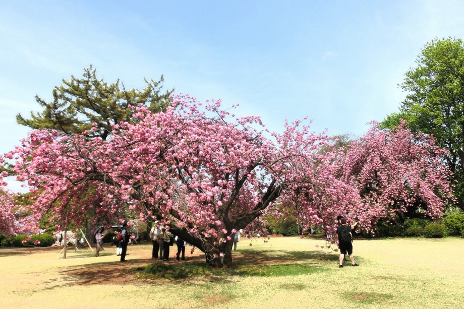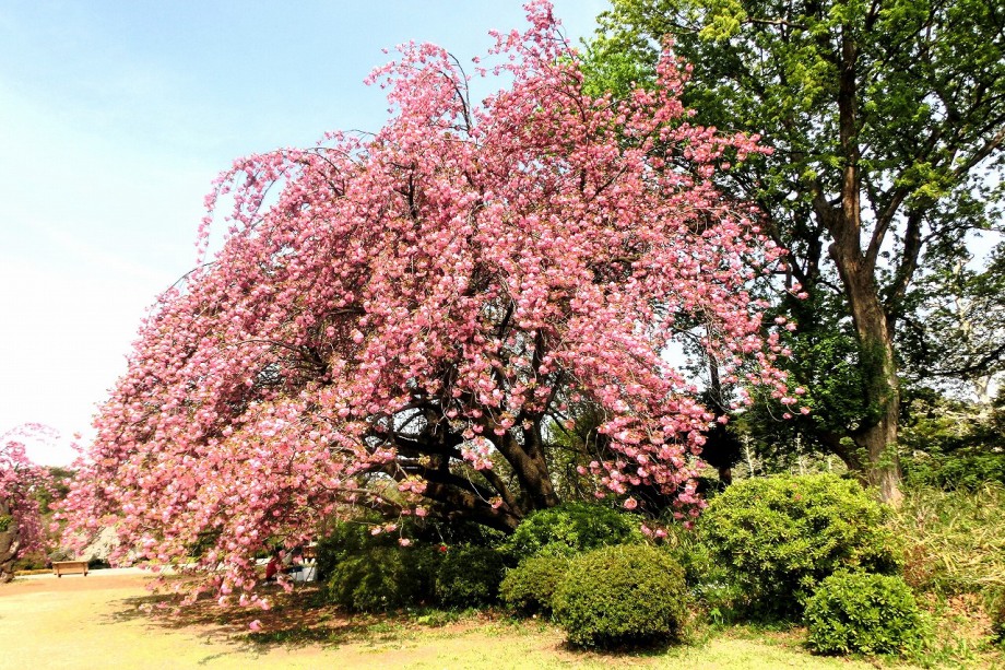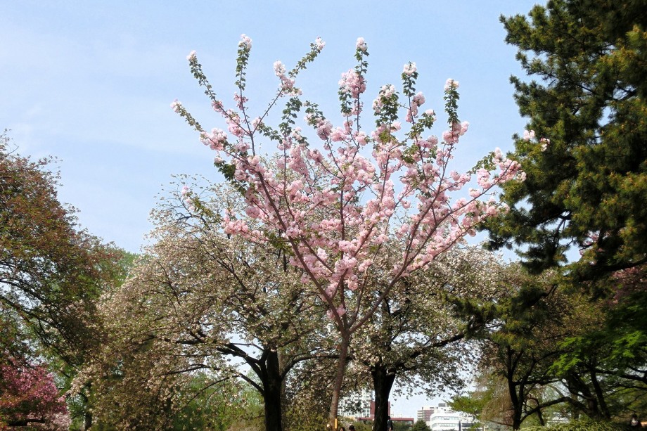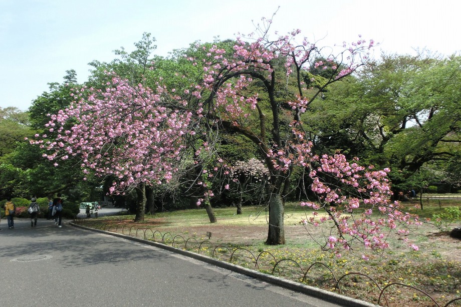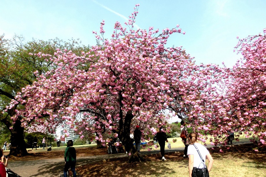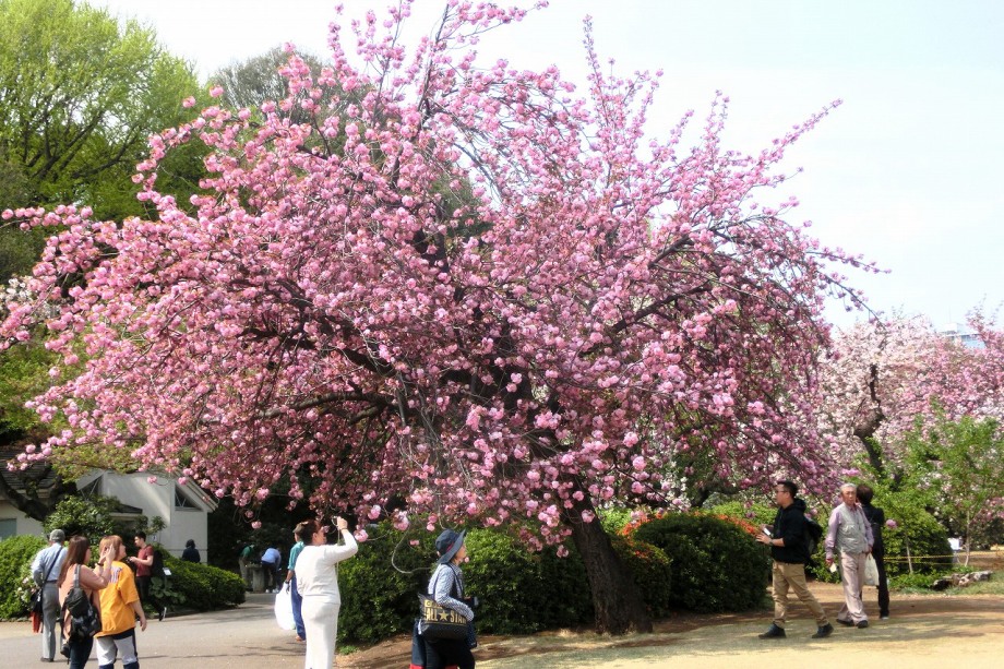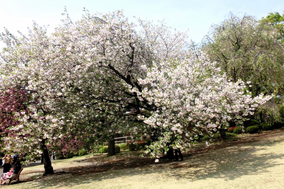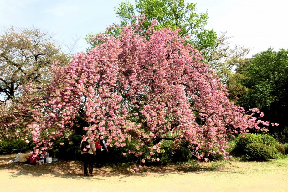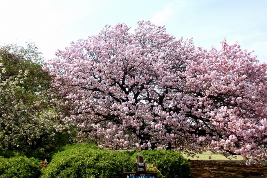 「一言」天気が良かったので新宿御苑のボタン桜を見に行きました。ボタン桜が見頃でした。新宿御苑の桜の木は非常に大きいので 満開になると迫力があります。新宿御苑には濃いピンクの関山、薄いピンクのフゲンゾウや一葉、青い桜など色々な種類の 八重桜が咲いているので見ていて楽しめます。大きなハルモミジの木も紅葉していて綺麗です。