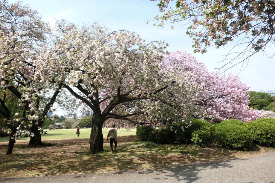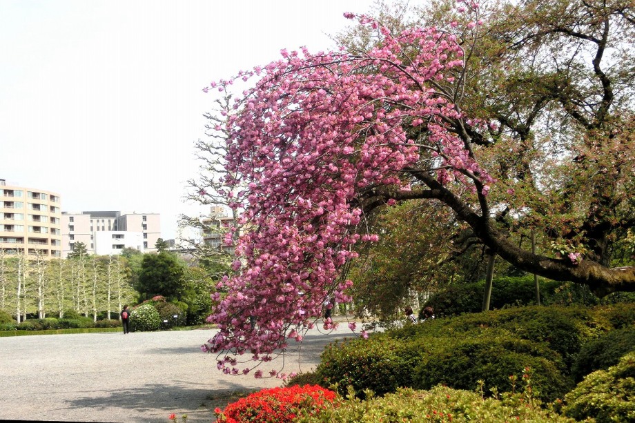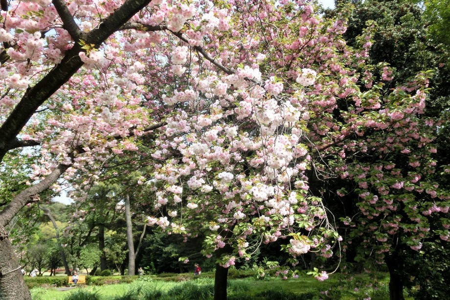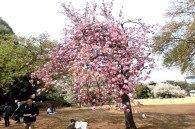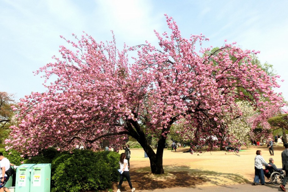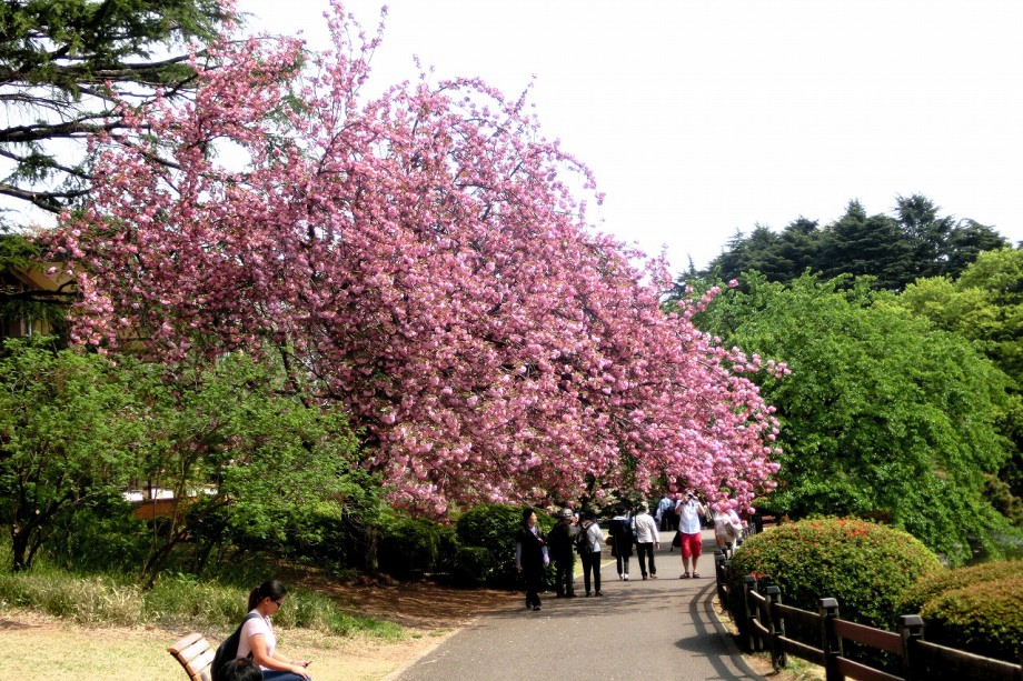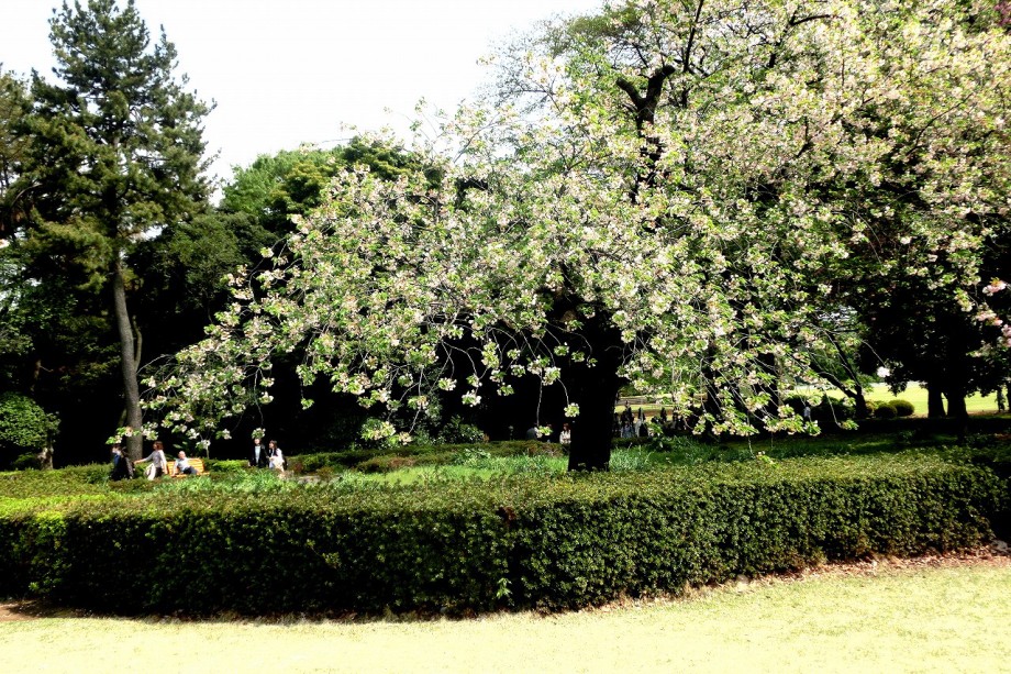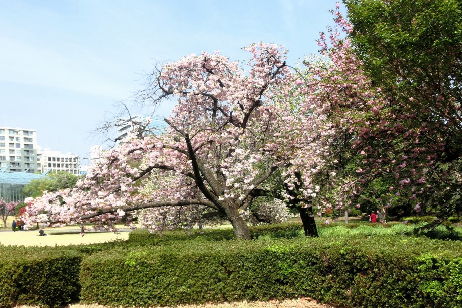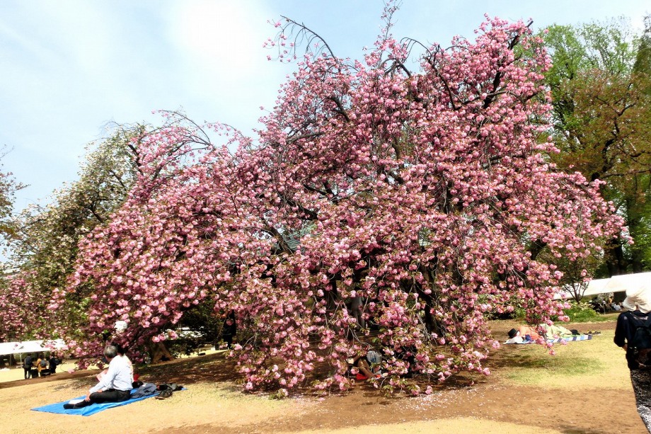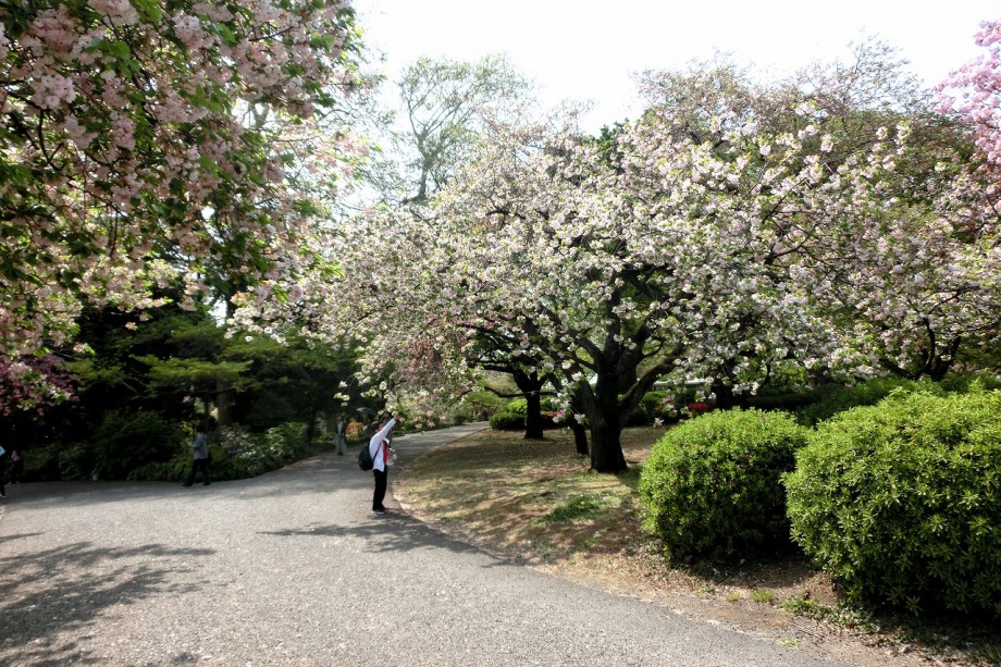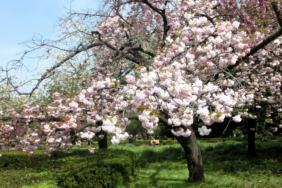「一言」天気が良かったので新宿御苑のボタン桜を見に行きました。ボタン桜が見頃でした。新宿御苑の桜の木は非常に大きいので 満開になると迫力があります。新宿御苑には濃いピンクの関山、薄いピンクのフゲンゾウや一葉、青い桜など色々な種類の 八重桜が咲いているので見ていて楽しめます。大きなハルモミジの木も紅葉していて綺麗です。